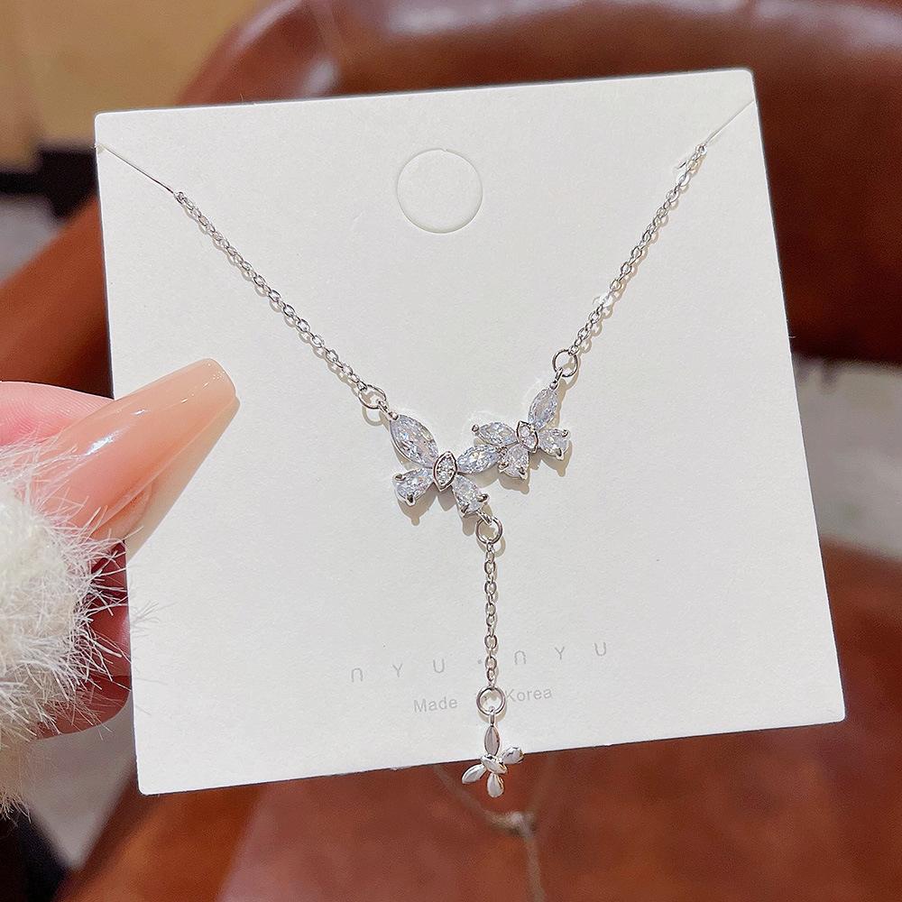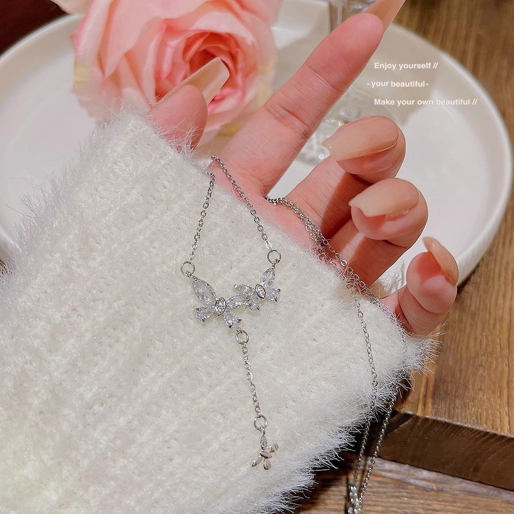 Collar de mariposa de amor, ligero, de lujo, de alta calidad, de nicho de moda, ligero, de lujo, de titanio, cadena de clavícula de acero, collar de temperamento de moda, joyería