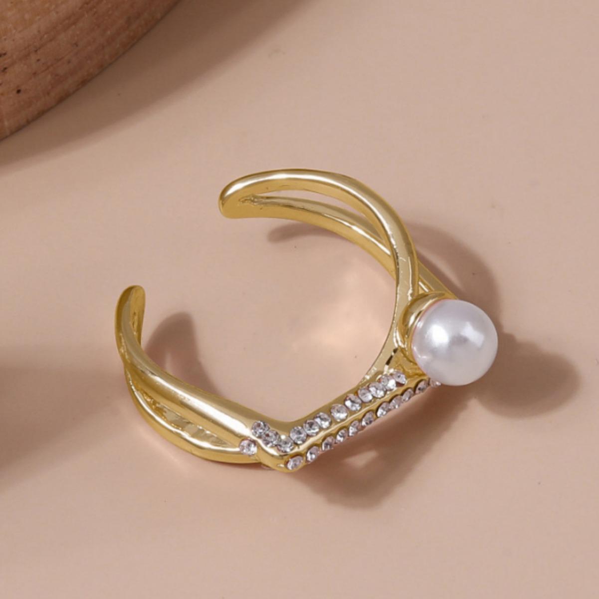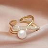 Anillo de Estilo Commuter Simple y Moderno para Mujer, Anillo de Zirconia con Incrustaciones de Perla, Anillo Abierto, Moderno y Nicho