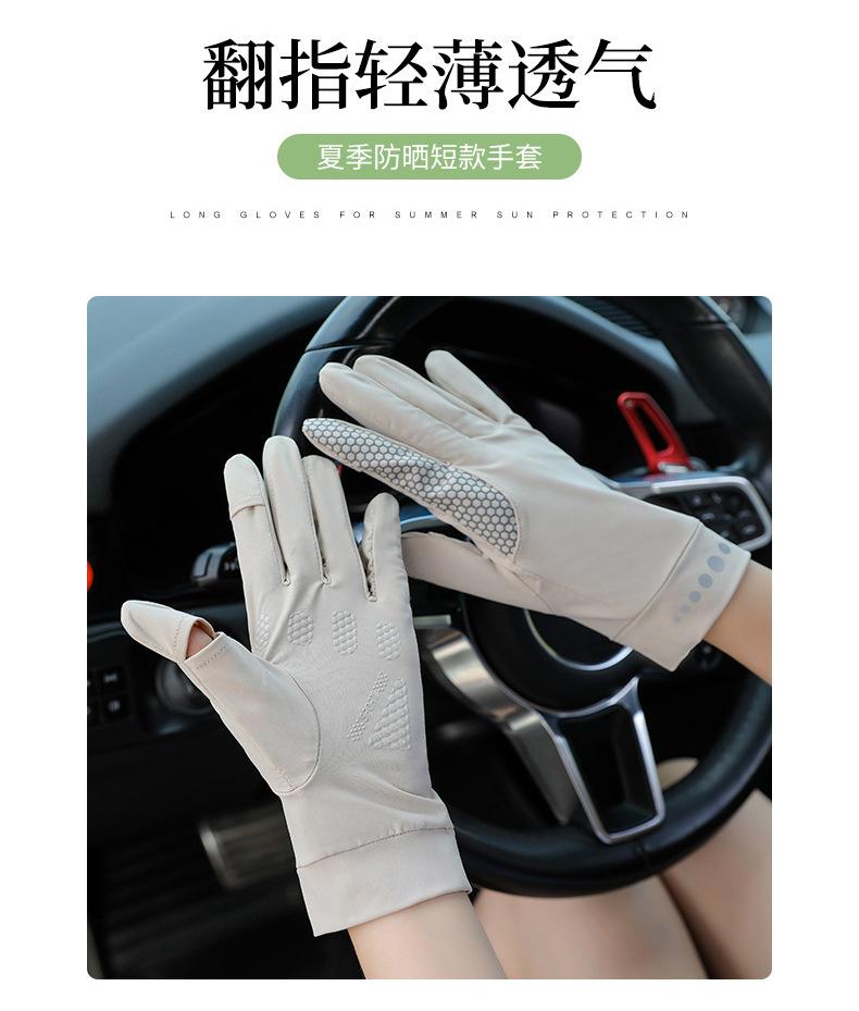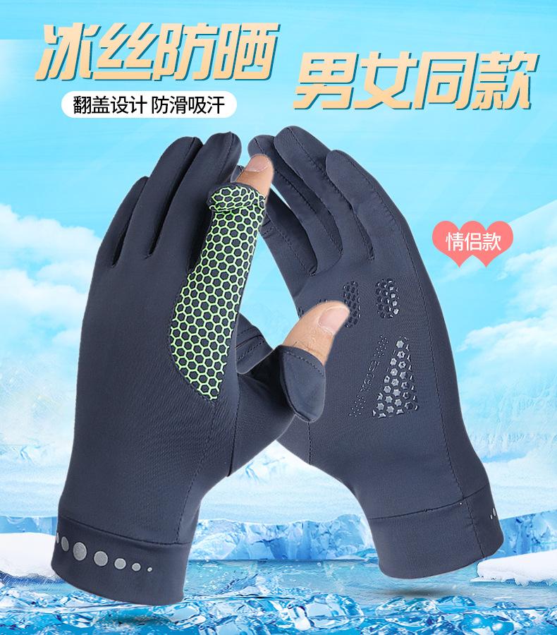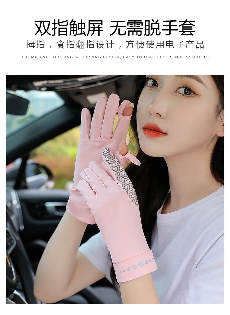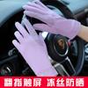 Guantes de seda de hielo de verano con protección solar, finos, para hombres y mujeres, para montar en coche eléctrico, protección UV, antideslizantes, pantalla táctil, dedos abiertos, sensación de hielo
