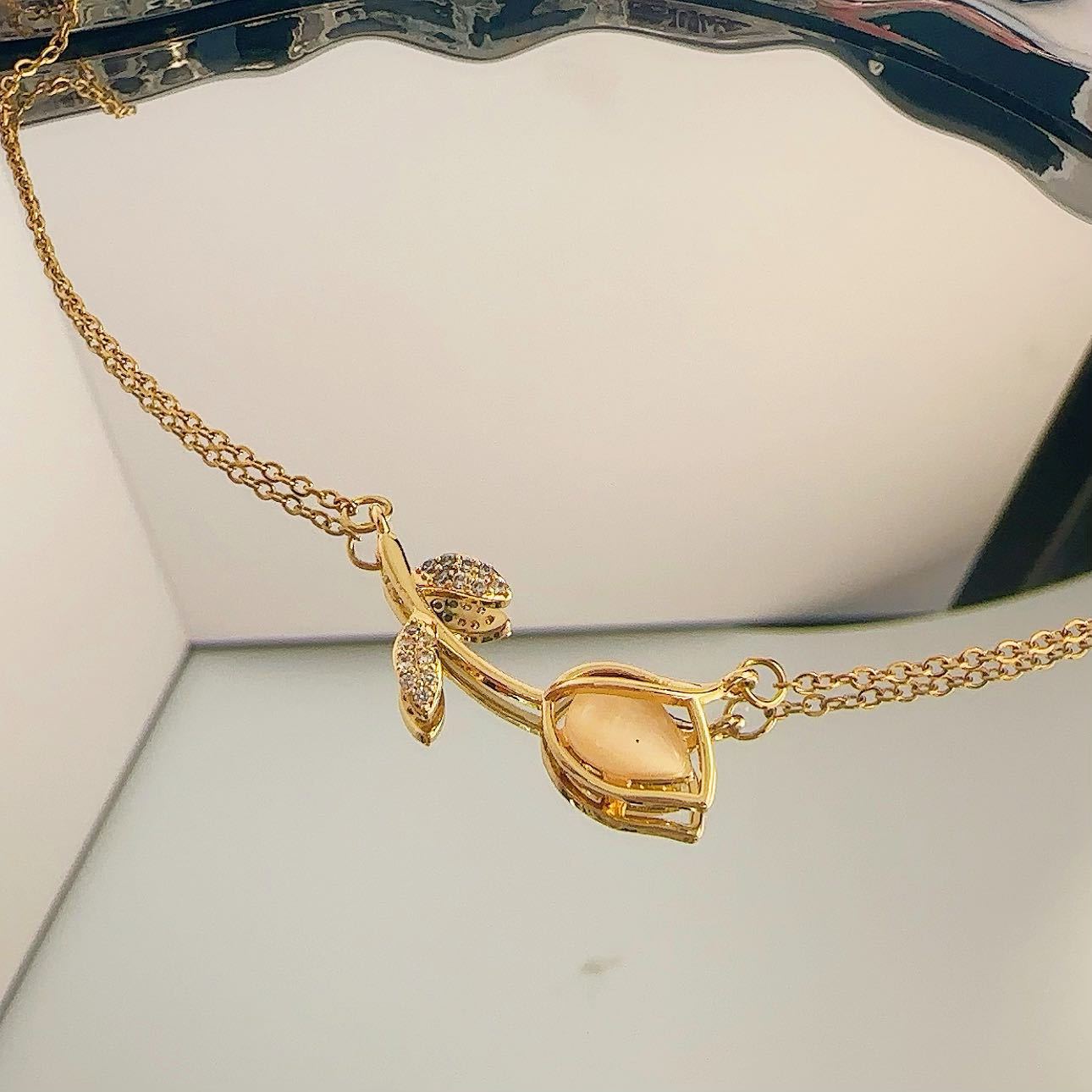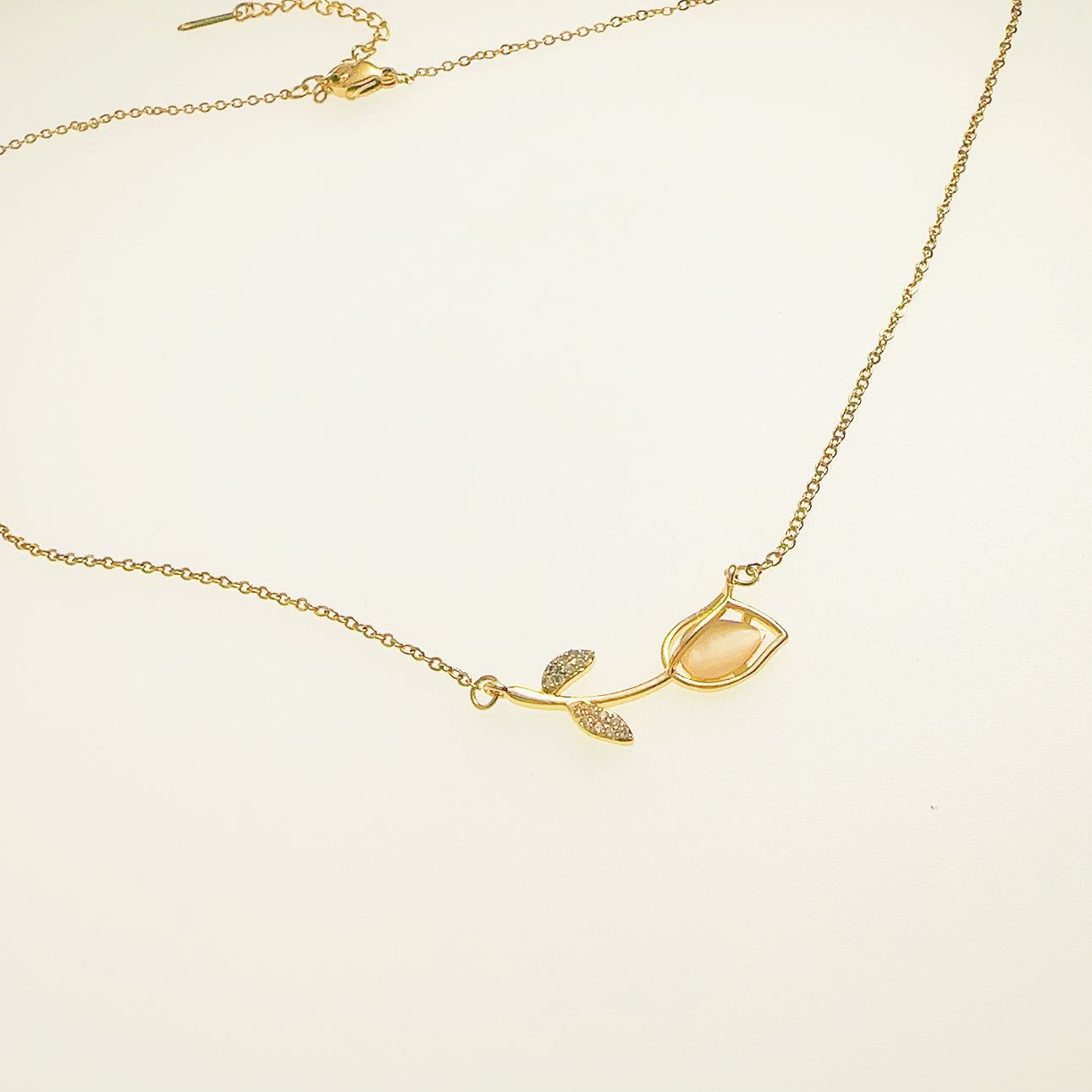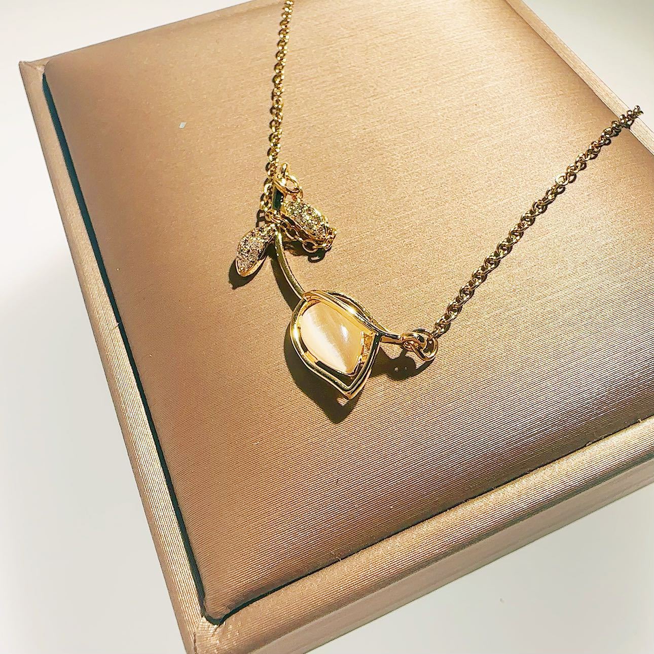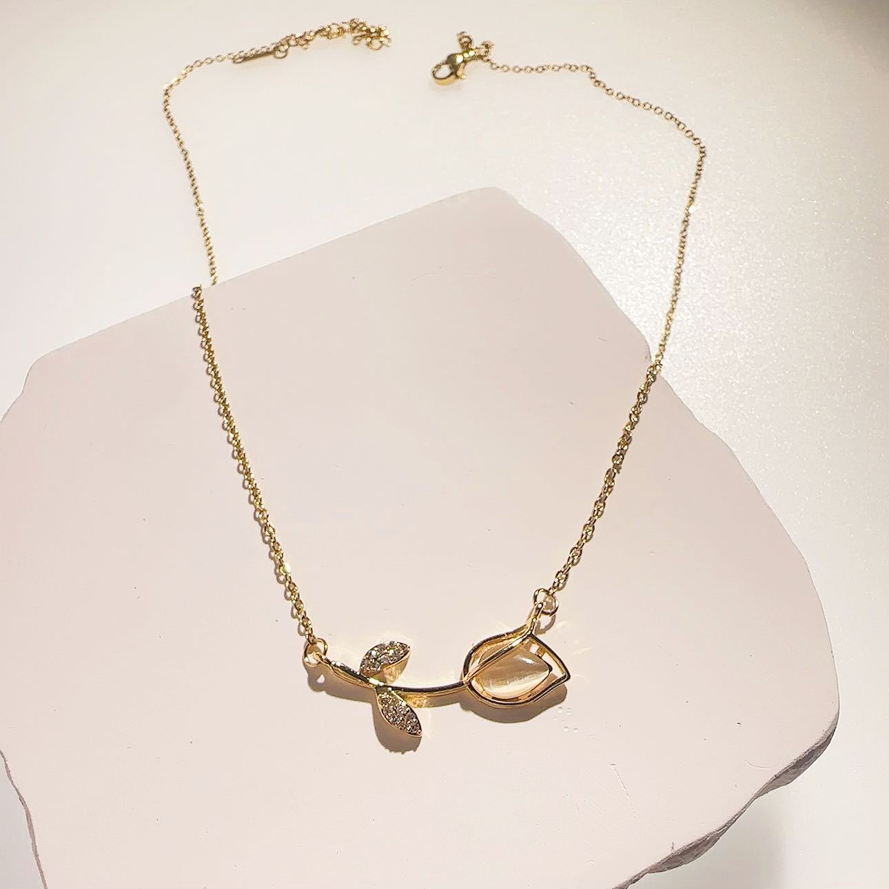 Collar para mujer, estilo tulipán, calcedonia blanca, estilo francés, colgante de diseño de nicho ligero de lujo, regalo de San Valentín, cadena de clavícula