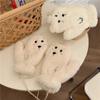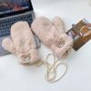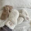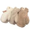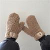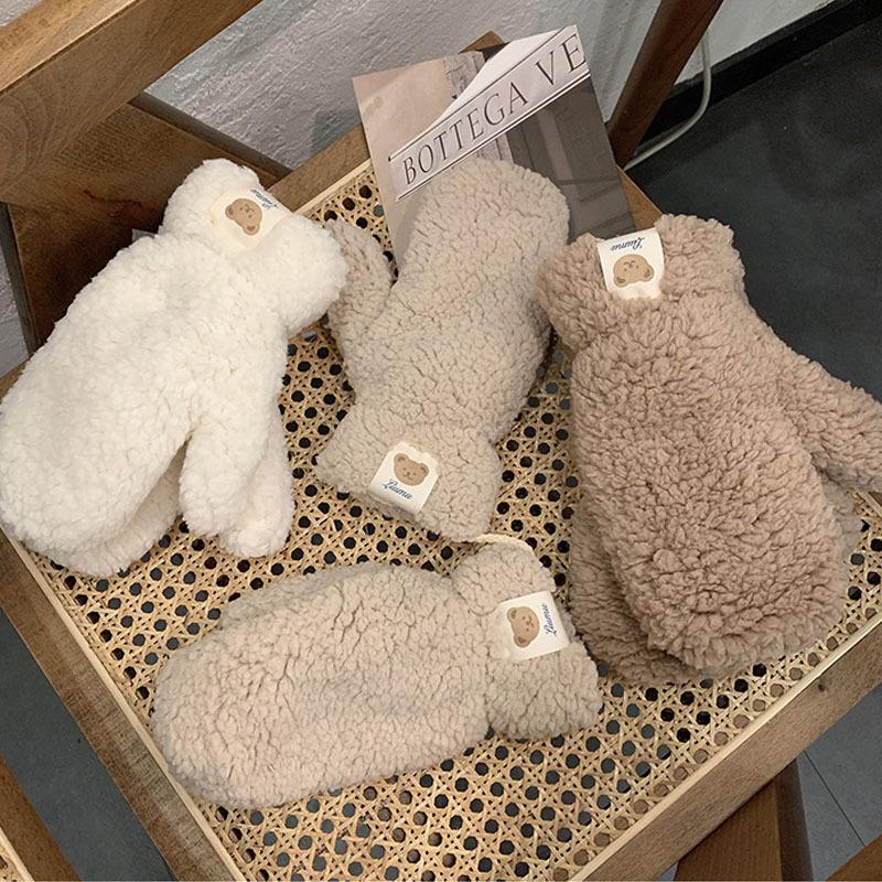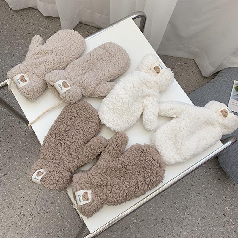 Guantes de lana de cordero con etiqueta de oso de invierno para mujer, bonitos guantes de estudiante para montar en invierno, forrados en vellón, gruesos, cálidos y resistentes al frío.