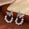 Pendientes de borla de perla pequeña Jinse, pendientes de cobre y circonita, pendientes de moda coreana, joyería de nicho asimétrica larga