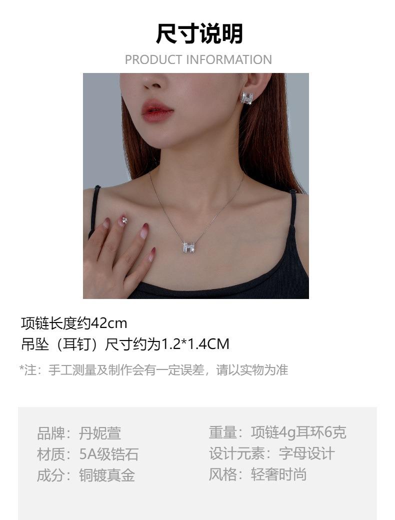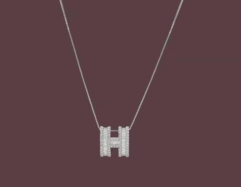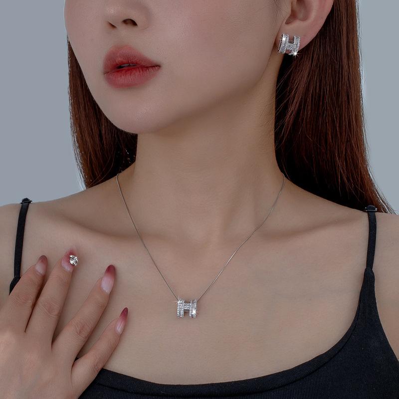 Collar con pendientes con la letra H de diamante y diseño simple de Joker con temperamento, cadena de clavícula de oro blanco al por mayor.