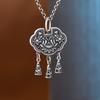 Colgante de plata S925 con diseño simple de moneda antigua y borla con forma de corazón, con candado de plata y hierba Tang hueca para mujer