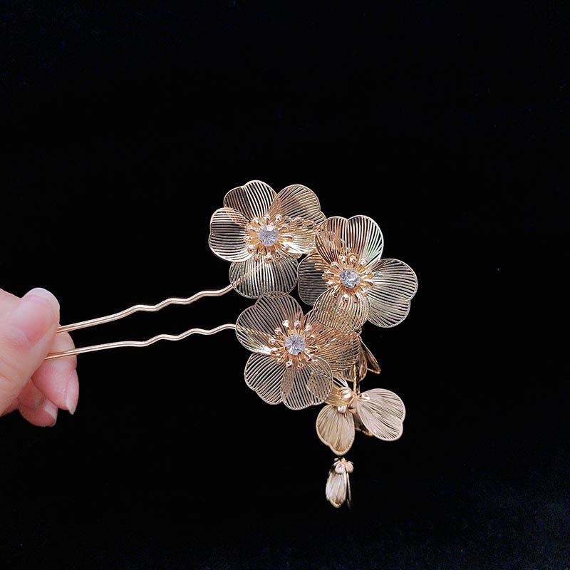 Horquilla ligera de lujo en forma de U, horquilla de sentido avanzado, disco para el cabello antiguo, accesorios para el cabello, horquilla para el cabello, nuevo estilo chino, flor, paso a paso.