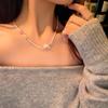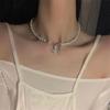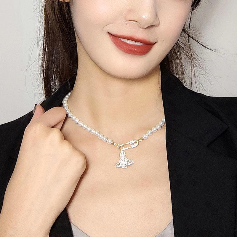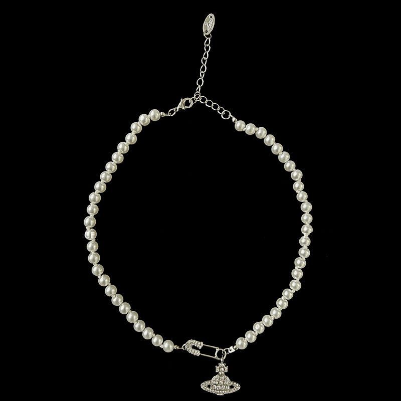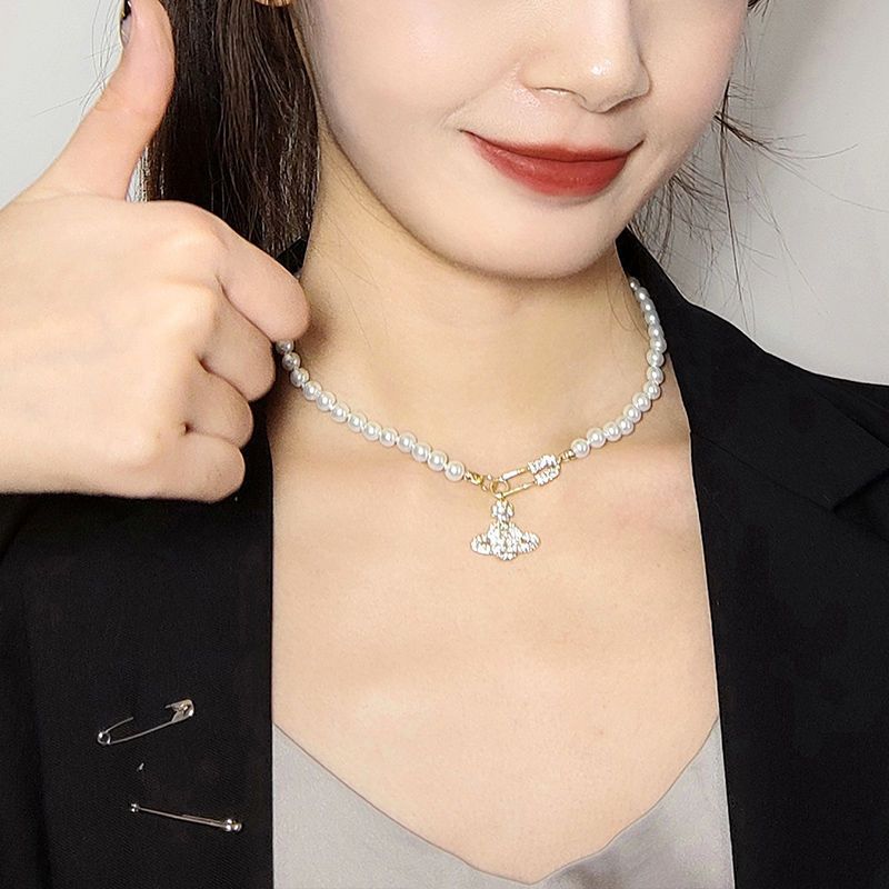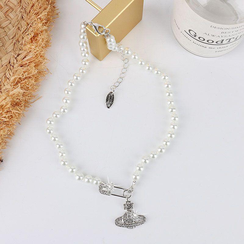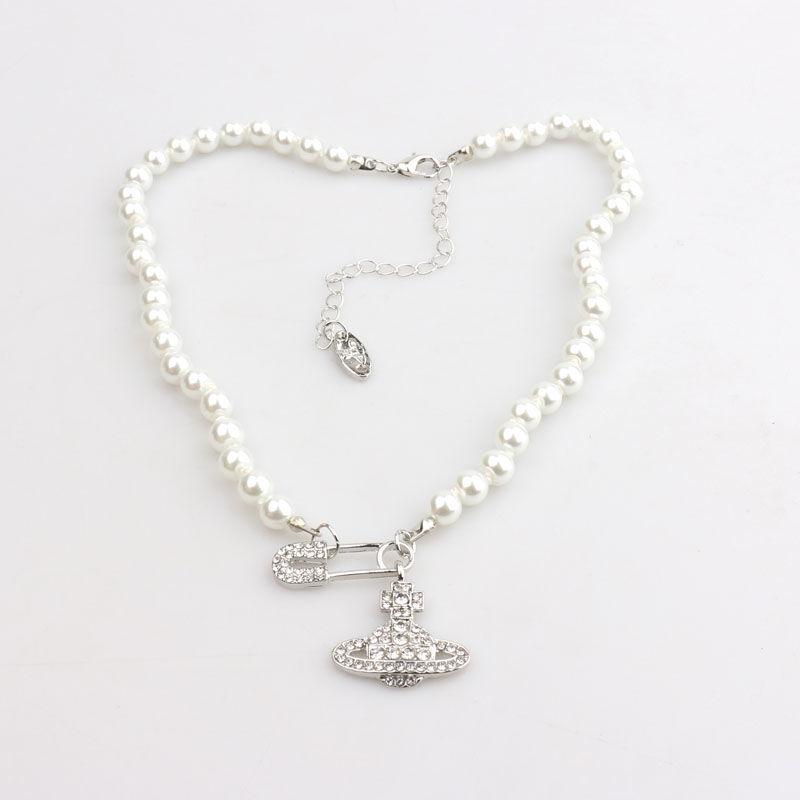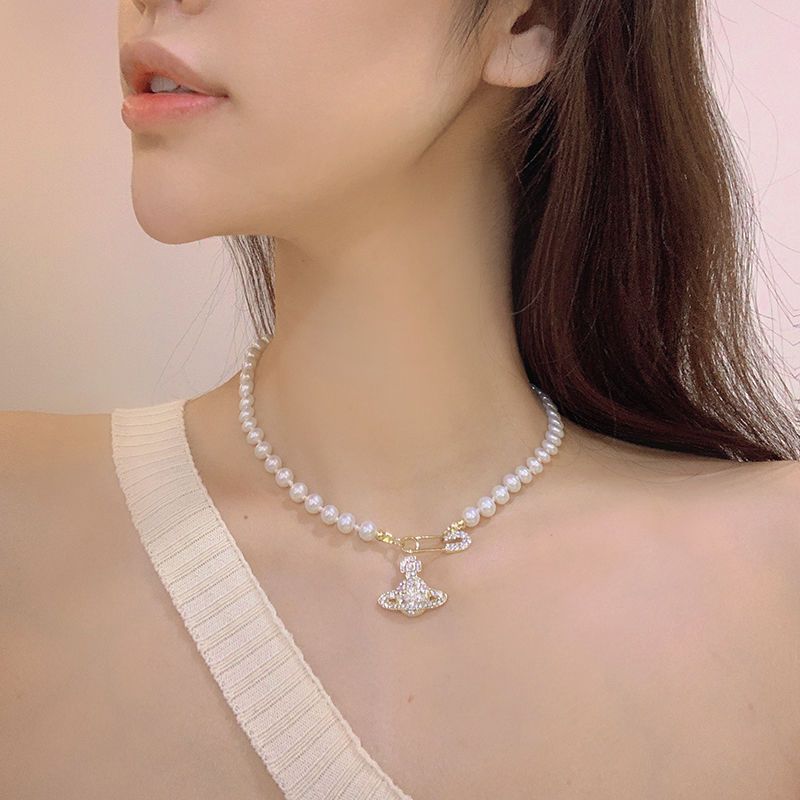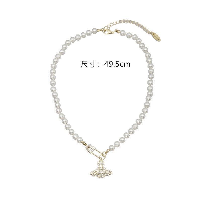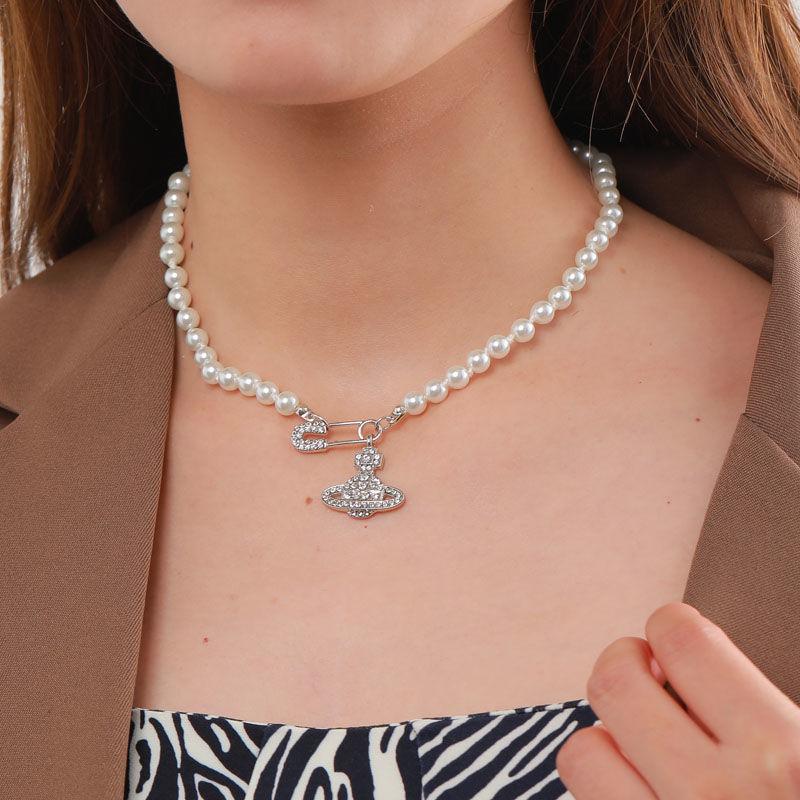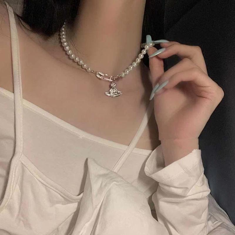 Collar con broche de Saturno y diamantes para mujer, collar Cher, collar ligero de lujo que combina con todo, accesorios para el cuello, cadena de clavícula de perlas G