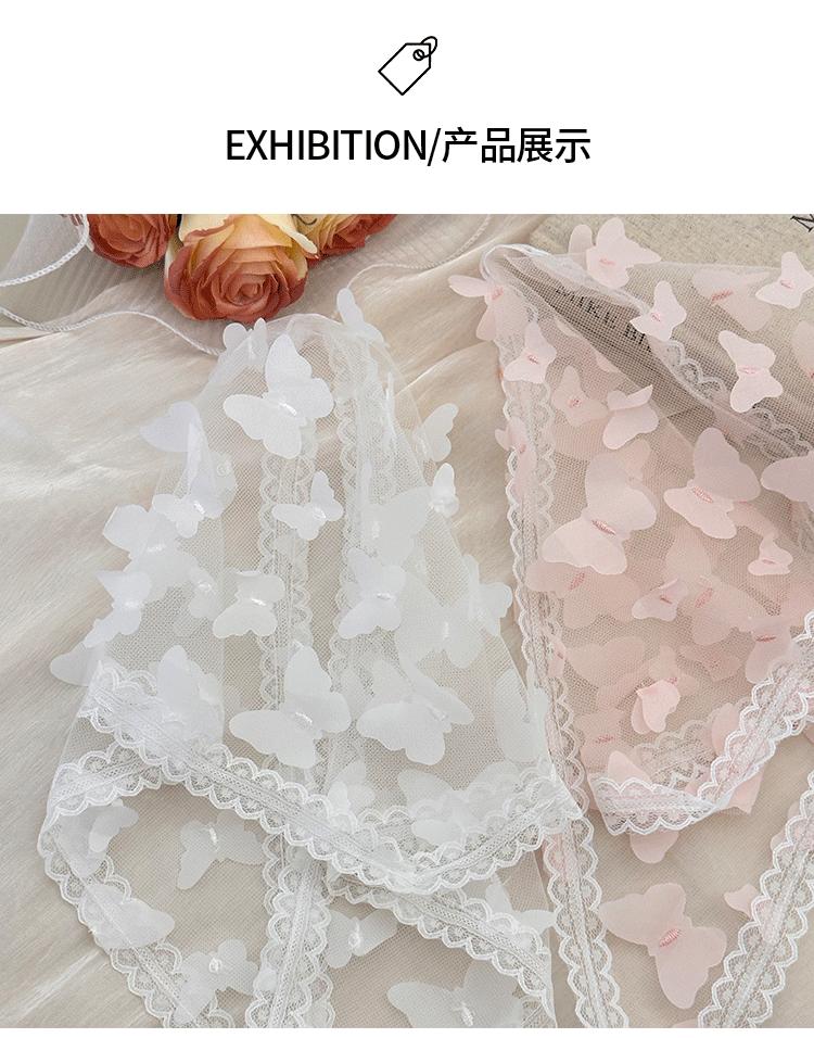 Bufanda de mariposa inteligente Dopamine, estilo francés, estilo hada, turbante triangular de encaje, cinturón de malla para el pelo para mujer, verano junto al mar