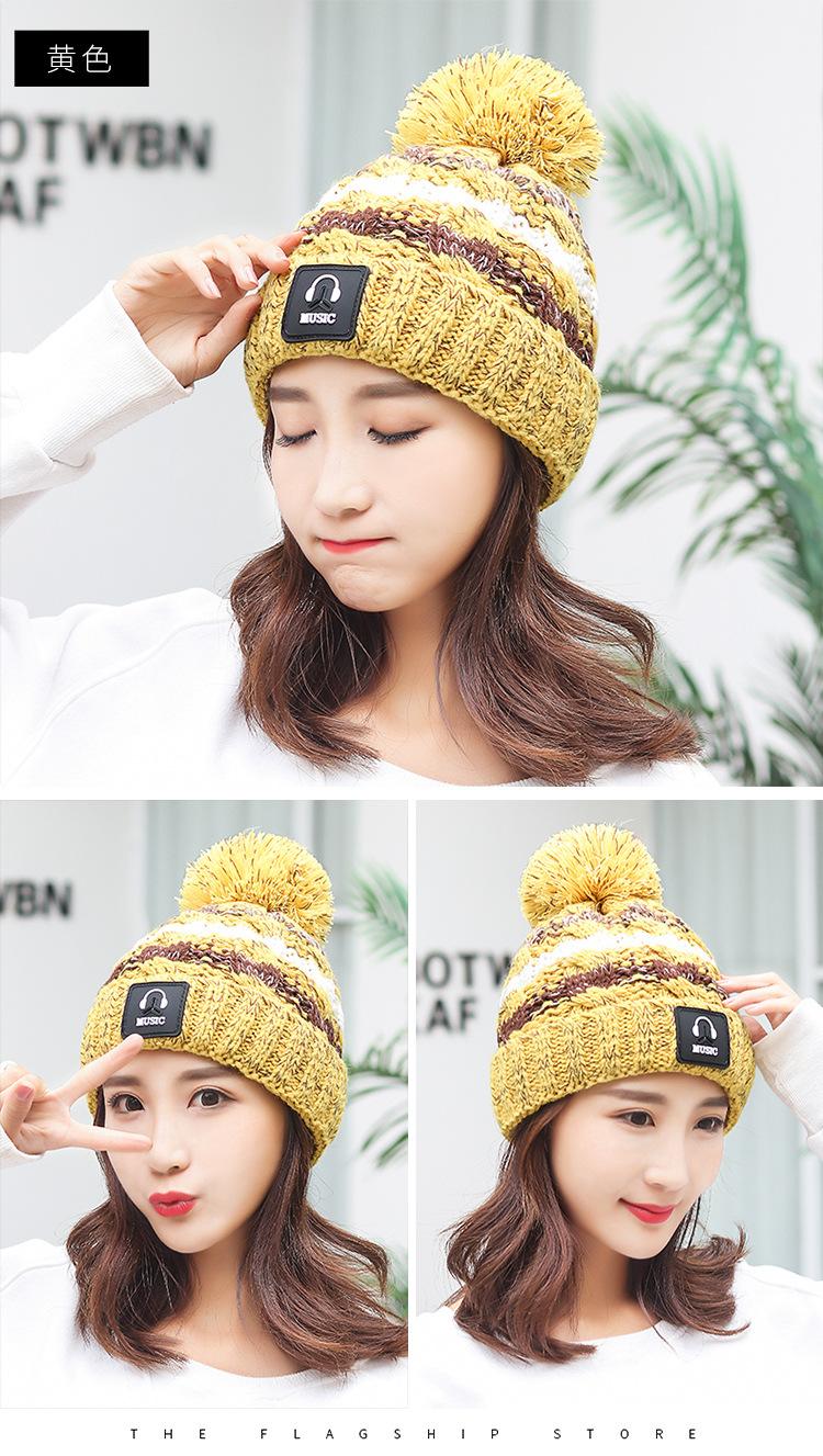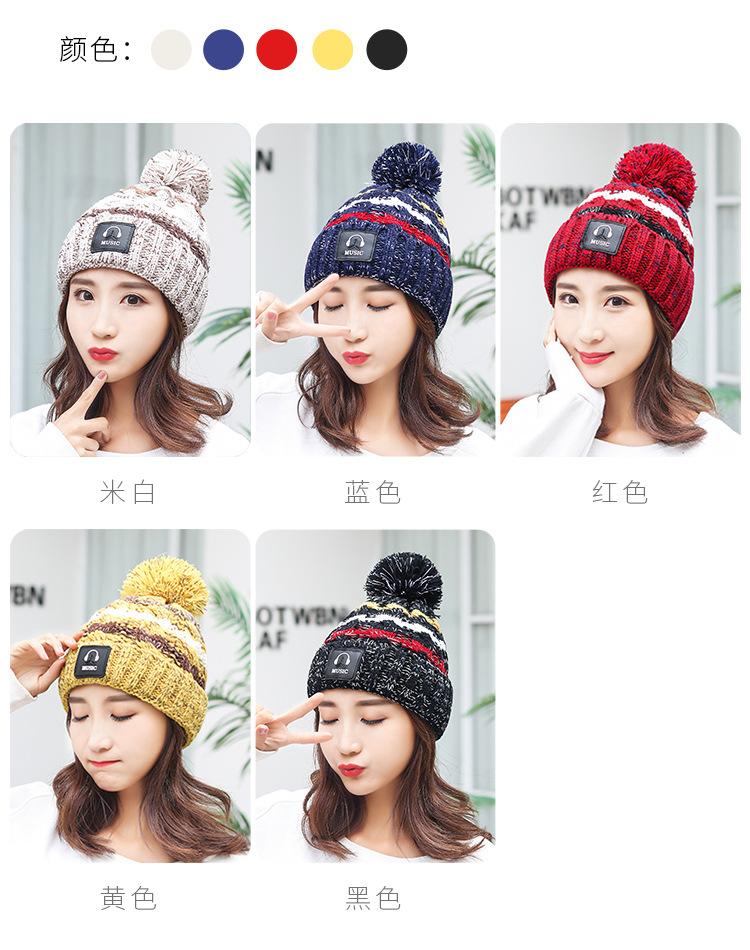 Gorro de lana de punto con bola de pelo de color estilo coreano para mujer, gorro holgado de otoño e invierno, gorro pequeño para el frío 2021.