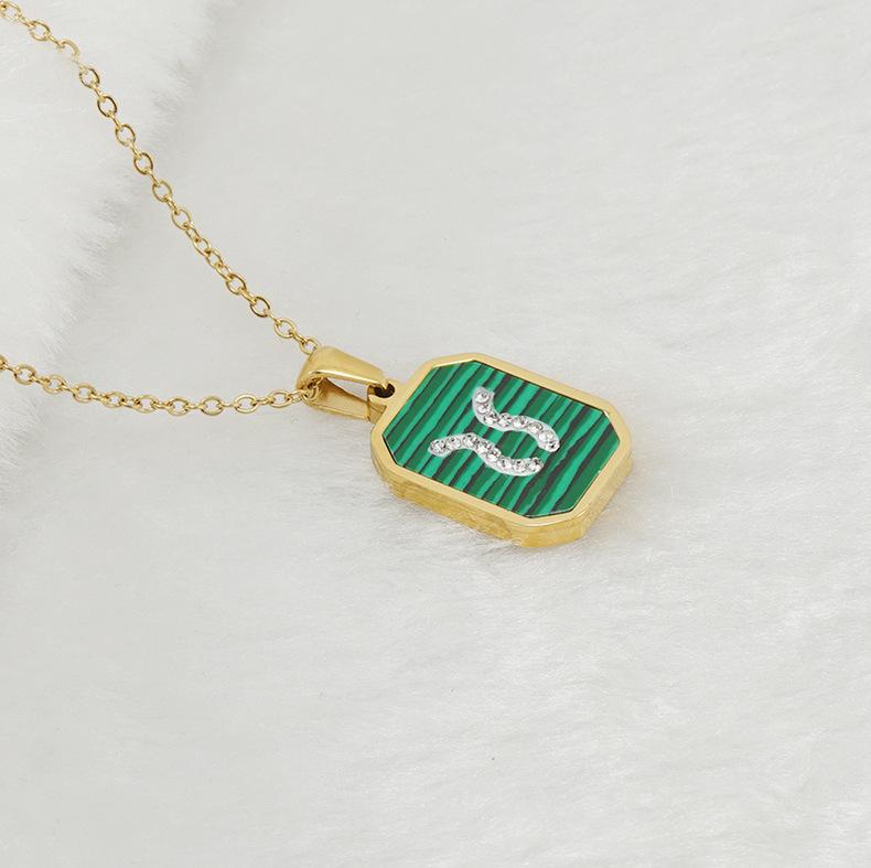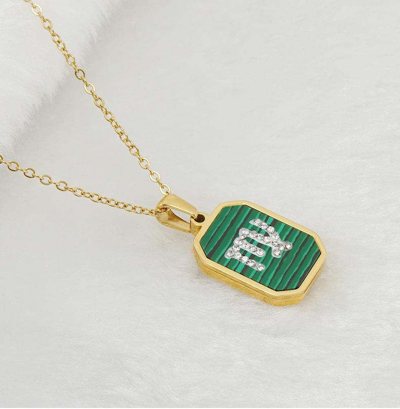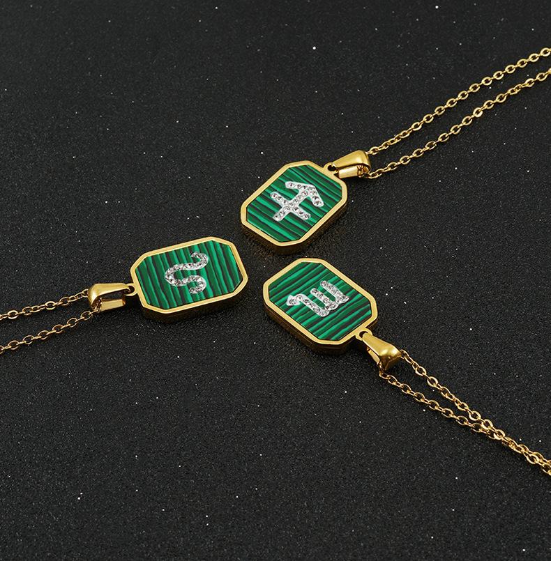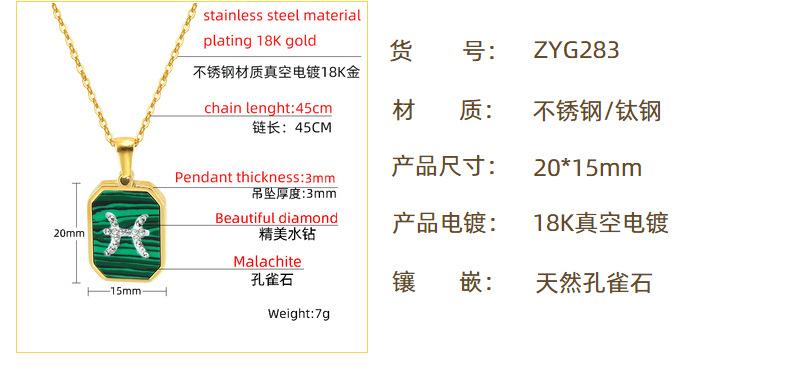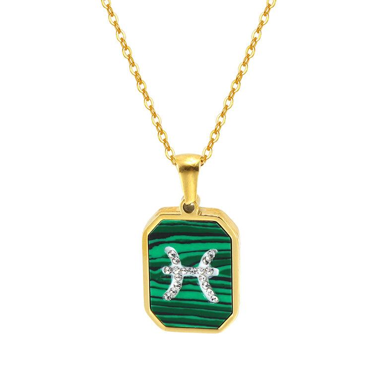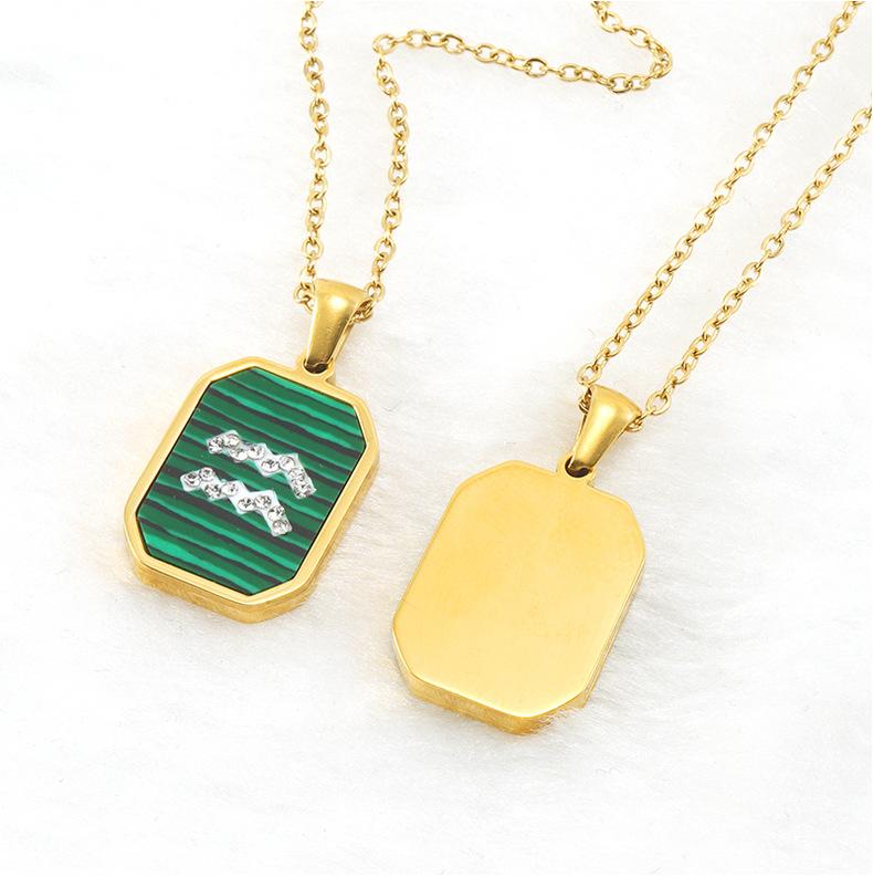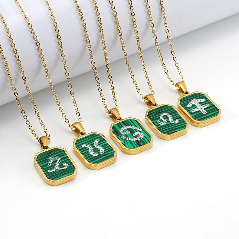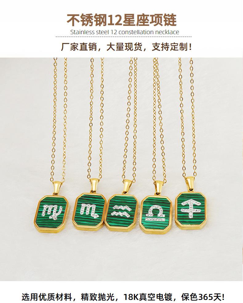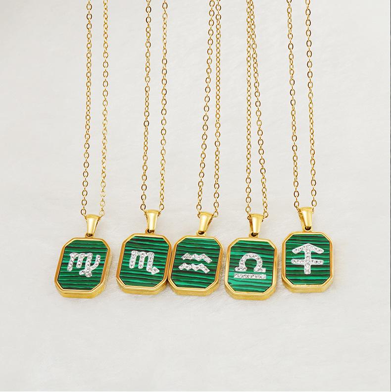 Collar de constelación de malaquita de acero inoxidable transfronterizo para mujer, moda, diamante, colgante de doce constelaciones, cadena para clavícula, joyería al por mayor