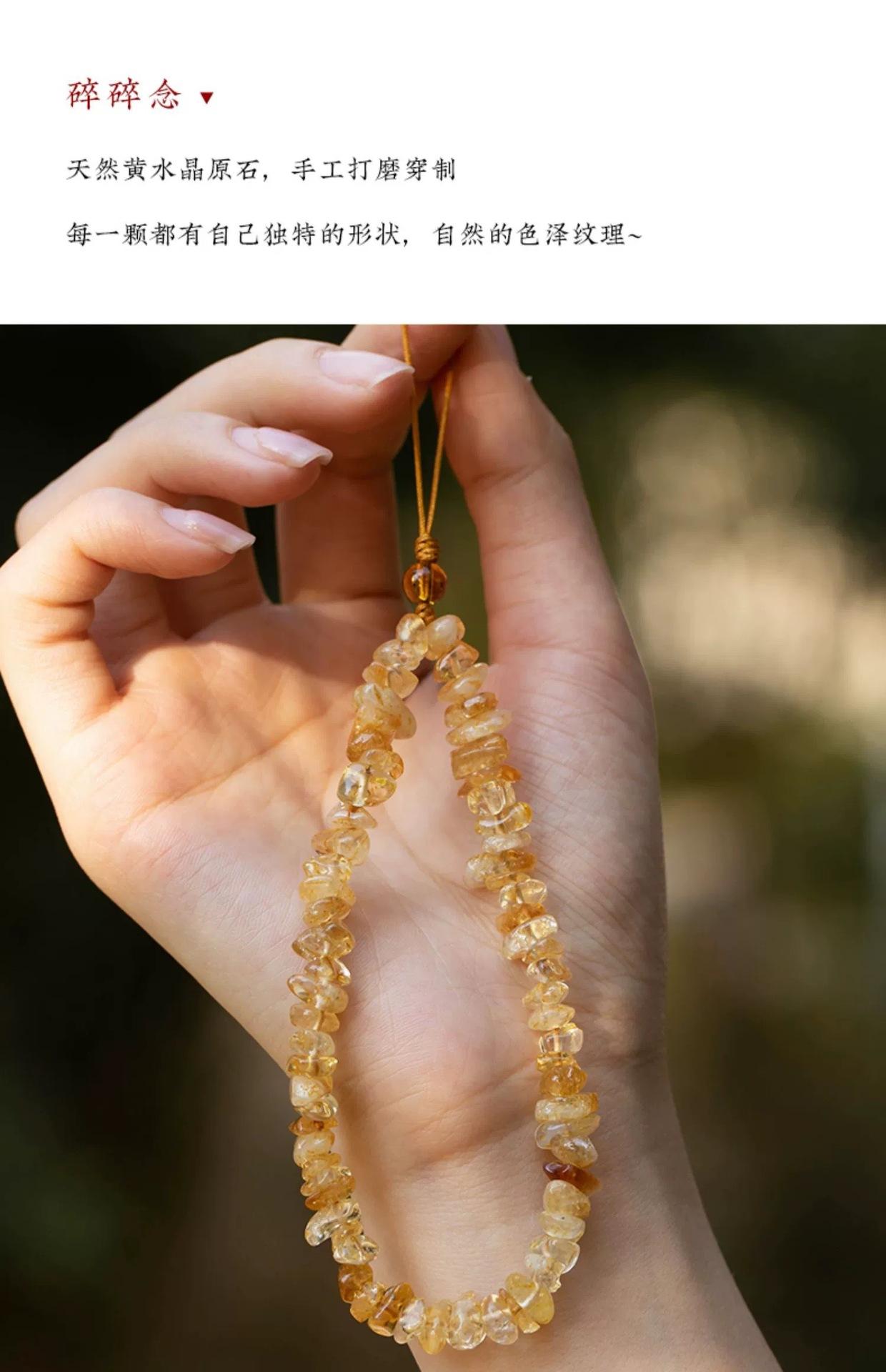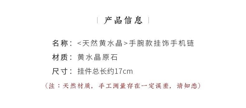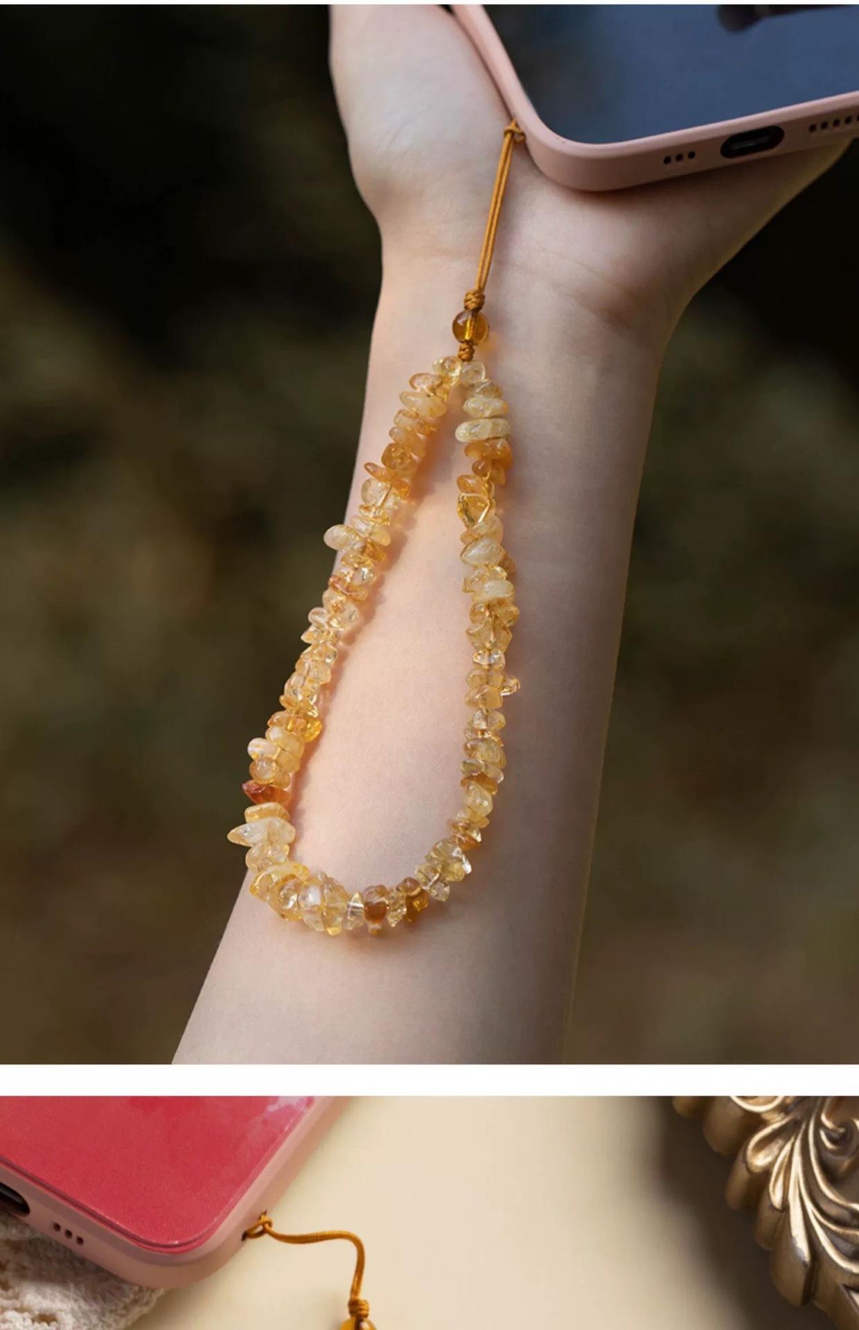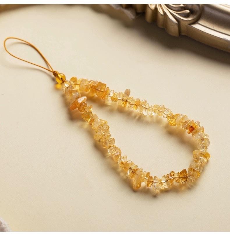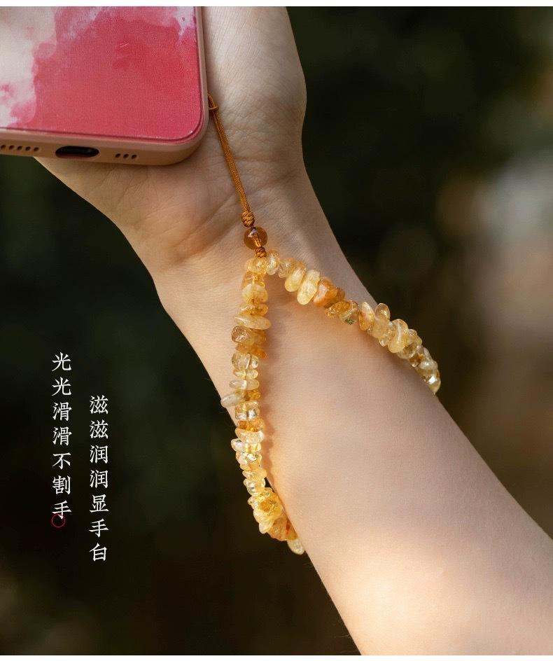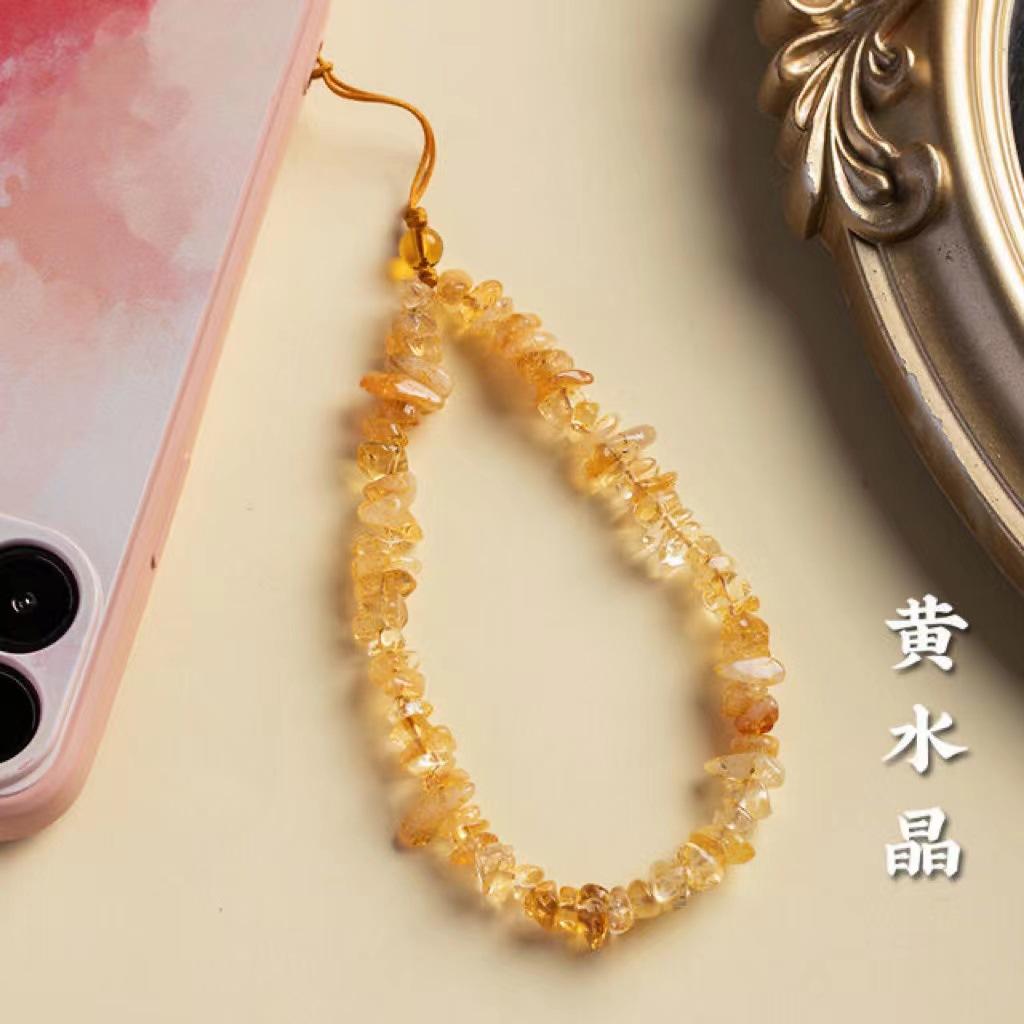 Cadena de teléfono móvil de citrino natural, colgante de cordón, llavero de la fortuna femenina, colgante de cuerda para la muñeca, correa de muñeca de jade, antipérdida de CD