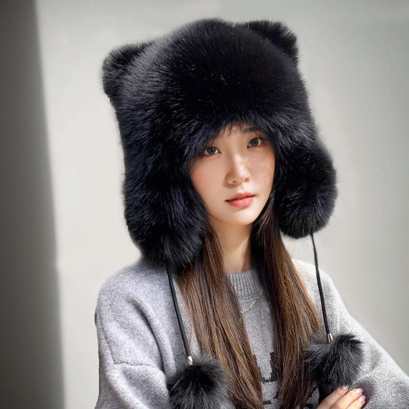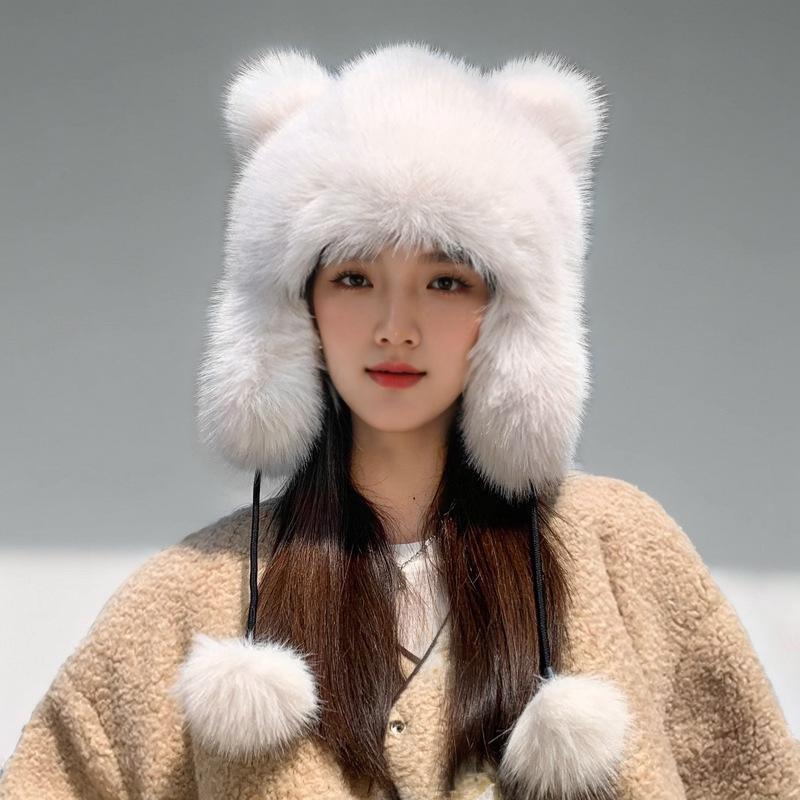 Otoño e Invierno gorro de princesa cálido grueso moda gorro protector de orejas mapache gorro de felpa al por mayor imitación piel de zorro femenino
