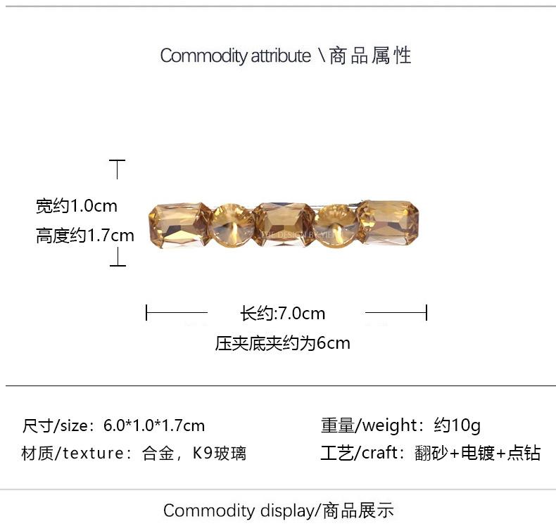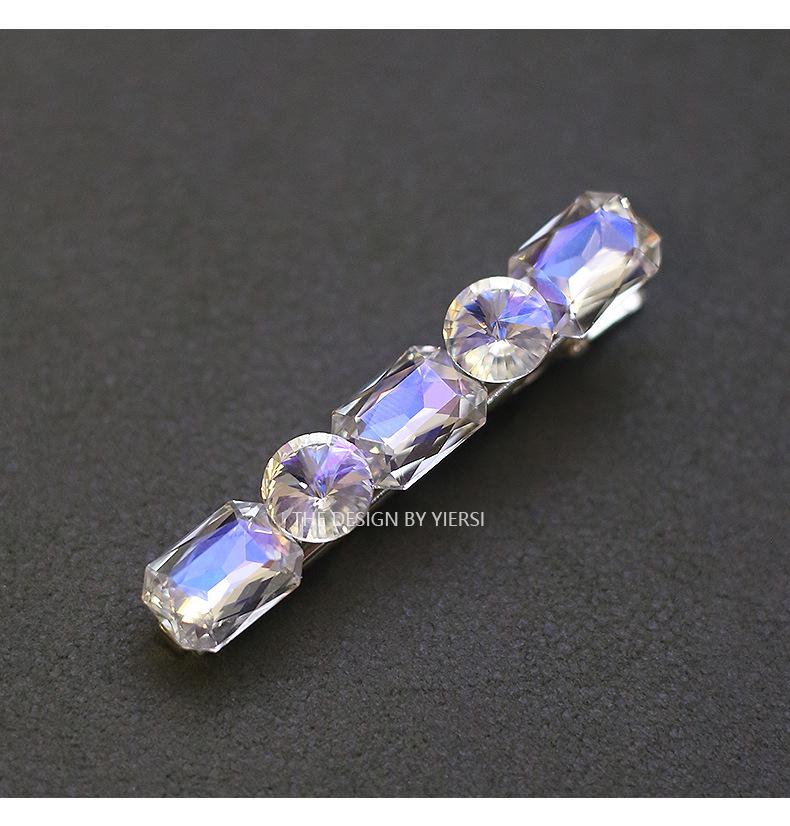 Pinza de pico de pato geométrica de cristal brillante estilo coreano para flequillo y cabello lateral, horquilla pequeña exquisita de sentido avanzado, accesorio para la cabeza transfronterizo
