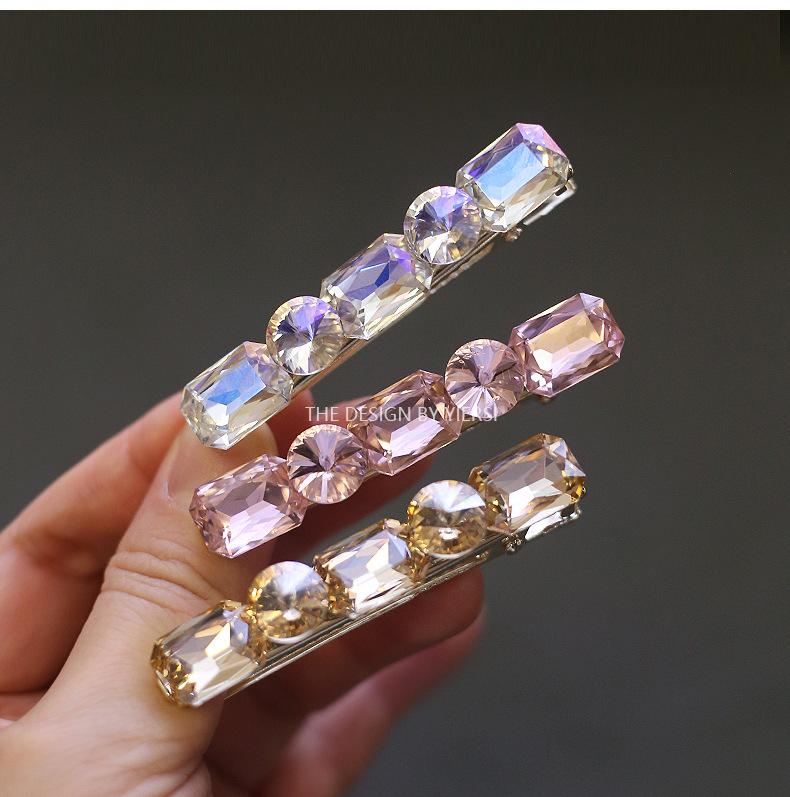 7cm-magic white rectangular crystal clamp, 7cm-champagne rectangular crystal clamp, 7cm-pink rectangular crystal clamp