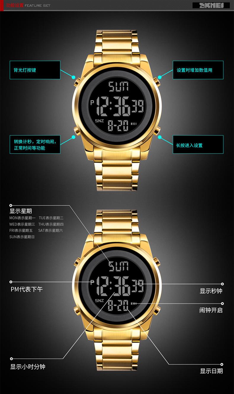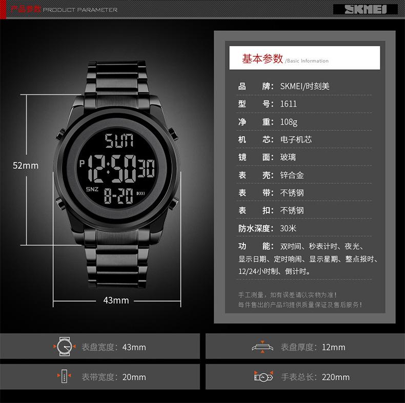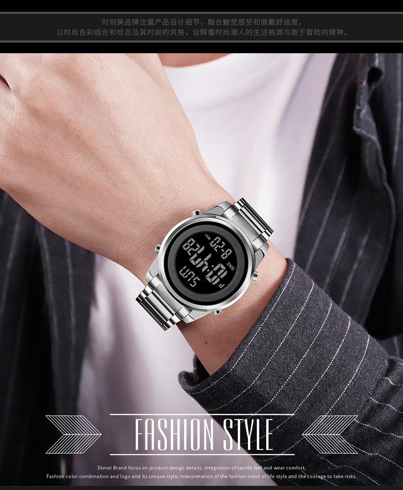 Reloj Transfronterizo Skmei Reloj Electrónico de Negocios Correa de Acero Inoxidable Impermeable Temporización Reloj de Hombre al por Mayor