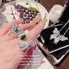 Anillo Mariposa Amor Flor Chapado en Oro Rosa de 18K Mariposa Diamante Diamante Rojo Granate Cristal Anillo Propuesta Apilable