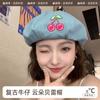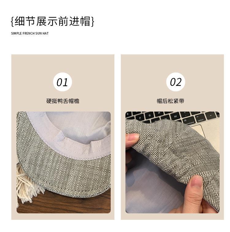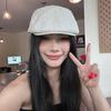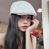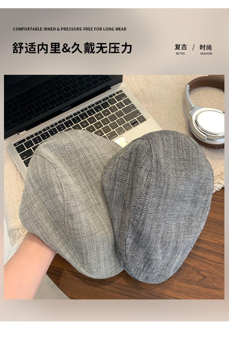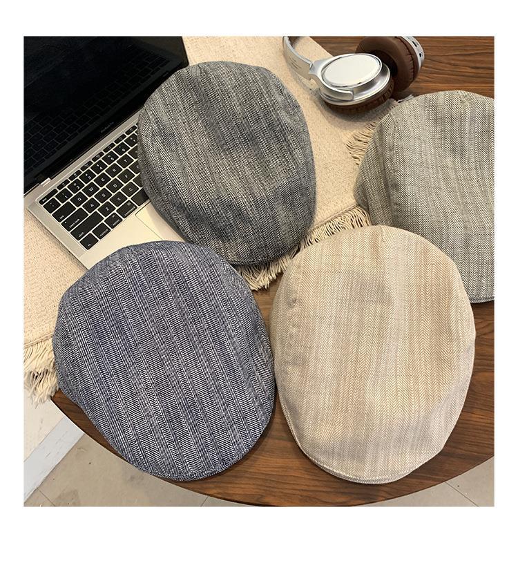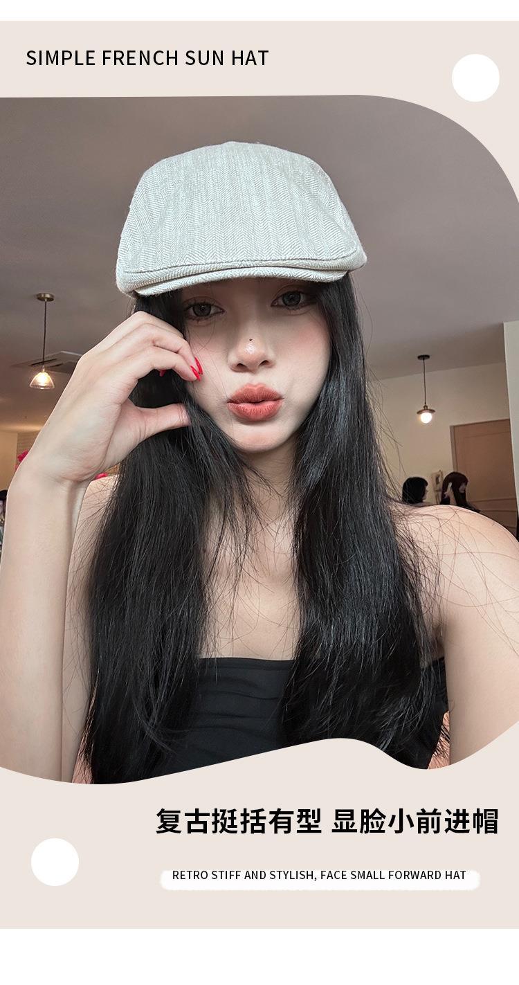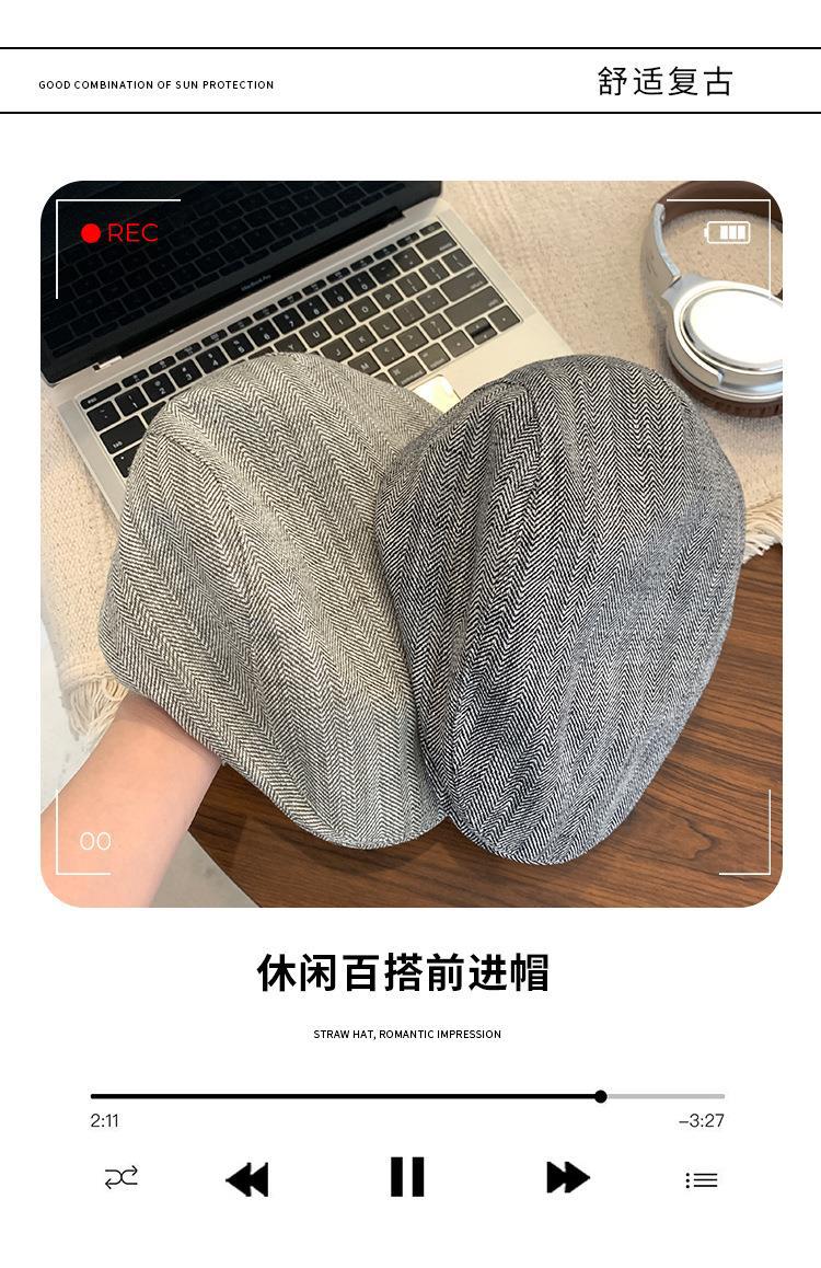 Sombrero Cowboy Retro Rayado Hacia Adelante para Mujer Estilo Británico Literario Circunferencia de Cabeza Grande Boina Mostrando la Cara Sombrero de Pato de Pintor