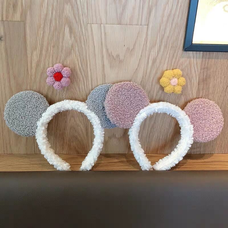 Lavar Cara Banda para el Cabello de Felpa Popular en Internet Lindo Súper Lindo Oreja de Mickey Dibujos Animados Tocado Diadema de Flores Pequeñas Banda para el Cabello Accesorios para el Cabello para Mujeres