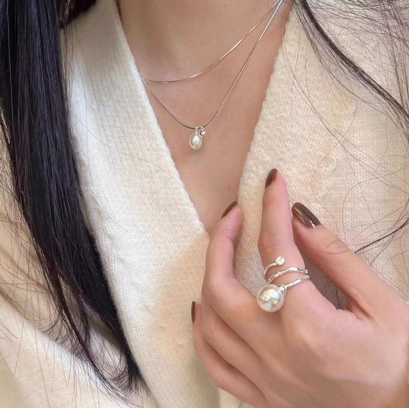 Collar con colgante de perlas de doble capa para mujer, diseño apilado de alta gama, sencillo, elegante, de nicho, ligero, de lujo, con cadena de clavícula.