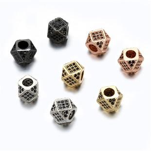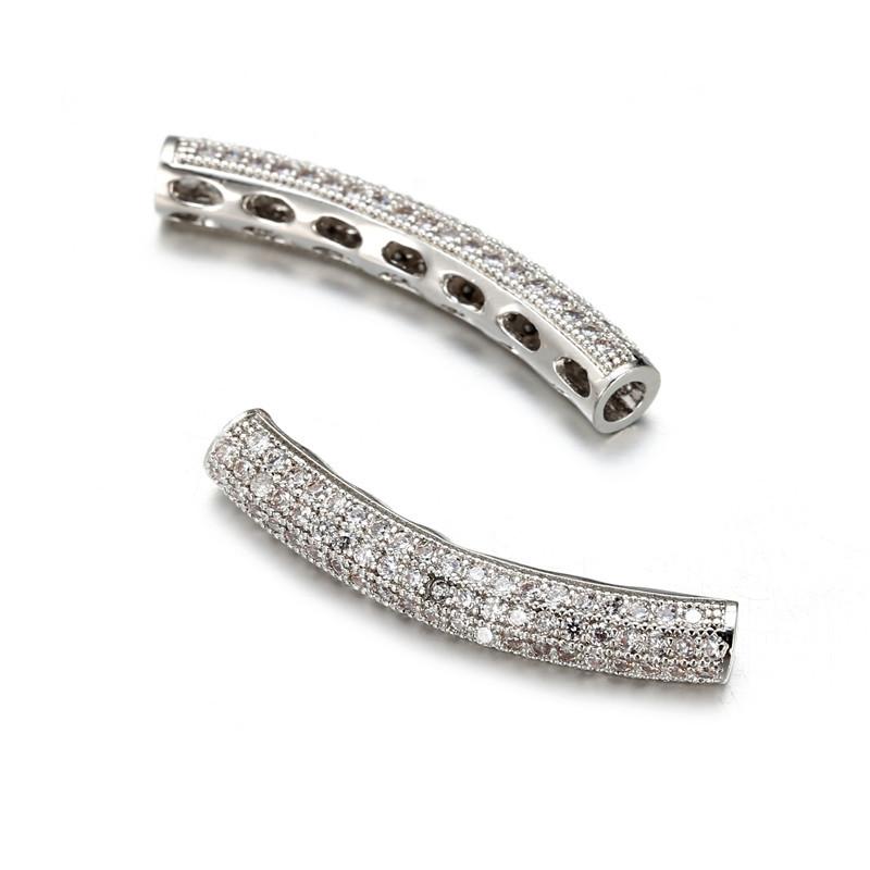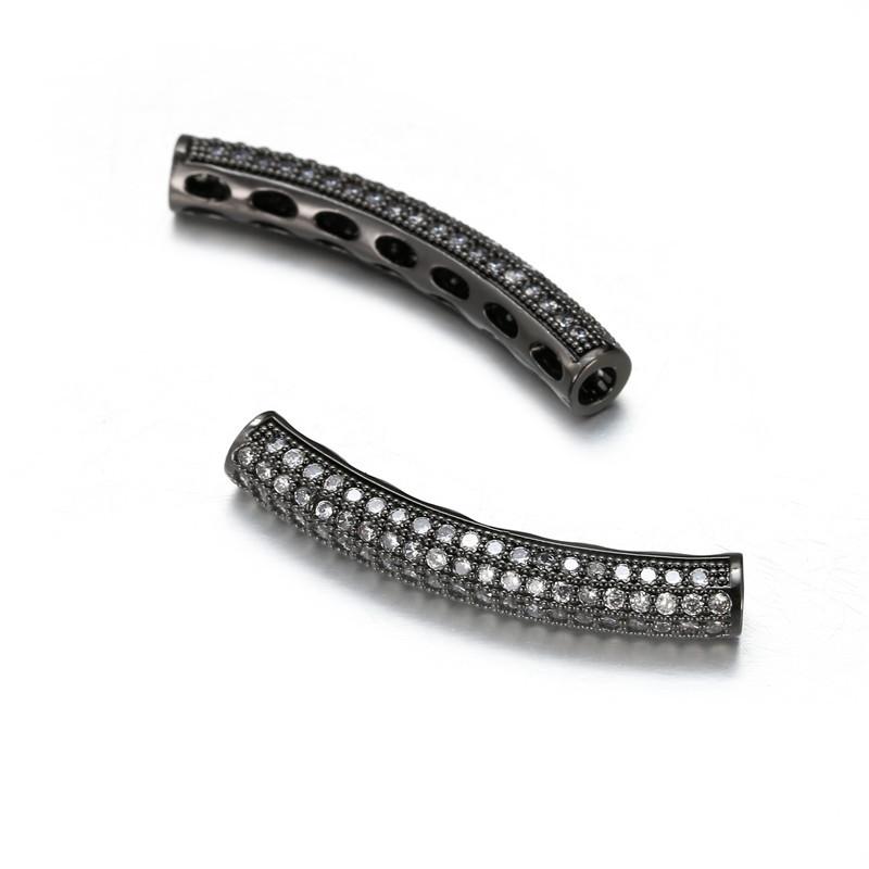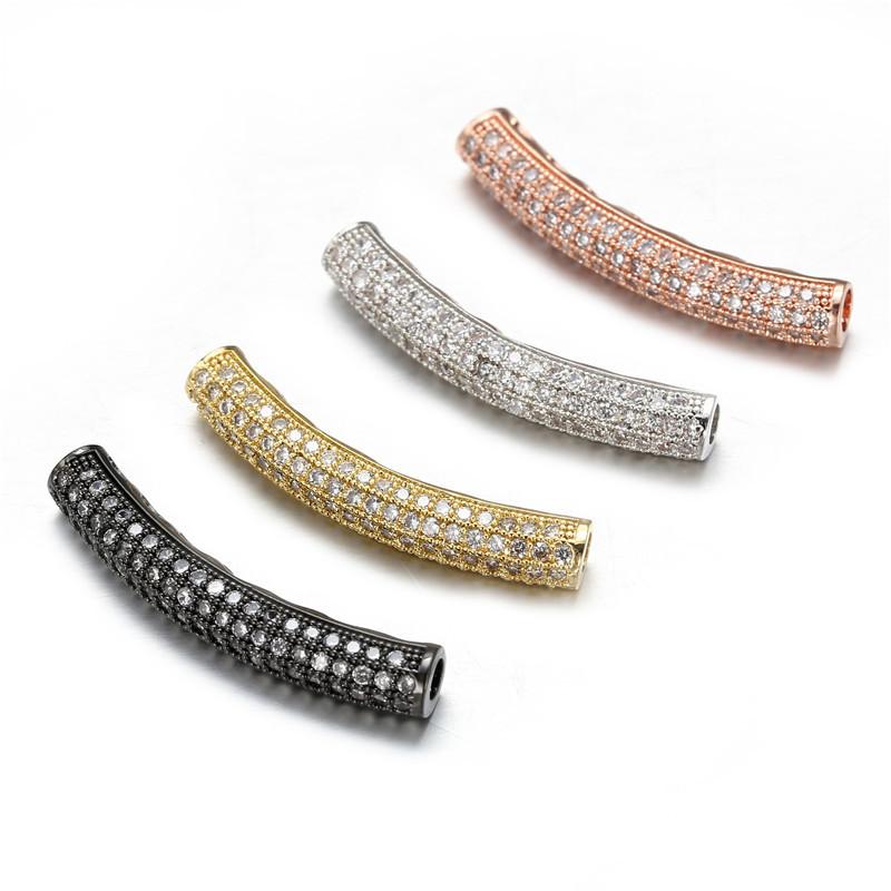 Nombre: Cobre con incrustaciones de circonio diamante completo patrón de cuatro colores tubo curvo pulsera collar cuentas sueltas accesorios colgante al por mayor