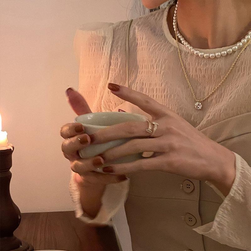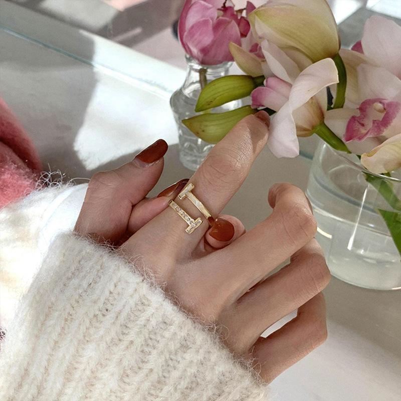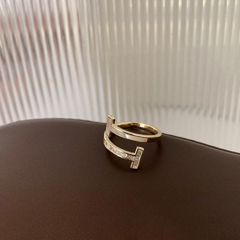 Anillo coreano de diseño nicho de lujo ligero de alta gama con diamantes de imitación y nácar para mujer, moda Ins, personalidad, simple, nuevo modelo 2022