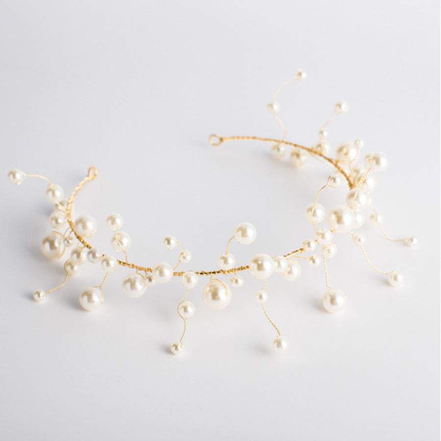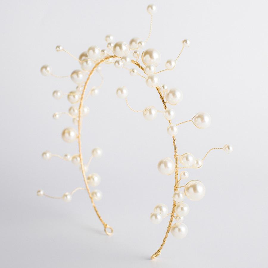 Accesorios nupciales japoneses y coreanos diadema de perlas hecha a mano accesorios para el cabello venta al por mayor directa de fábrica