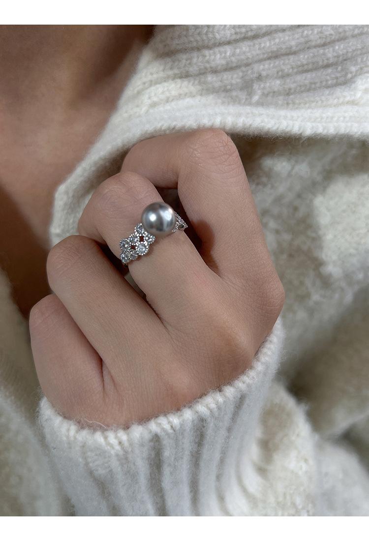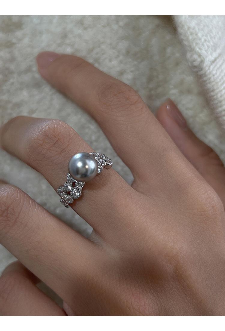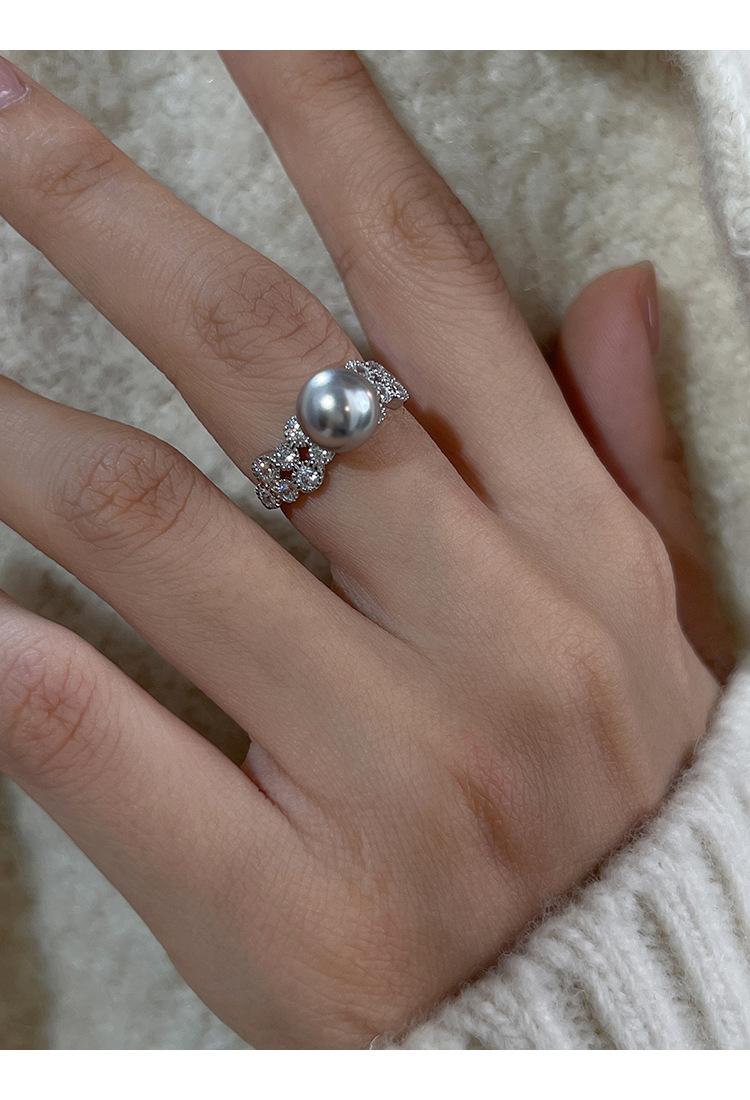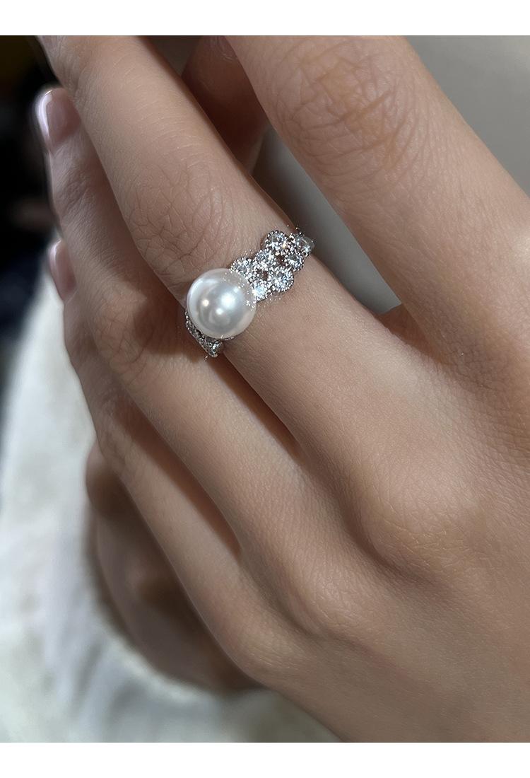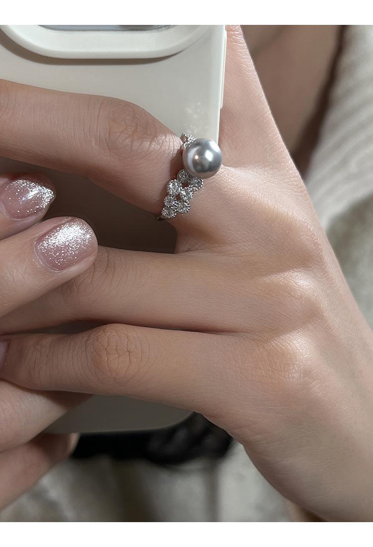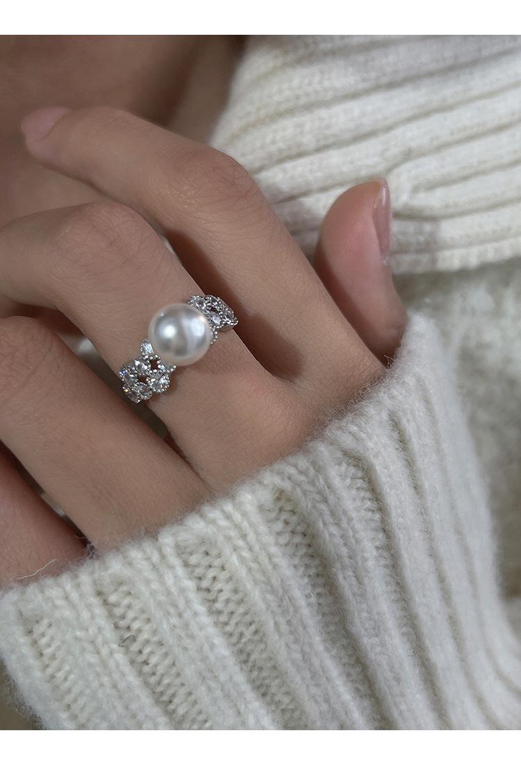 Anillo de perla de circonita de lujo ligero, anillo de temperamento, anillo para el dedo índice, nuevo anillo francés ajustable 2023 para mujeres