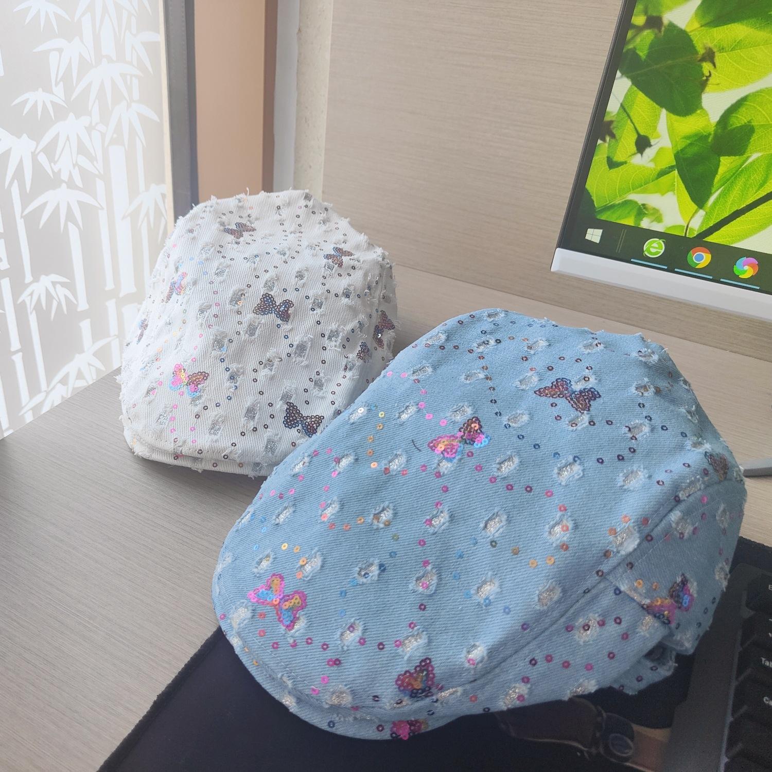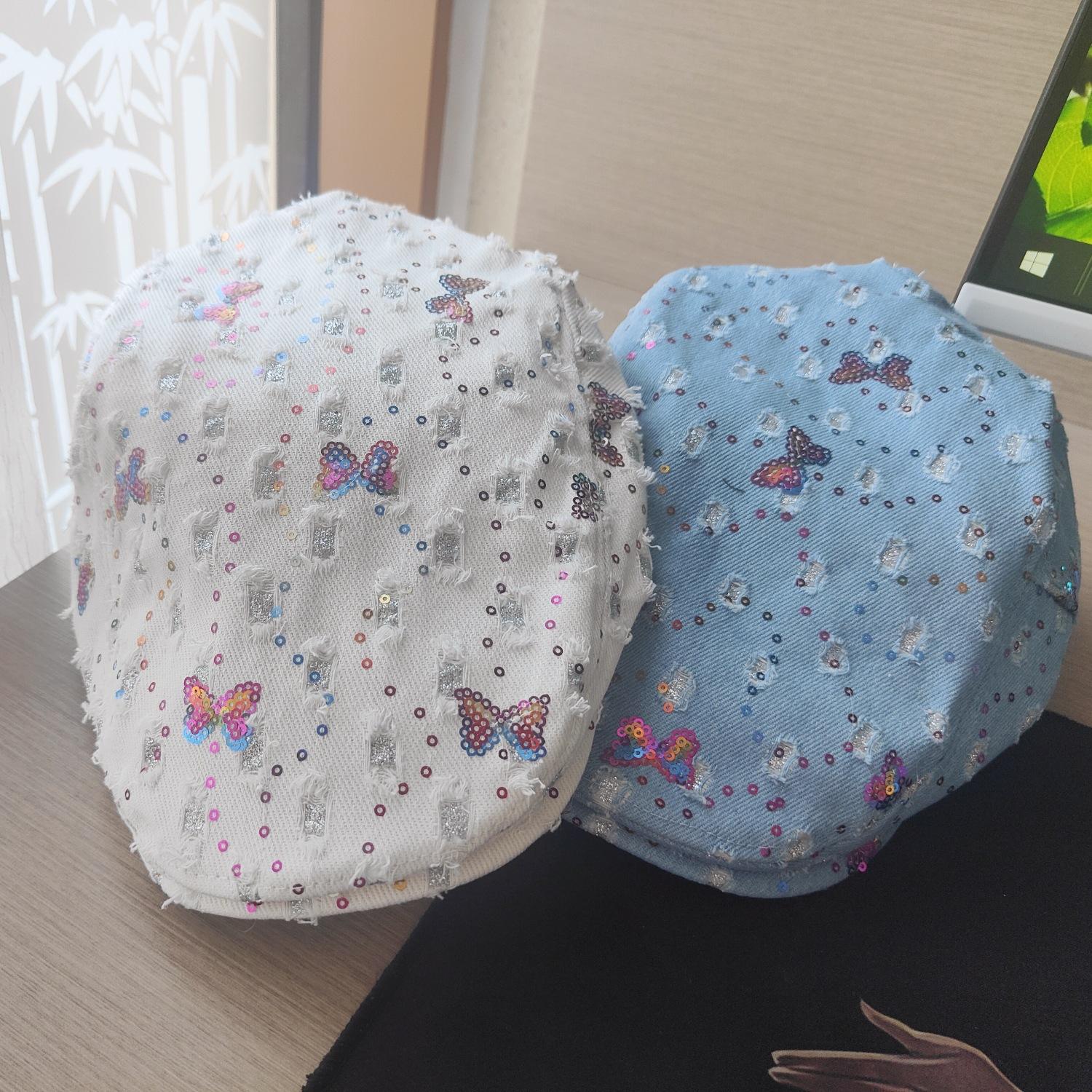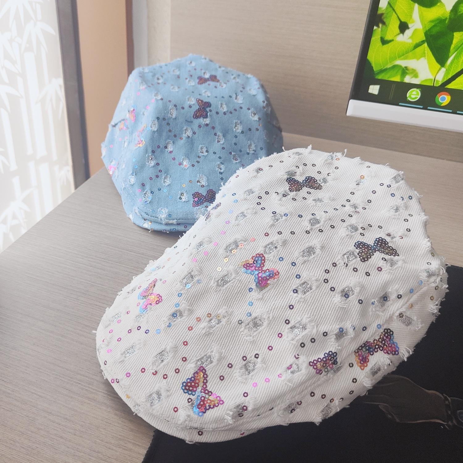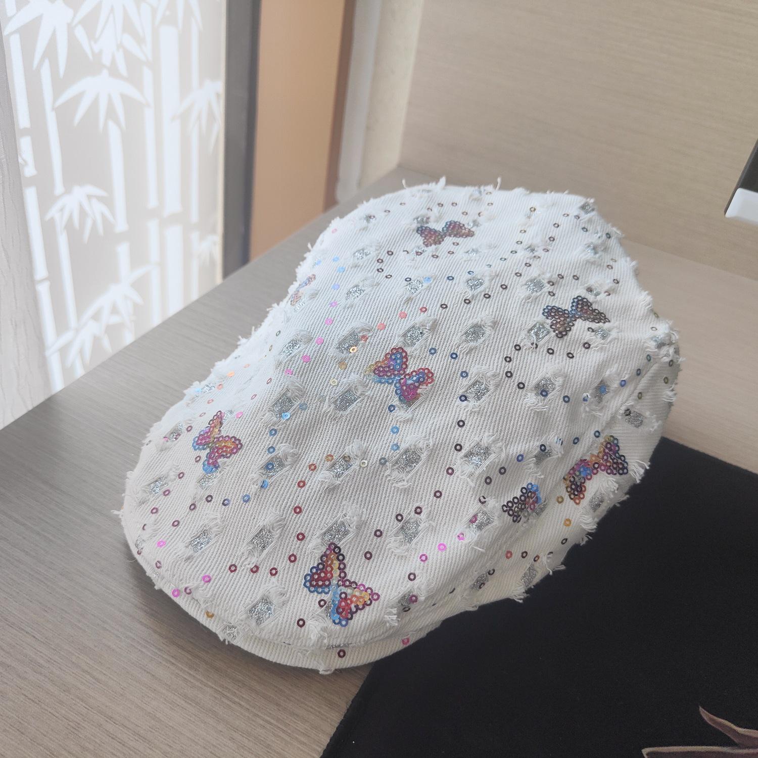 Dulce Cool Y2K Lentejuelas Boina Mariposa para Mujer Primavera y Verano Gorra Avanzada Roja de Internet Que Muestra la Cara Sombrero Pequeño de Fotógrafo Callejero