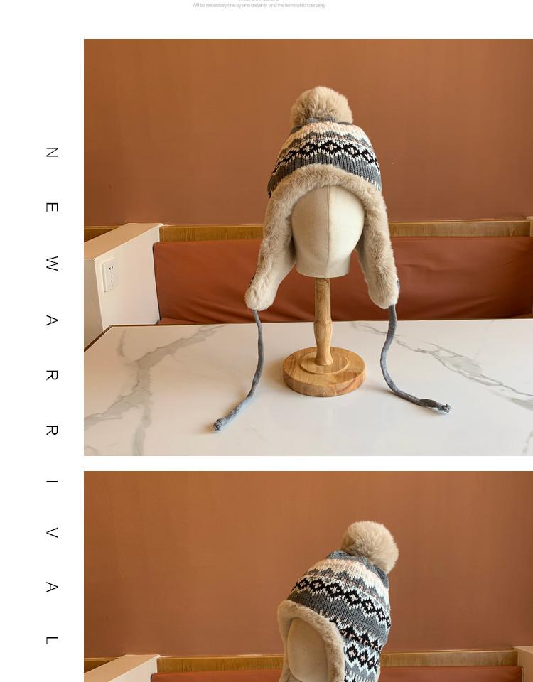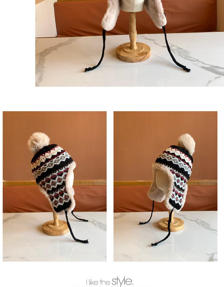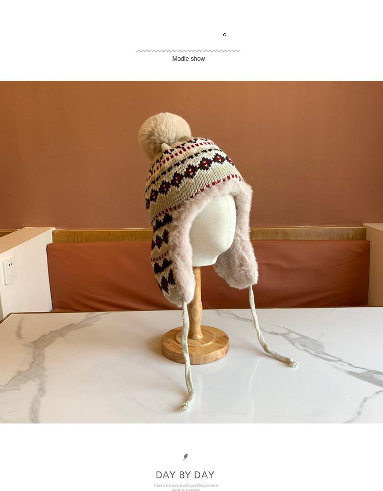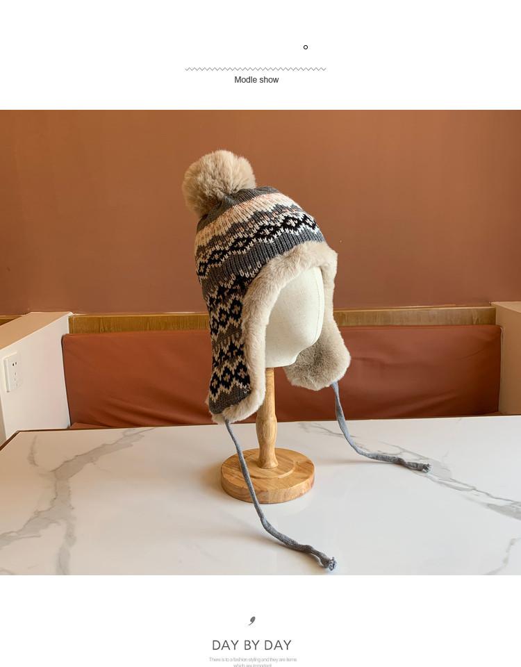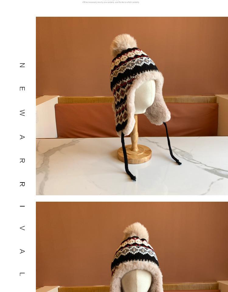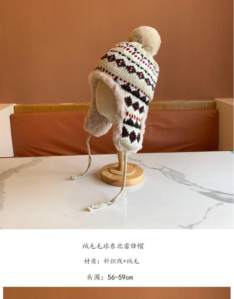 Sombrero de Estilo Nuevo para Mujer Otoño e Invierno Cálido Sombrero Lei Feng Protección para las Orejas Tejido Pompon de Piel Felpa Estudiante Sombrero del Noreste Montañismo Frío