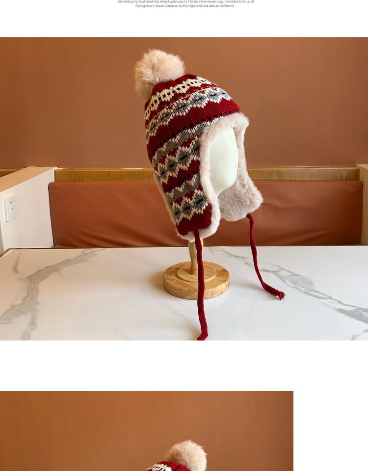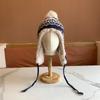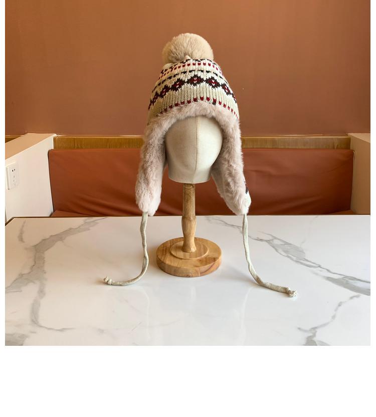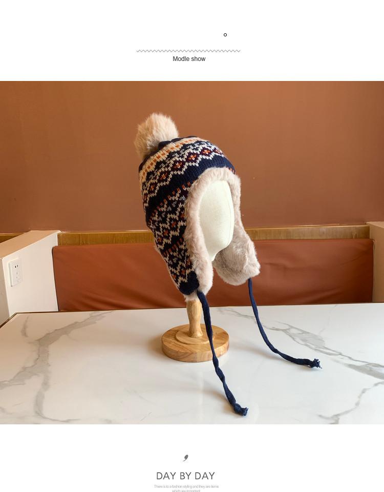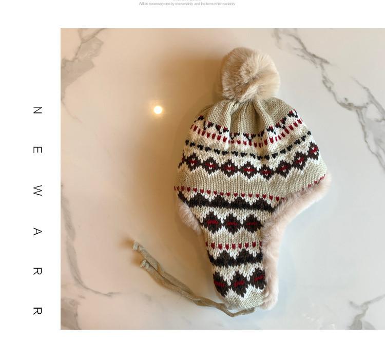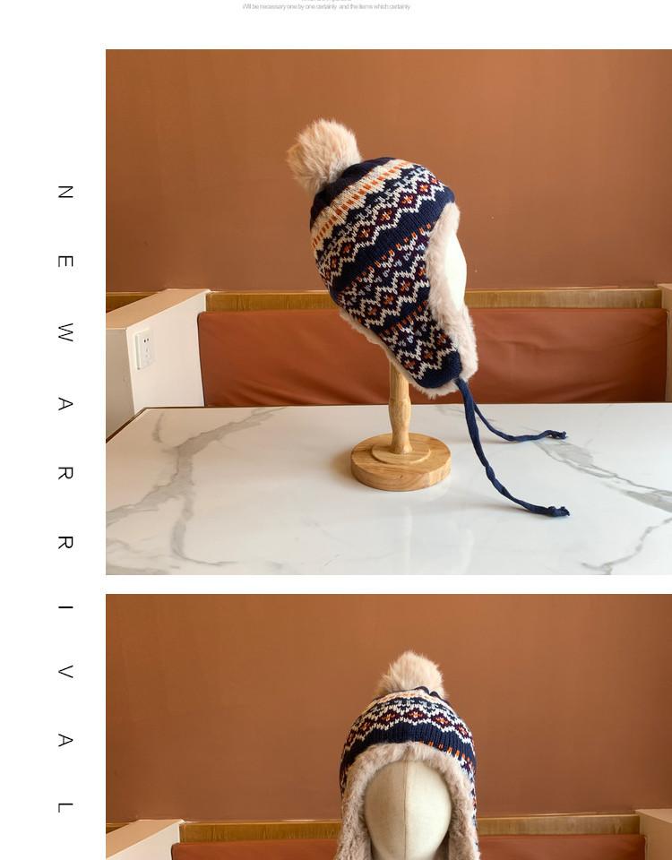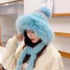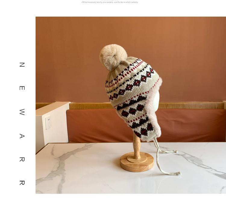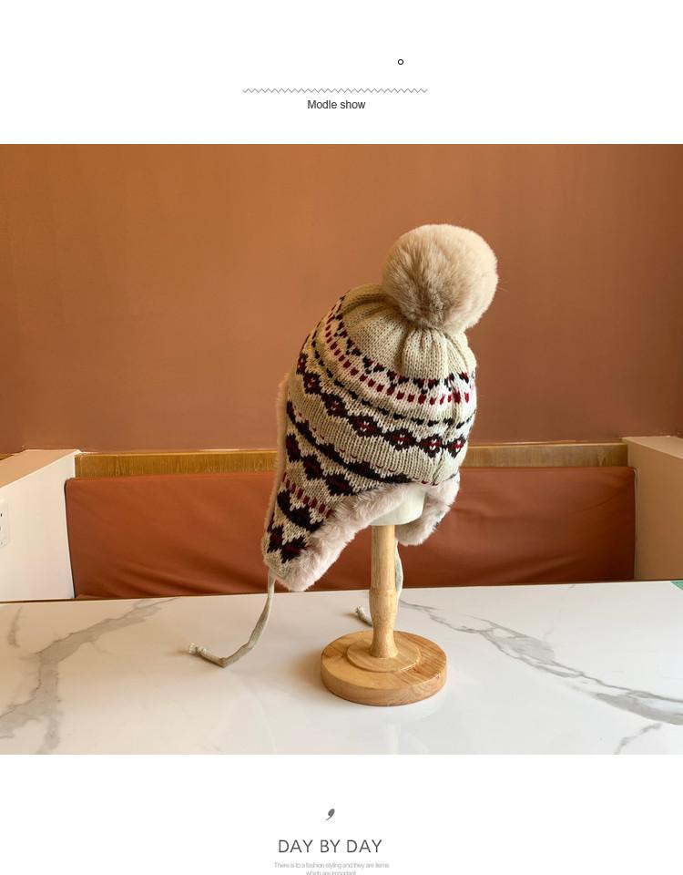 Sombrero de Estilo Nuevo para Mujer Otoño e Invierno Cálido Sombrero Lei Feng Protección para las Orejas Tejido Pompon de Piel Felpa Estudiante Sombrero del Noreste Montañismo Frío