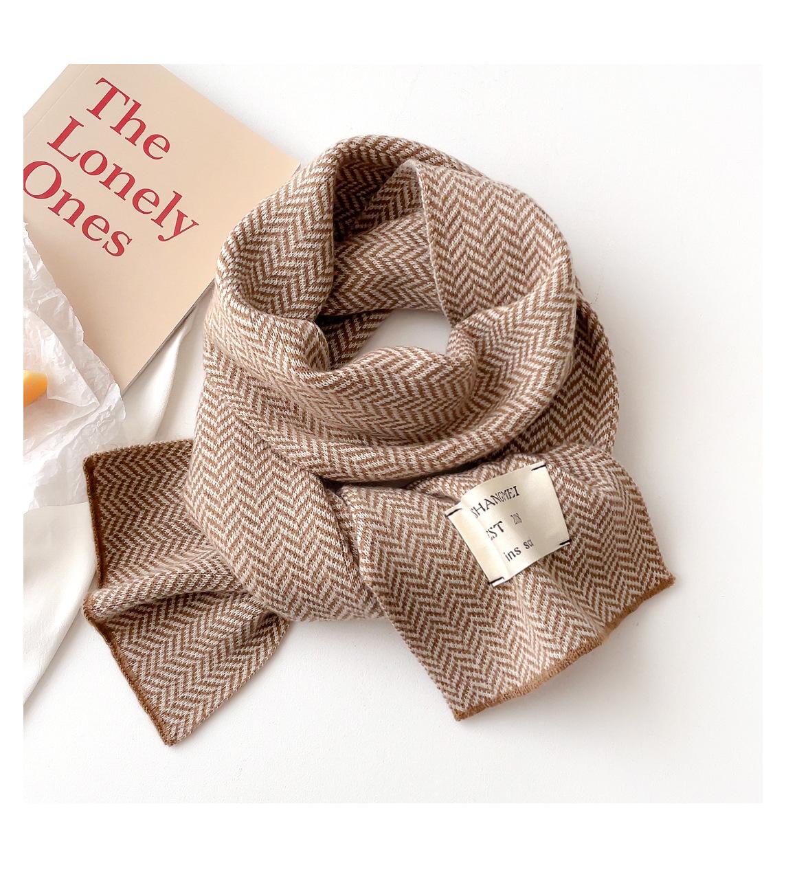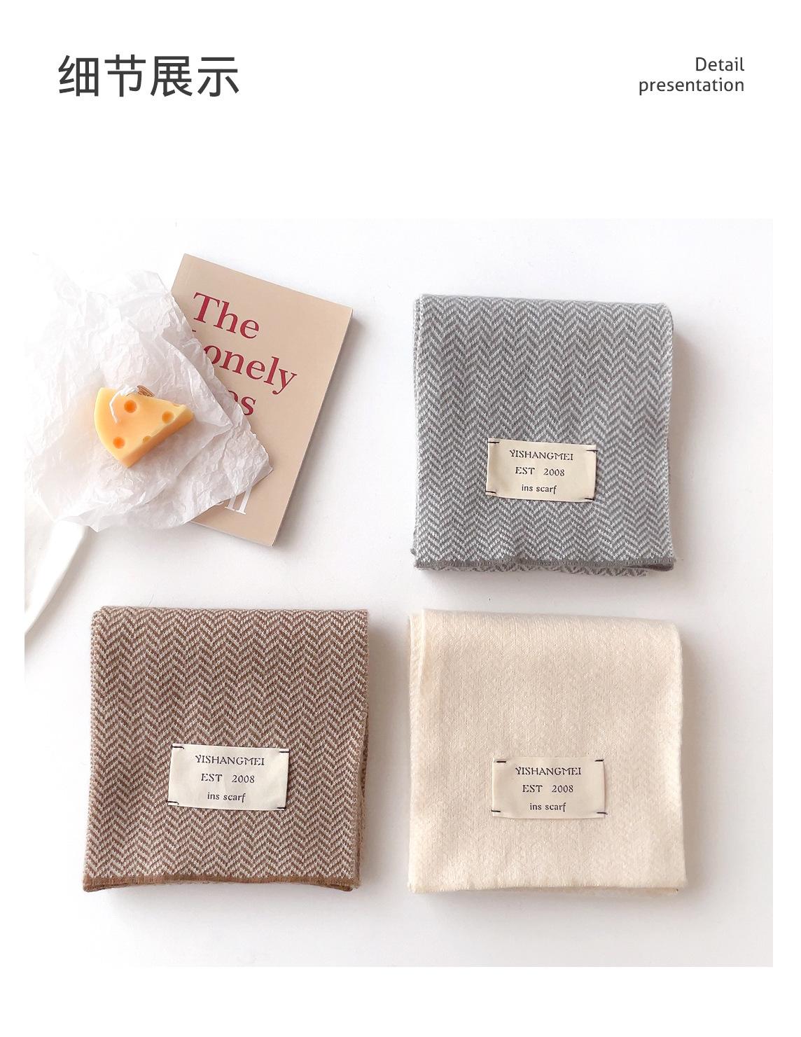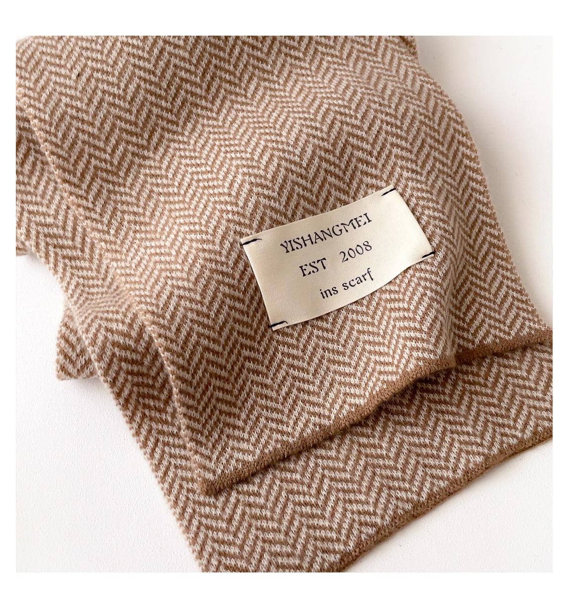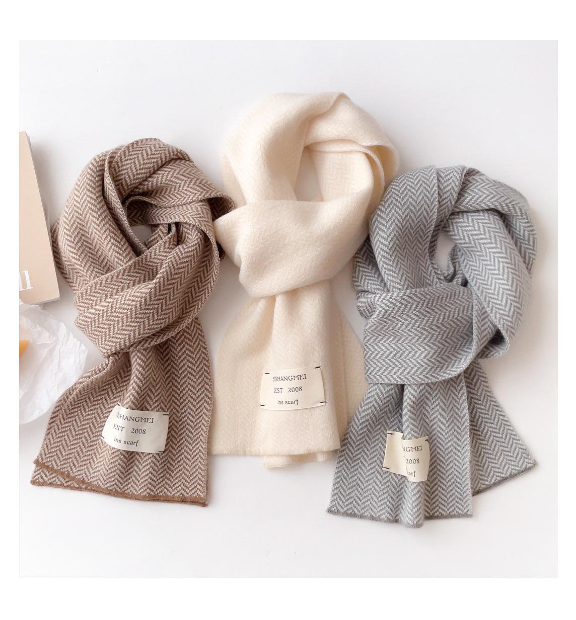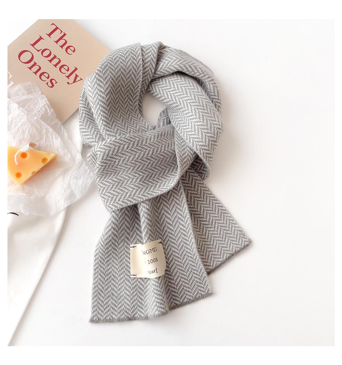 Bufanda cálida de lana tejida con etiqueta, estilo fresco, con estampado de trigo monocromático coreano de invierno para estudiantes, hombres y mujeres.