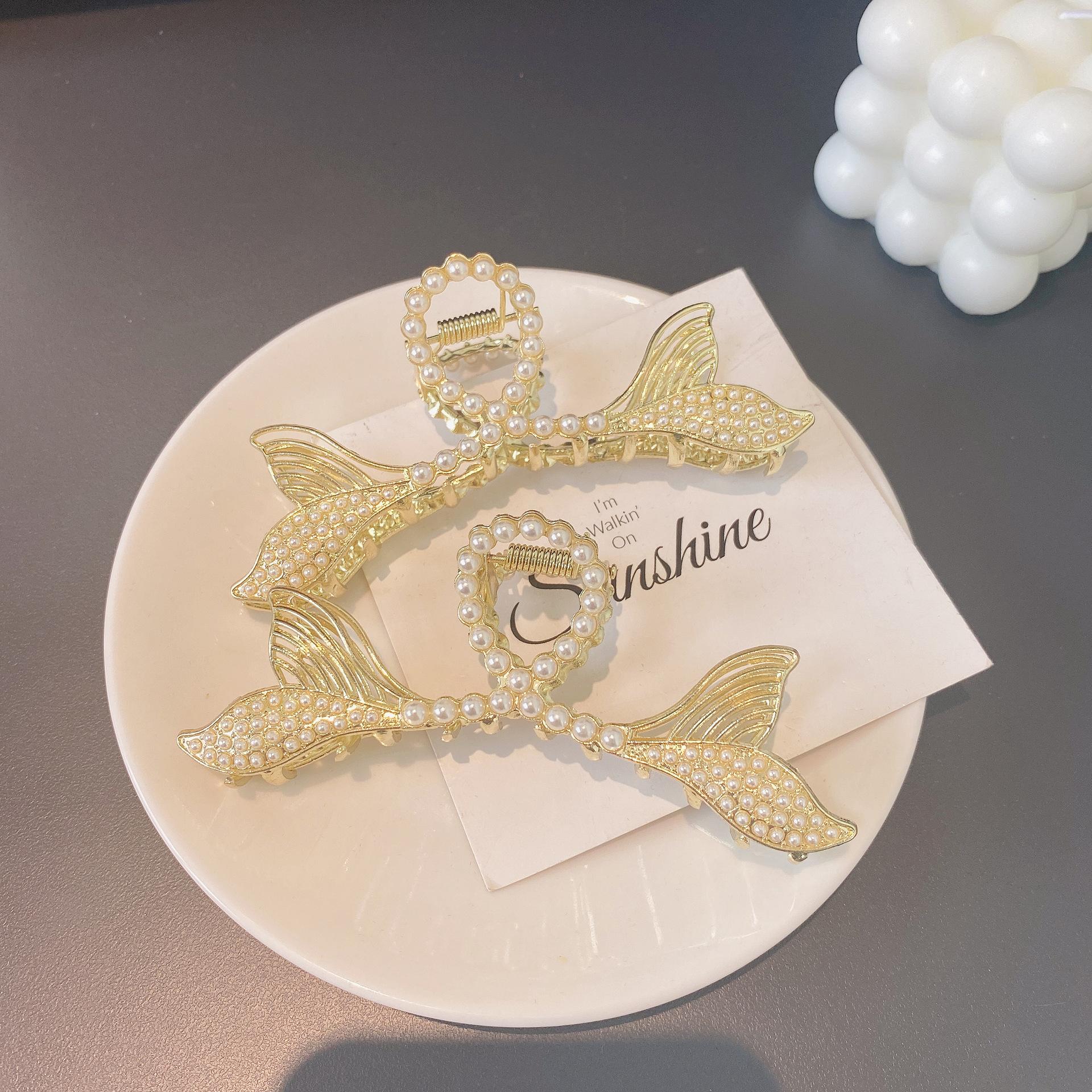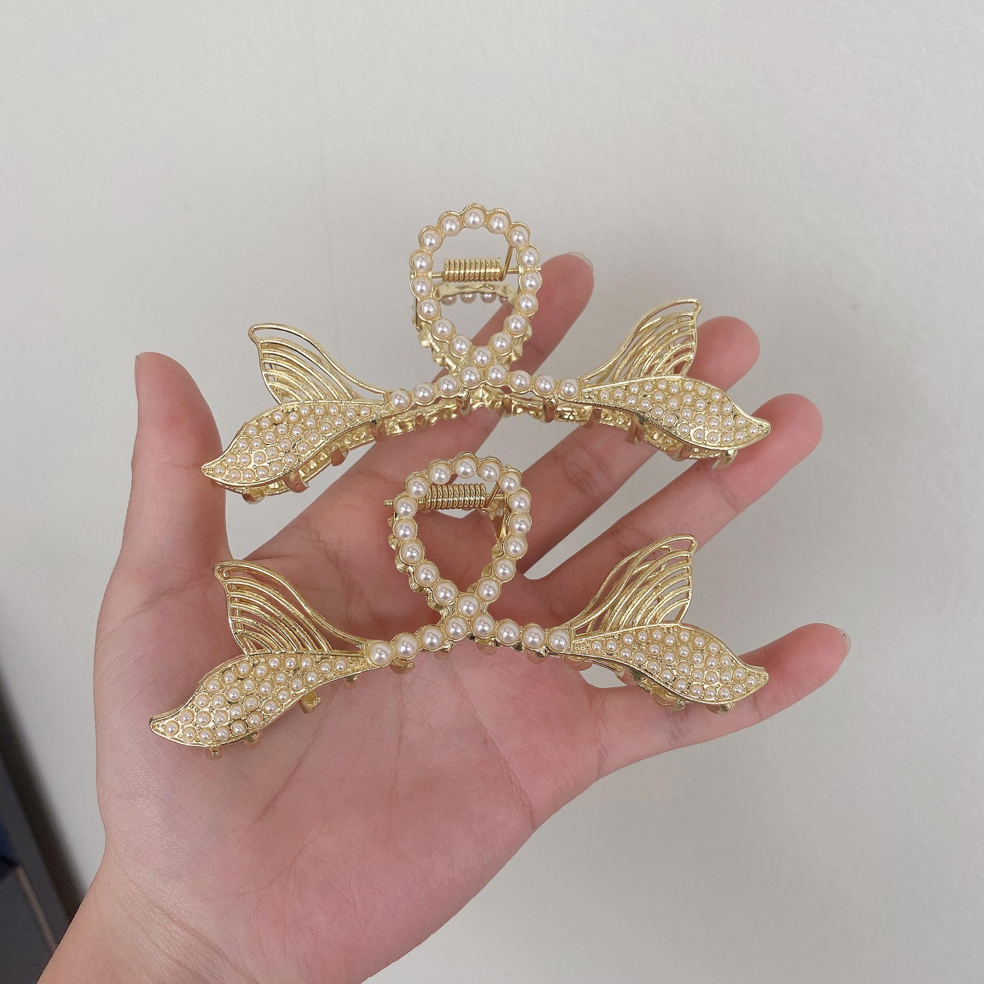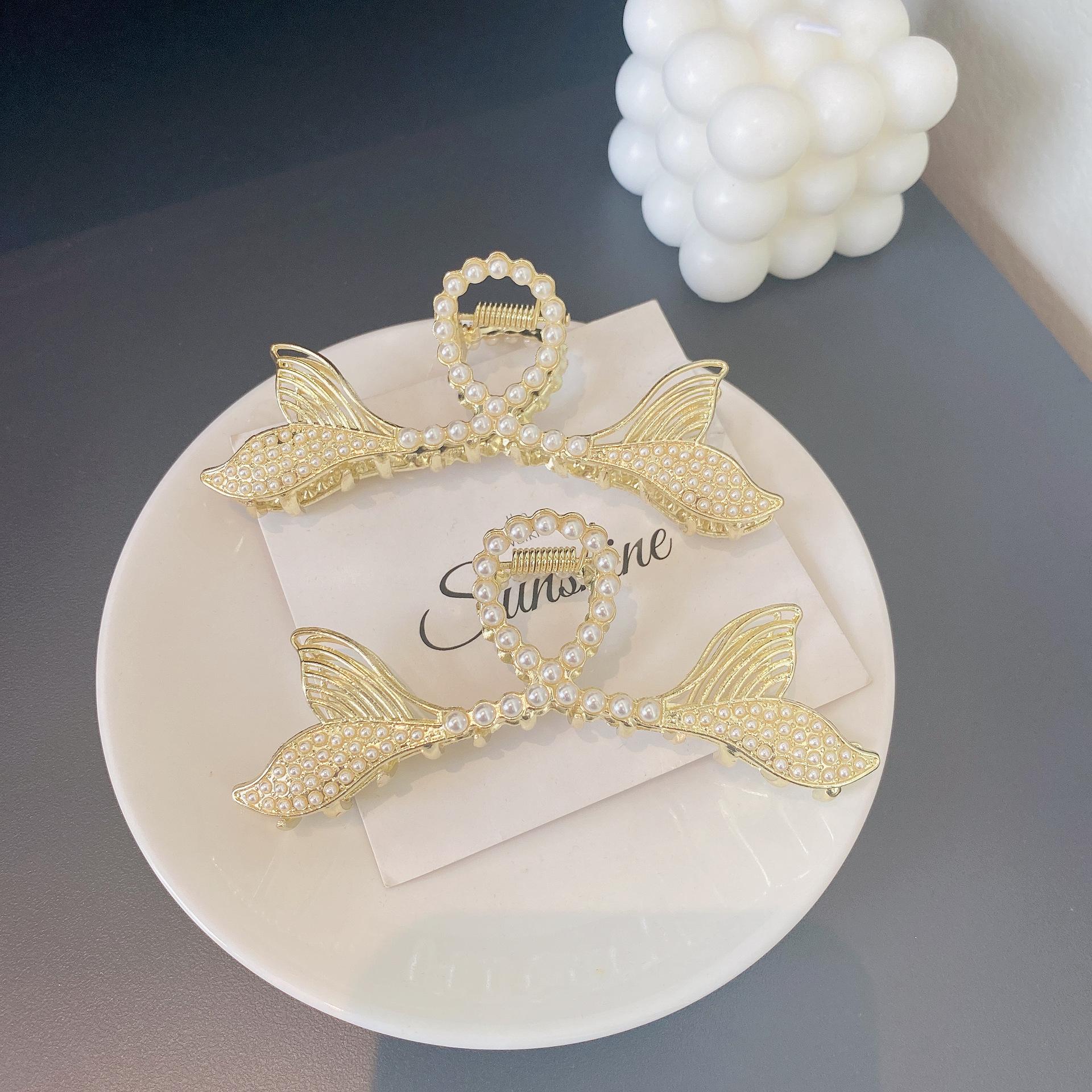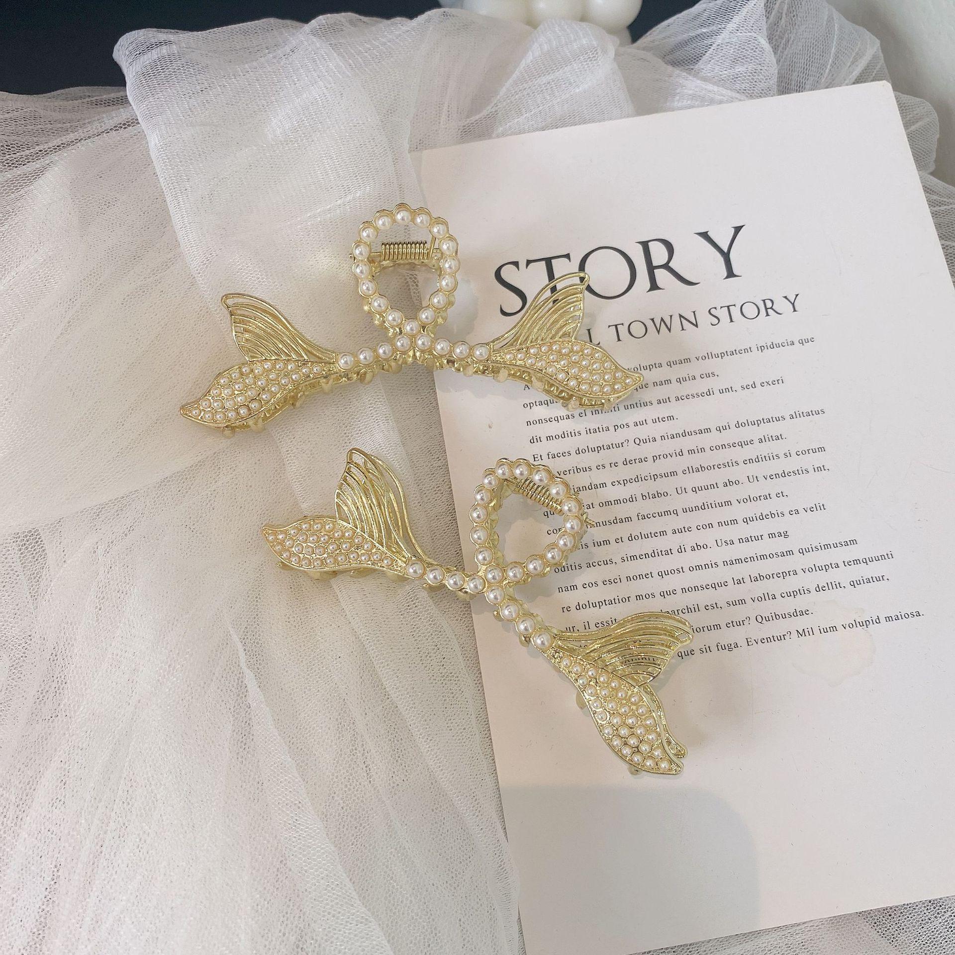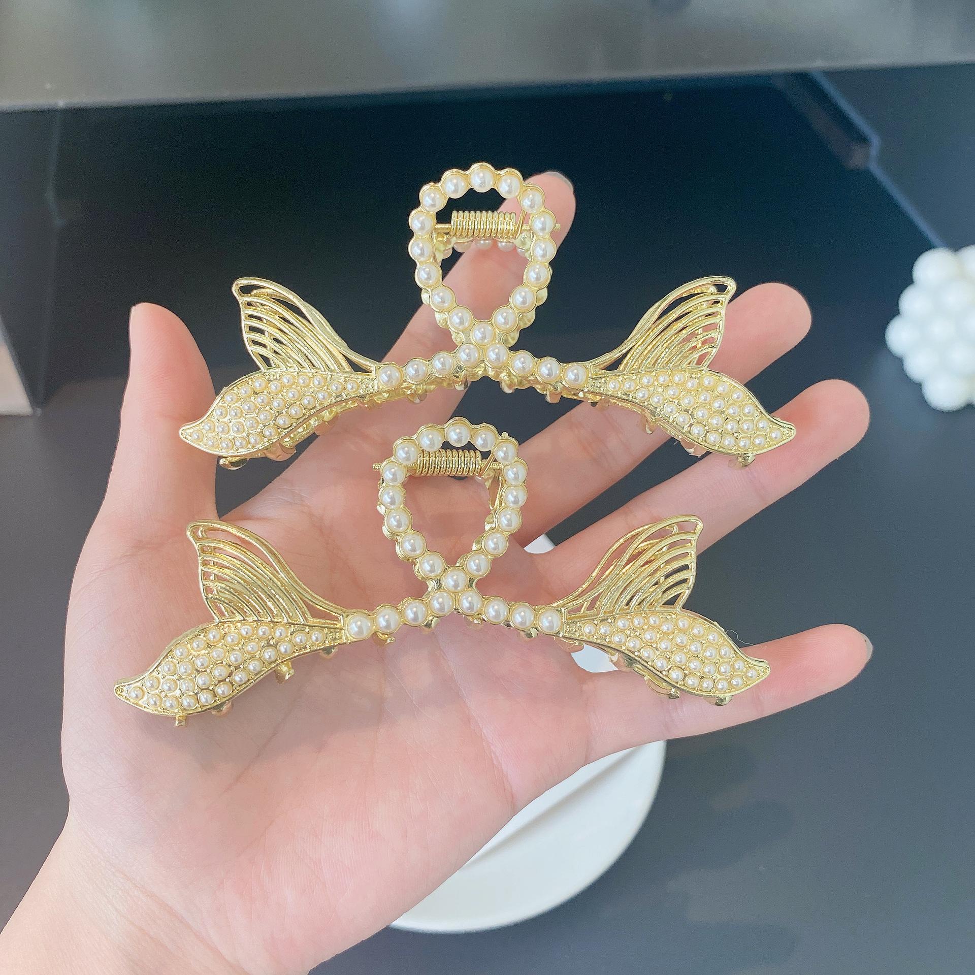 Pinza para el Cabello Doble Cola de Pez de Perlas para Mujer, Accesorio para el Cabello Tipo Pinza de Tiburón Grande Estilo Coreano, Más Vendido, Fresco y Dulce