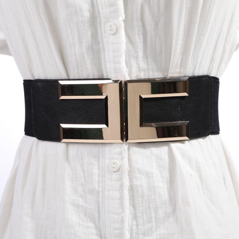 Venta de fábrica, cinturón elástico para mujer, moderno, elástico, cintura ancha, sello, nuevo, informal, a juego, falda, cinturón negro decorativo