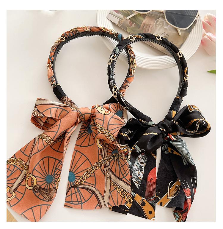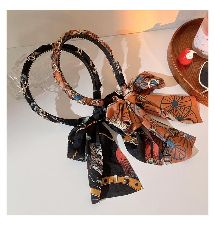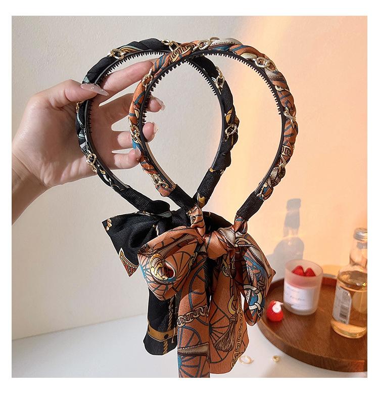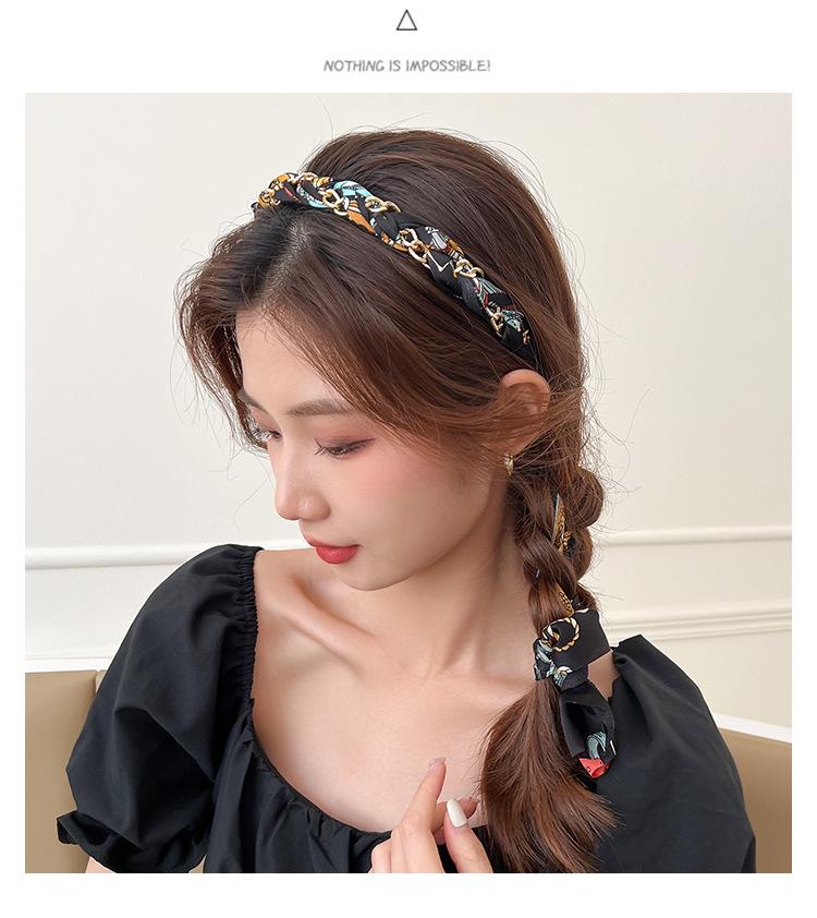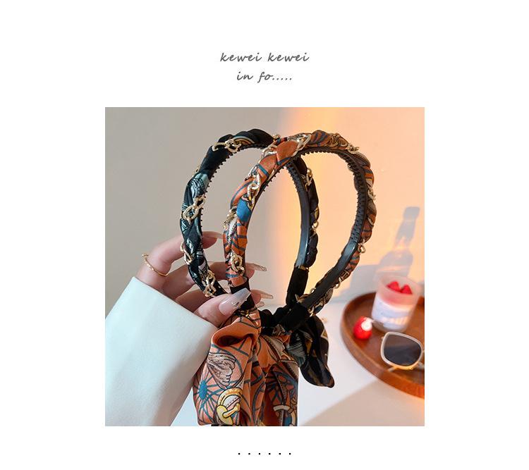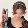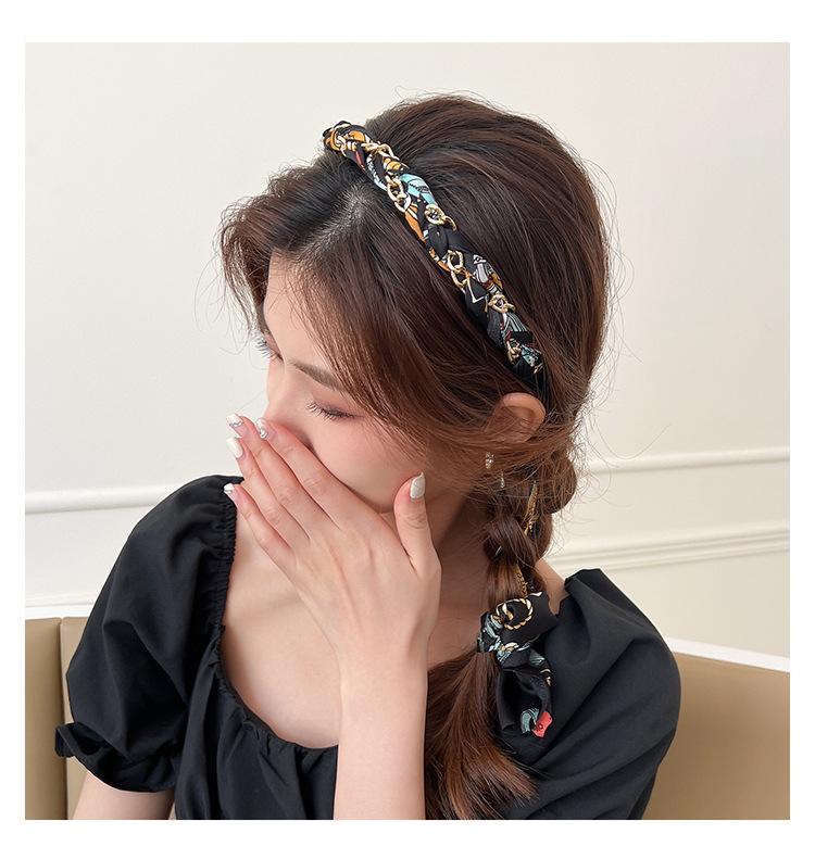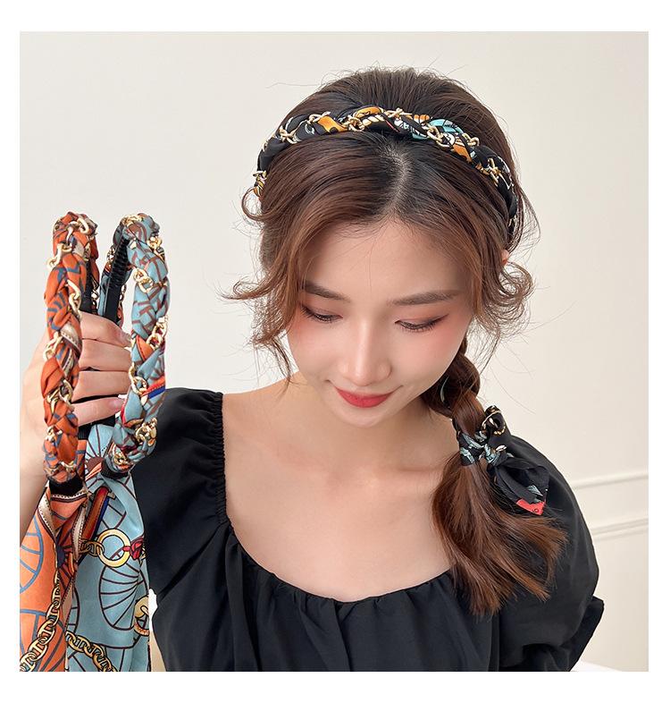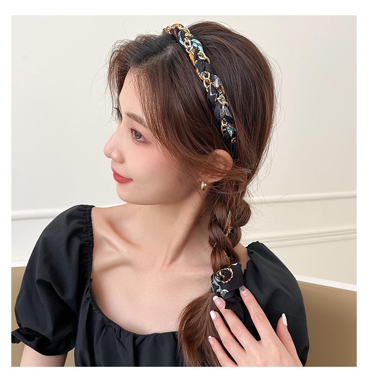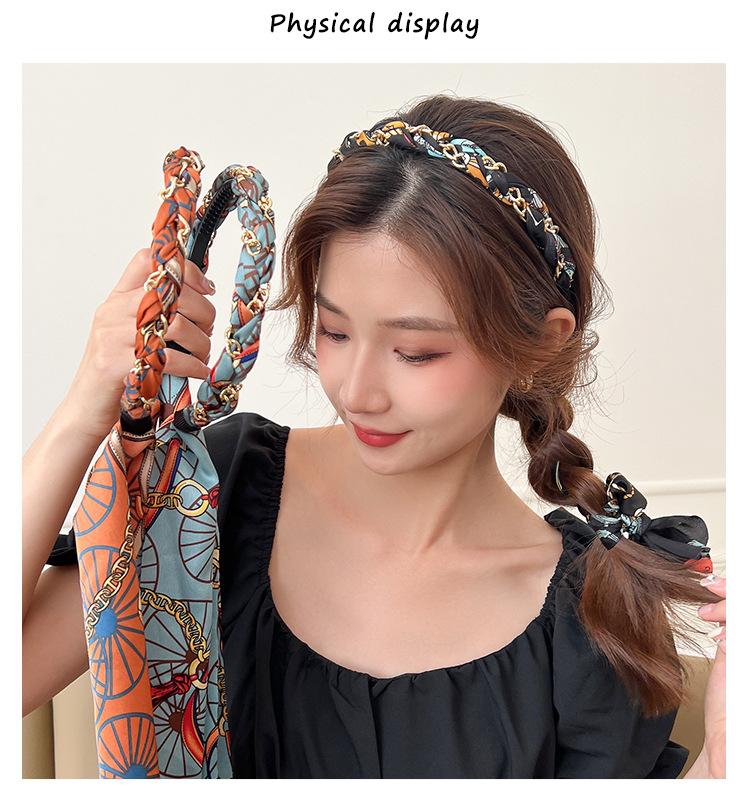 Cadena Vintage Cinta Larga Banda para el Cabello Mujer Lazo de Una Pieza Diadema Verano Pañuelo de Seda Banda para el Cabello Cinta para el Cabello Trenzado Accesorios para el Cabello