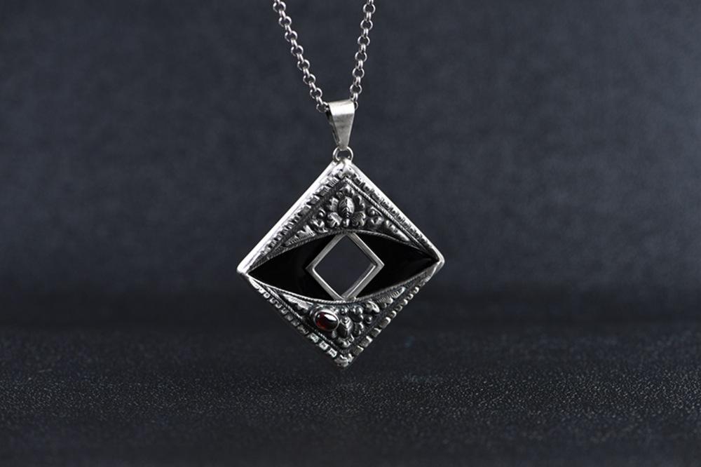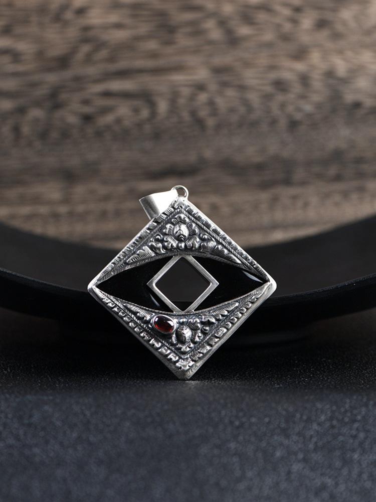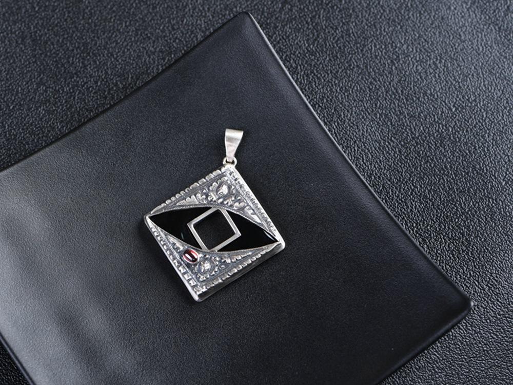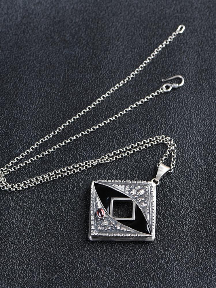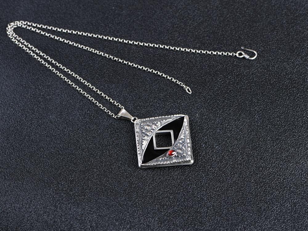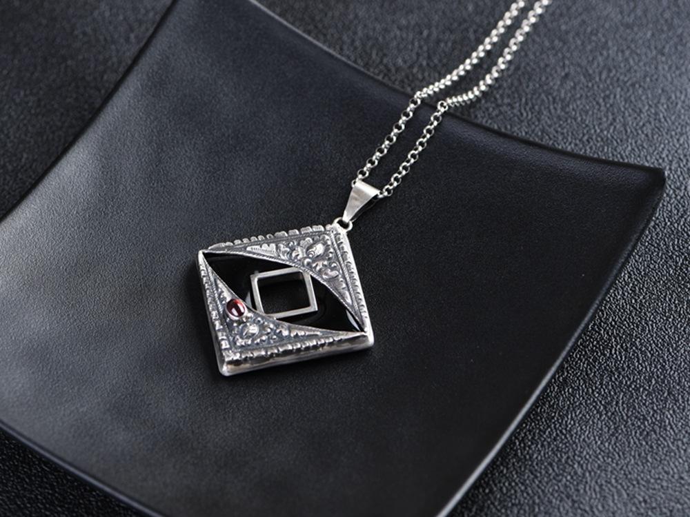 Colgante de plata S925 con diseño de ciervo dorado, estilo retro tailandés, joyería transfronteriza de plata con ónix negro grabado, collar para mujer, venta al por mayor