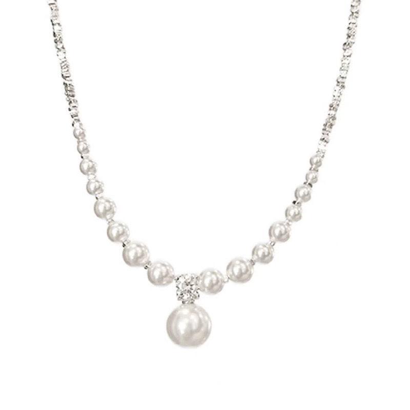 Collar de perlas de plata, diseño pequeño, cadena de clavícula de temperamento simple de alta calidad para mujer, collar exquisito de lujo ligero con pequeños diamantes de azúcar cuadrados