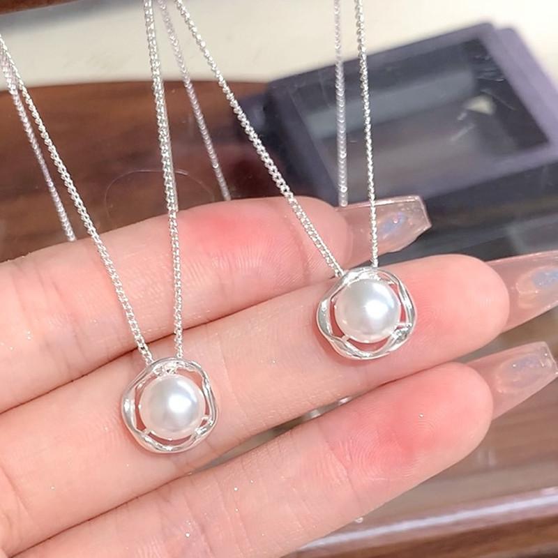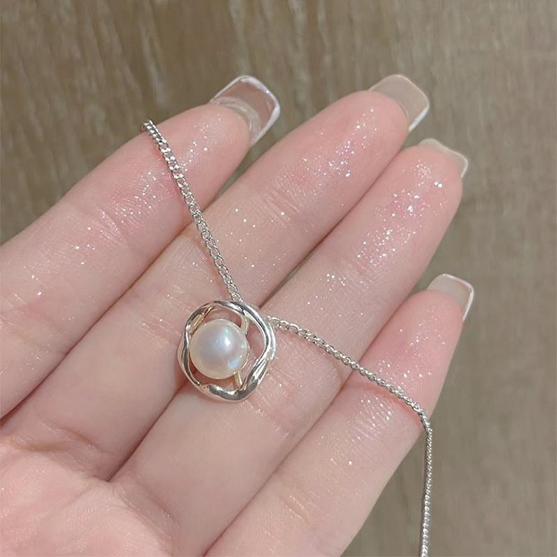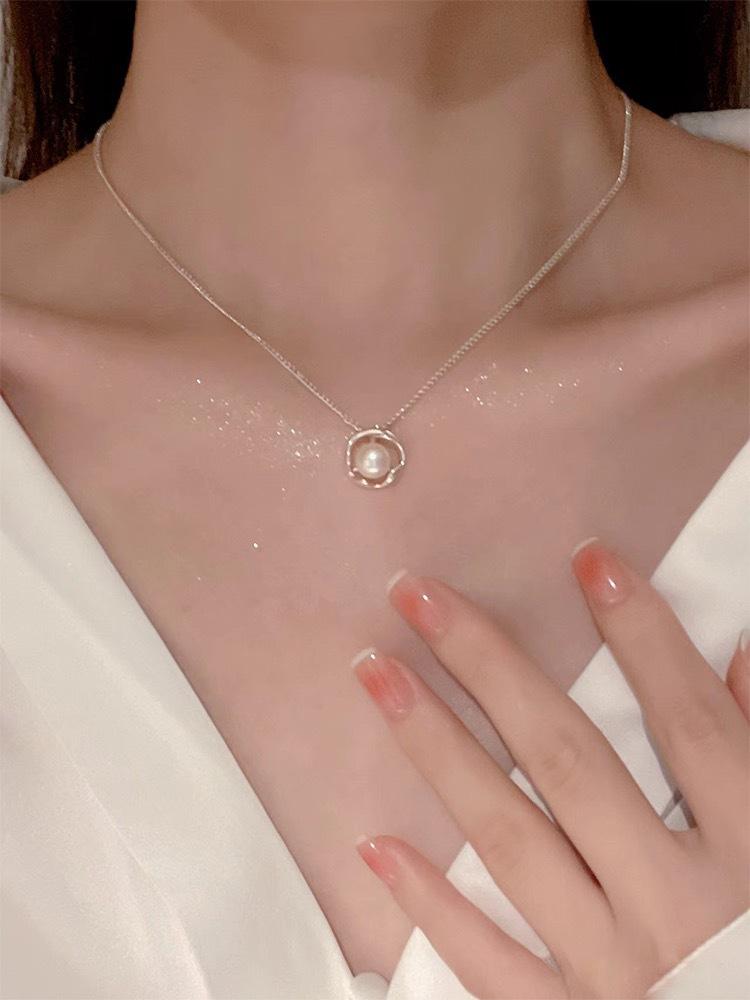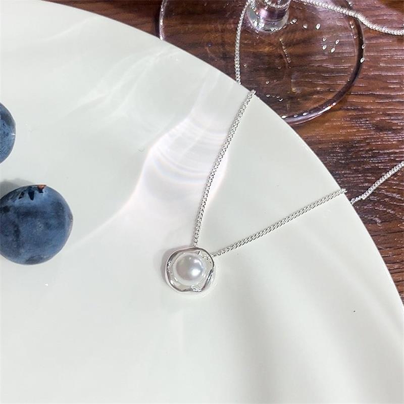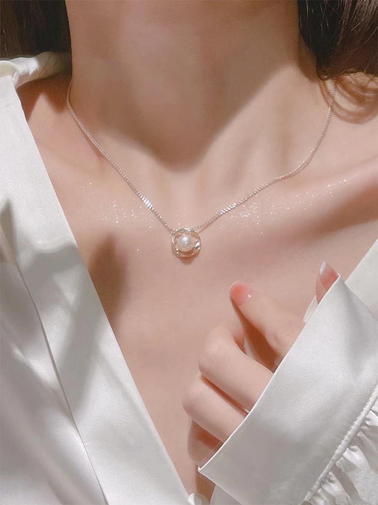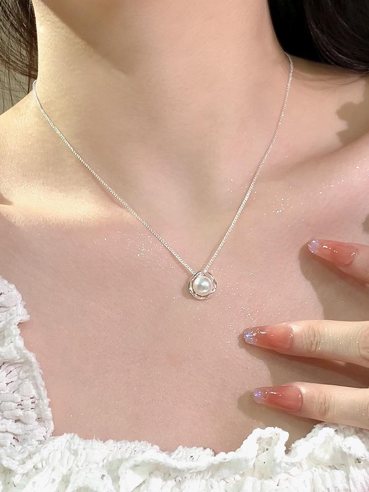 Collar de perlas con flores geométricas para mujer, colgante circular de verano, cadena de clavícula de alta gama de nicho de lujo ligero, estilo coreano simple