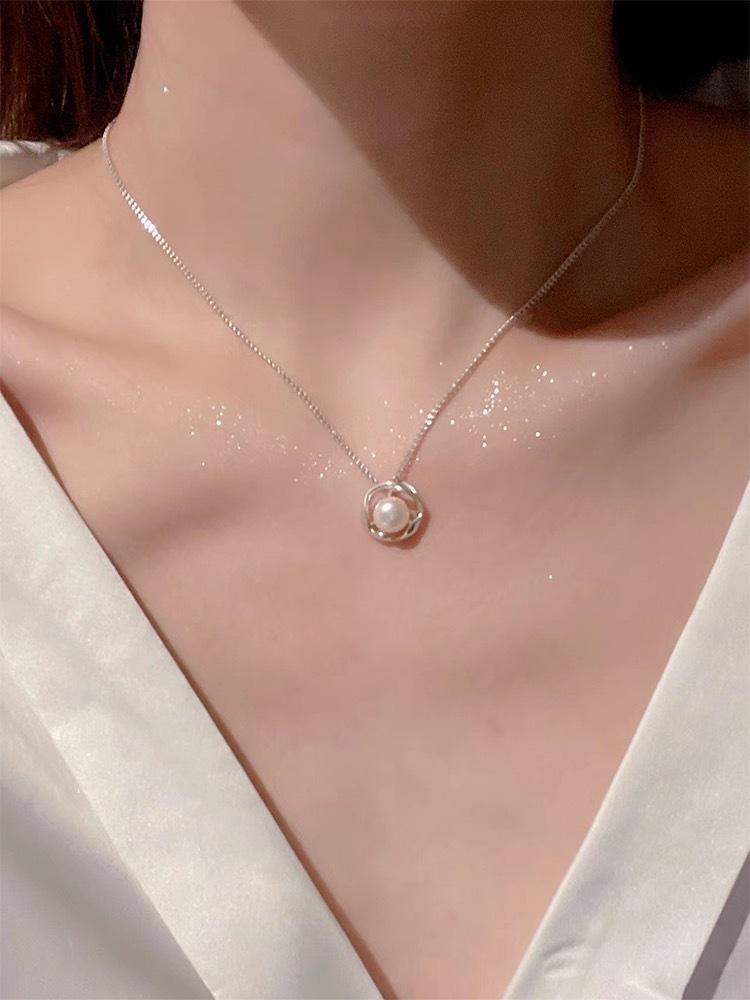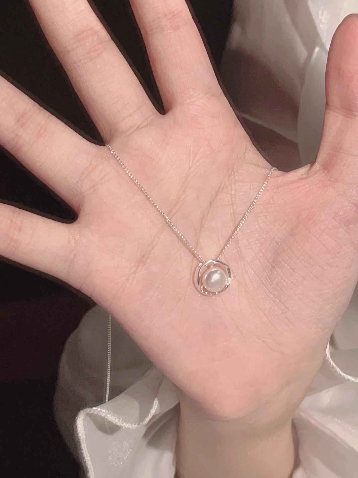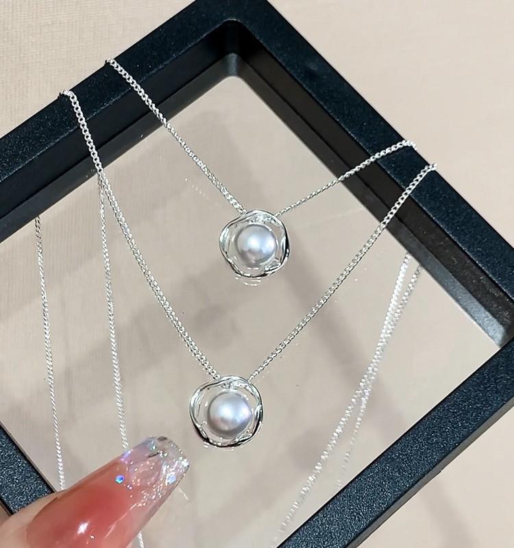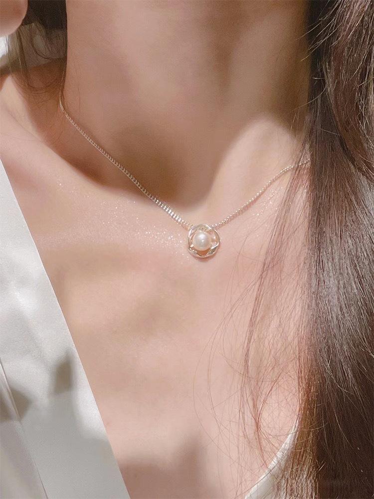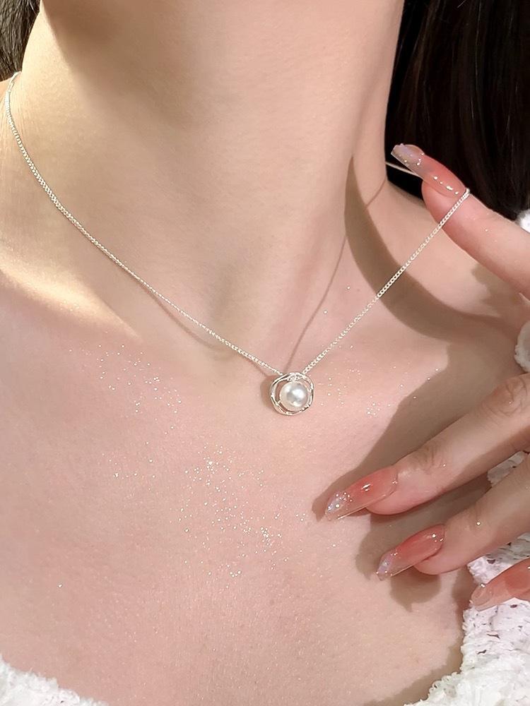 Collar de perlas con flores geométricas para mujer, colgante circular de verano, cadena de clavícula de alta gama de nicho de lujo ligero, estilo coreano simple
