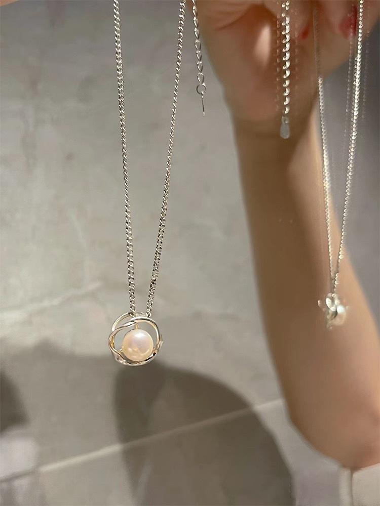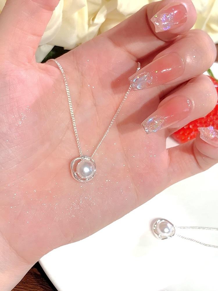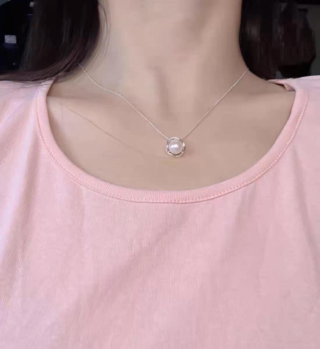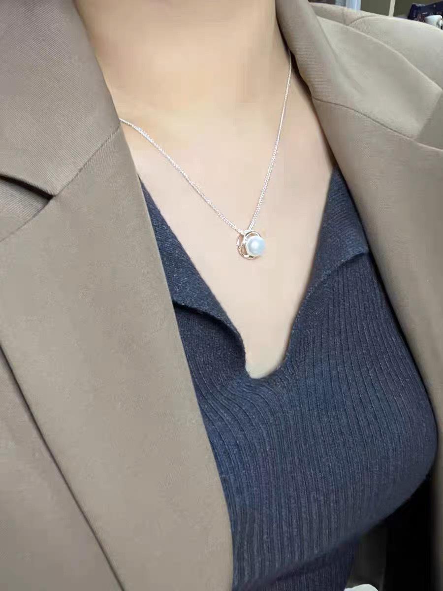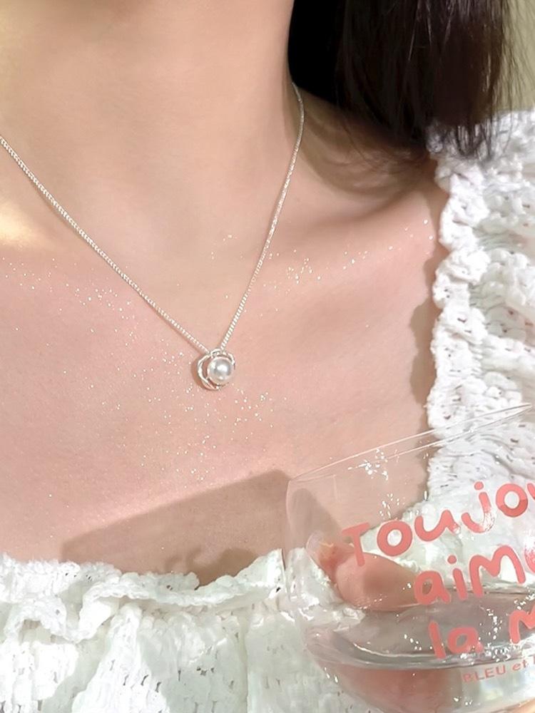 Collar de perlas con flores geométricas para mujer, colgante circular de verano, cadena de clavícula de alta gama de nicho de lujo ligero, estilo coreano simple