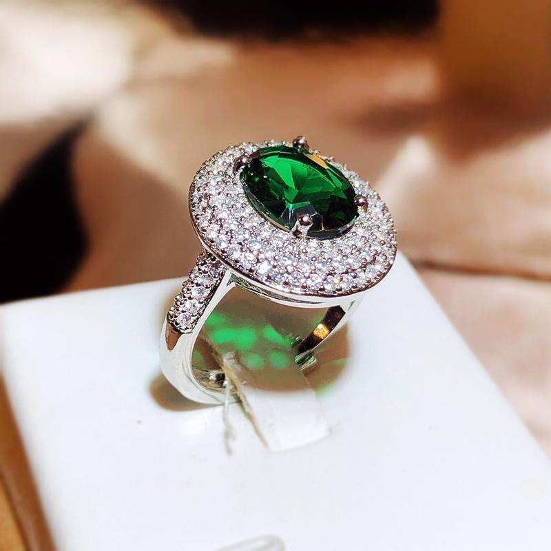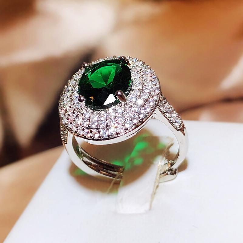 Nuevo grupo de alta gama con incrustaciones de circón elegante esmeralda simulación turmalina verde tesoro colorido anillo abierto femenino anillo abierto