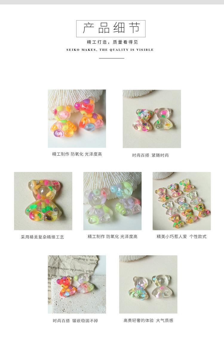 Parche de resina de oso tridimensional, colorido y translúcido, accesorios para pendientes de mano DIY, venta al por mayor