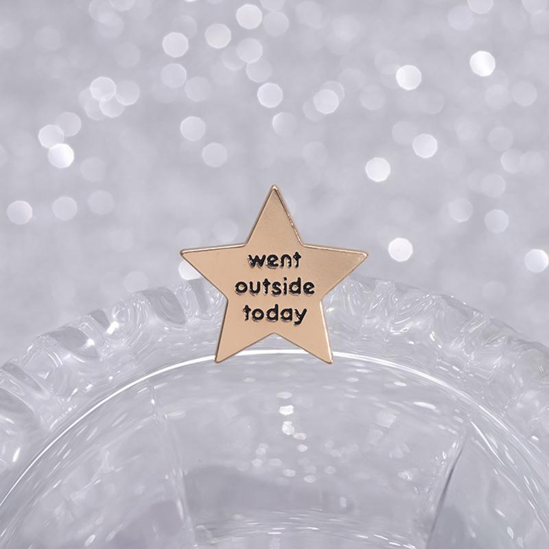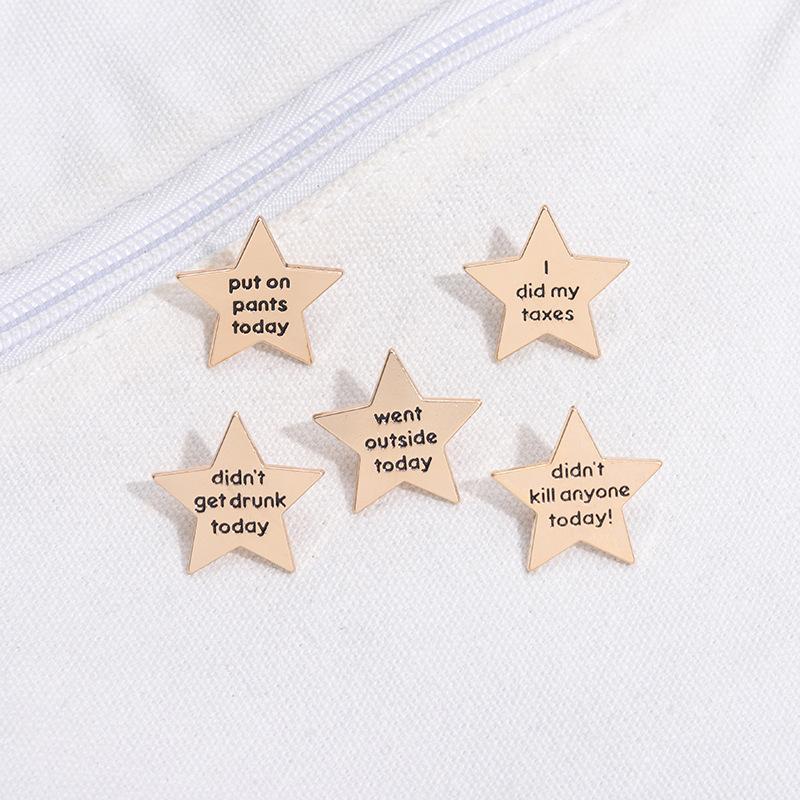 Nueva insignia de metal de estrella de cinco puntas transfronteriza con forma de estrella dorada, serie de letras inglesas, accesorios de aleación, broche