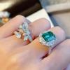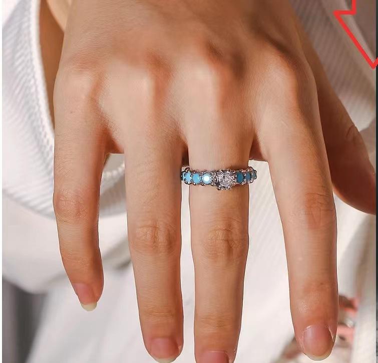 Joyería nueva europea y americana transfronteriza personalidad simple incrustada circón círculo completo turquesa anillo de compromiso de diamantes para mujer