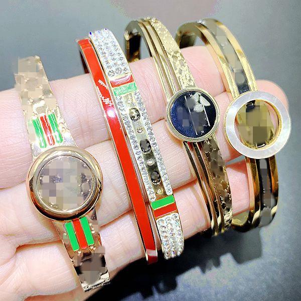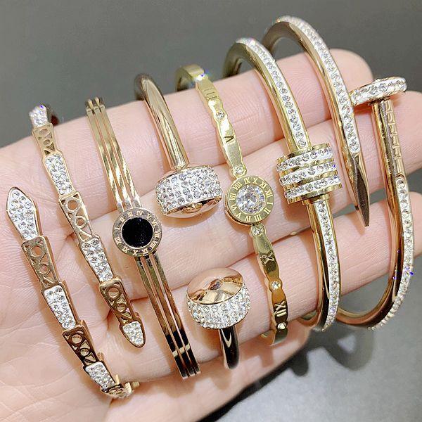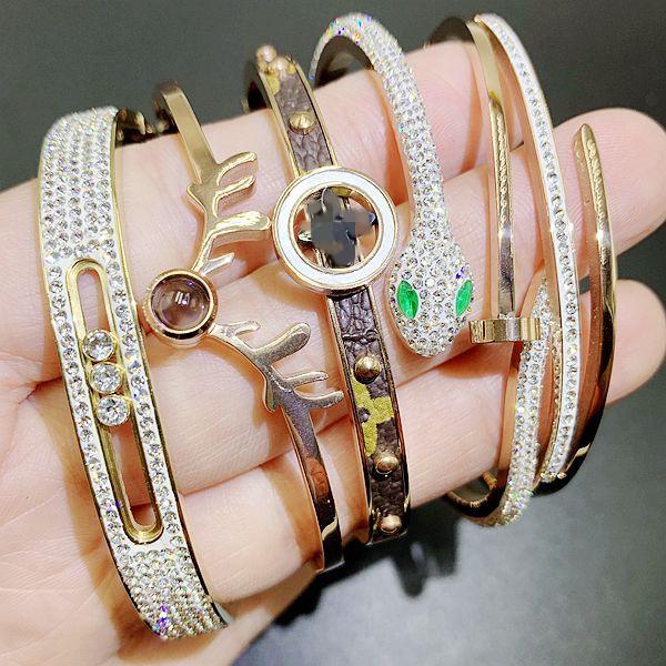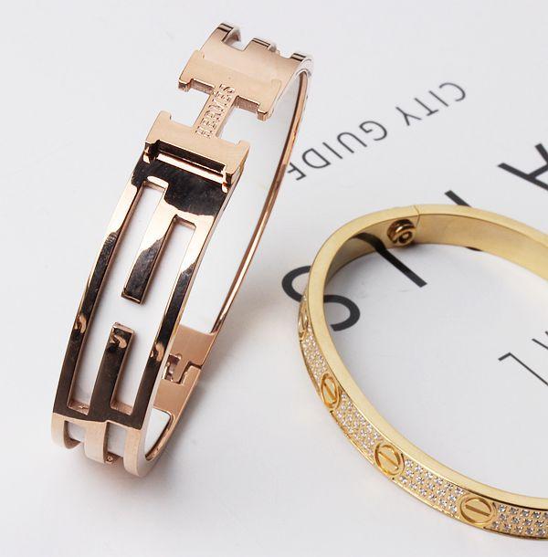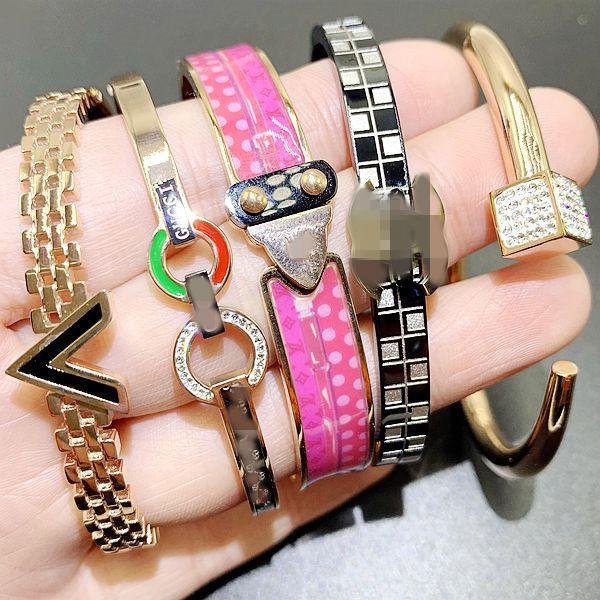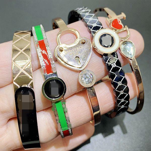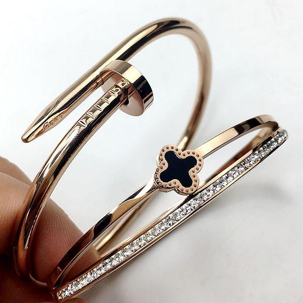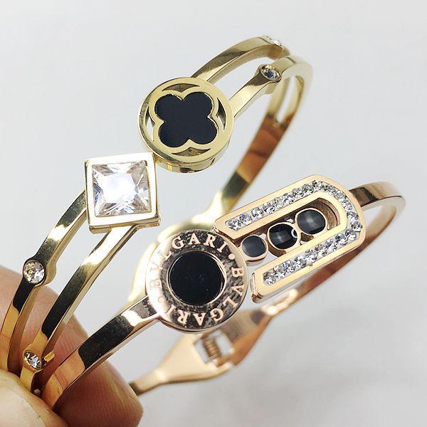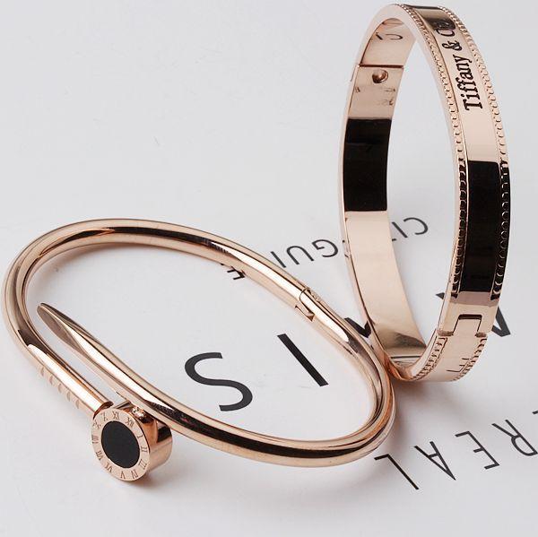 Esta pulsera está hecha de acero inoxidable de titanio dorado al horno, de una gran fábrica, con buena calidad y estilo. Está disponible en chapado de oro rosa, plata y oro. Está bien hecha y tiene estilos de apertura y hebilla.¡Lo real es súper brillante, llamativo y vale el dinero. Hay un lote de pedidos adicionales a bajo precio. Excelente mano de obra y calidad. ¡La foto no puede capturar el efecto! Hay cerca de 100 estilos.