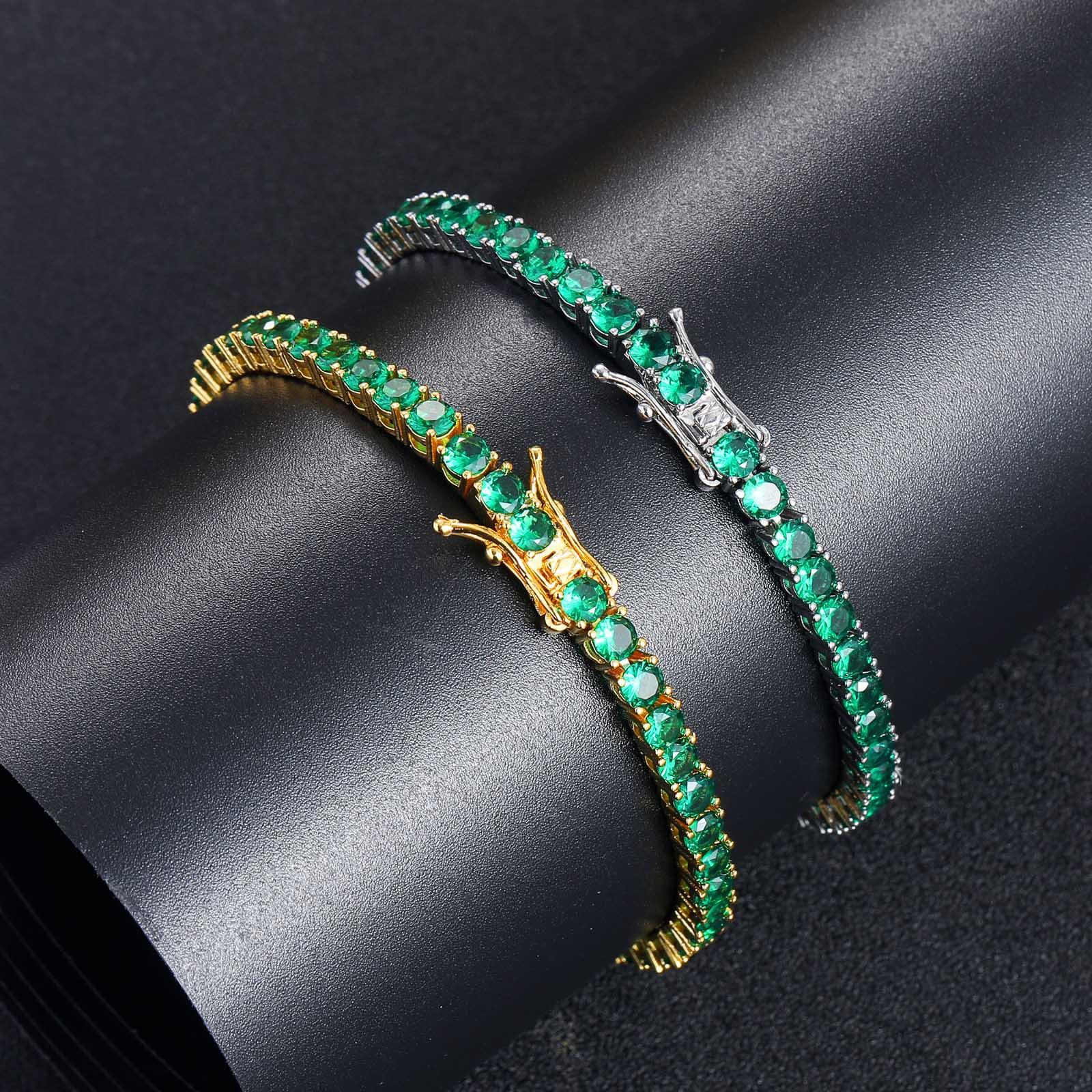 Nombre del Artículo/Producto: Cadena de Tenis Hip Hop de Zircón Verde de 4 mm
