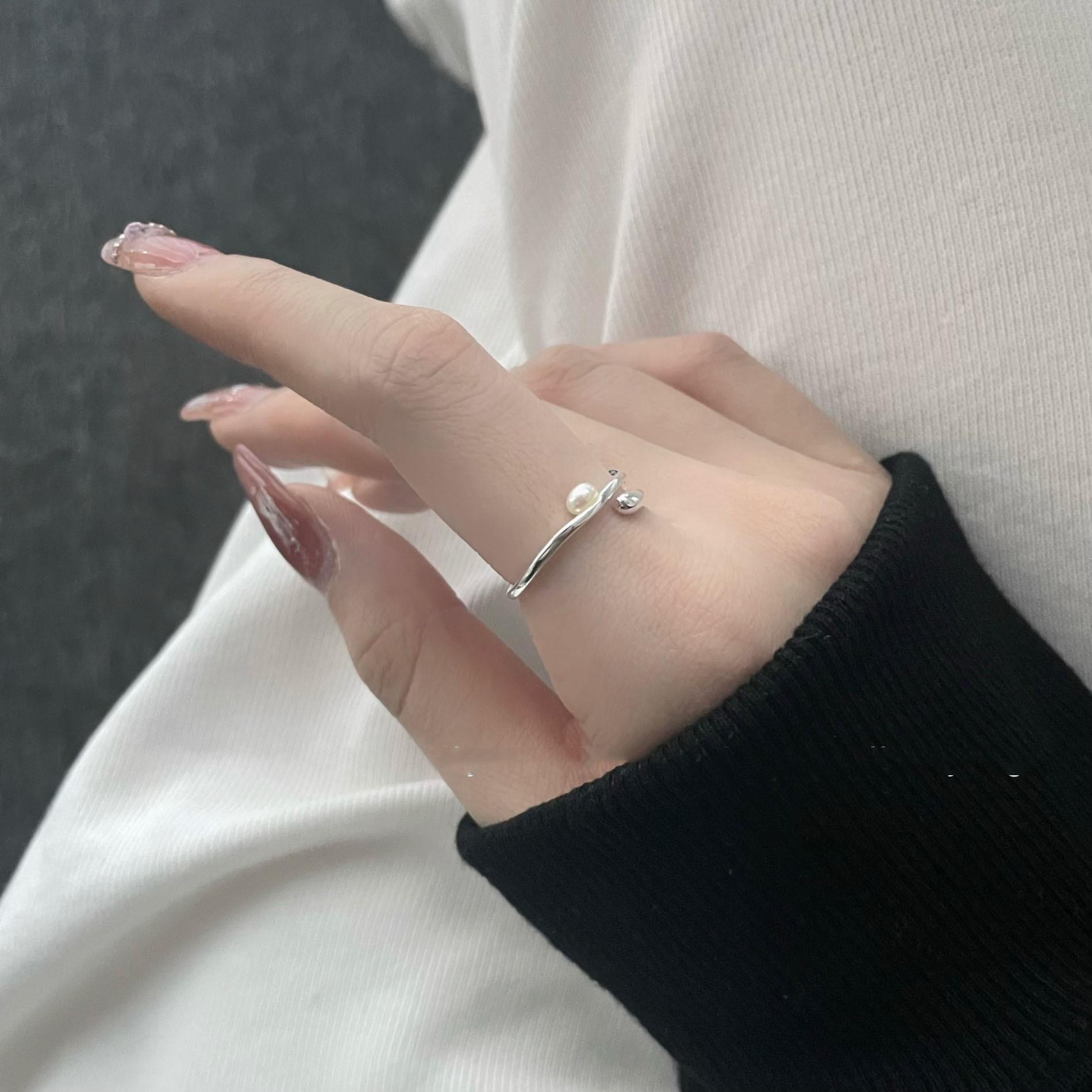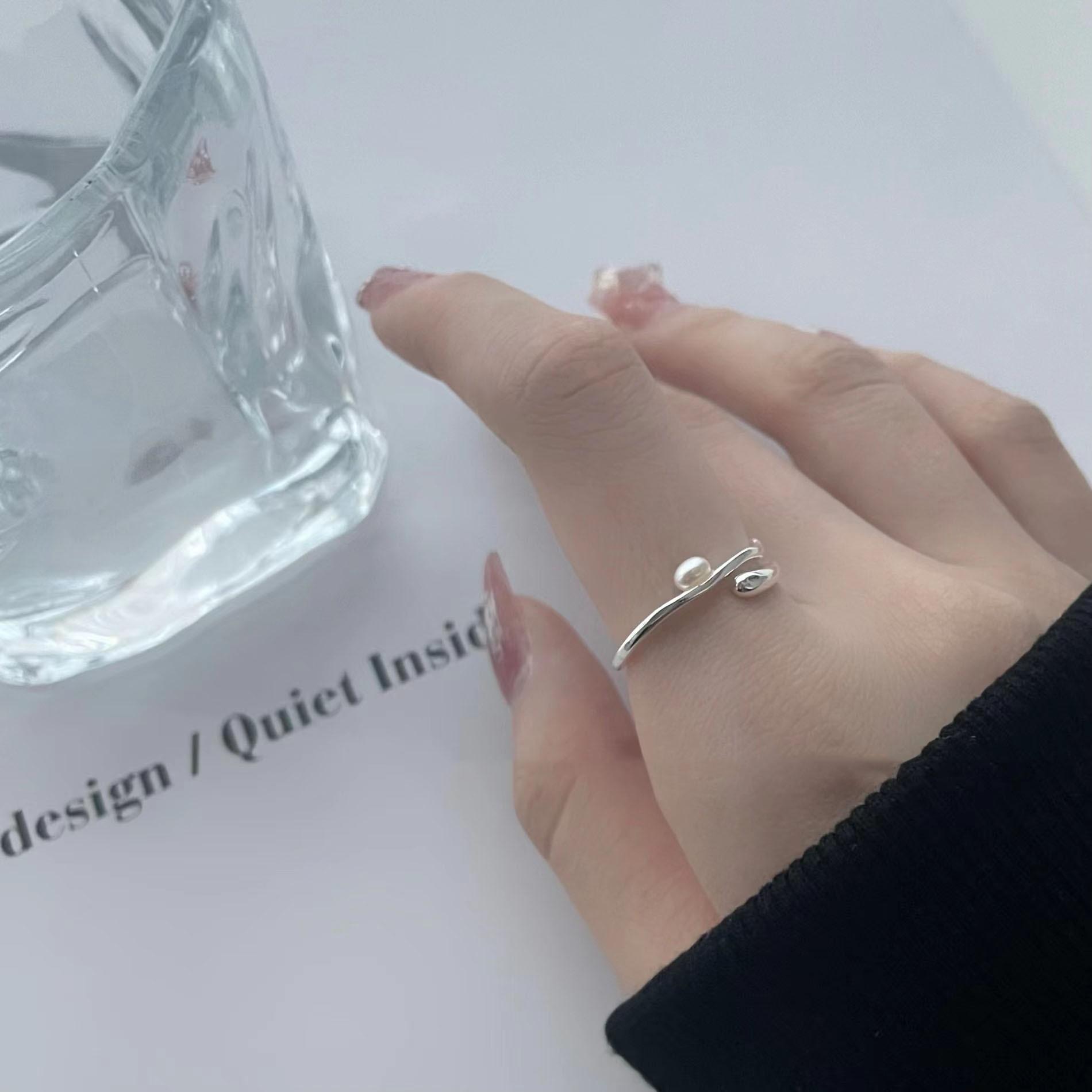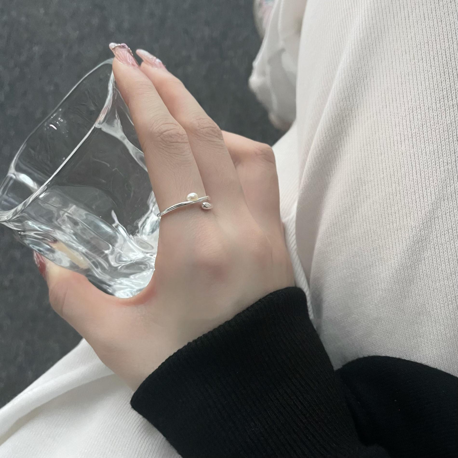 Anillo de circón con cuentas de personalidad simple, estilo femenino, nicho ligero, de lujo, combina con todo, anillo de dedo índice abierto de alta gama |