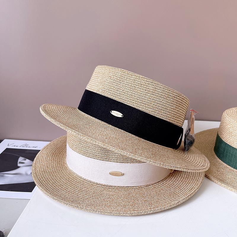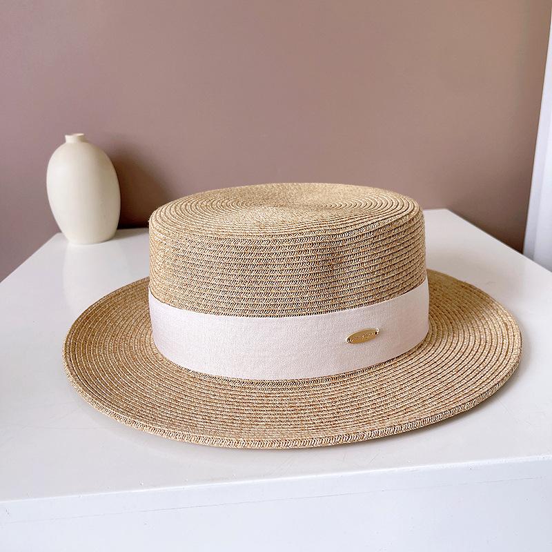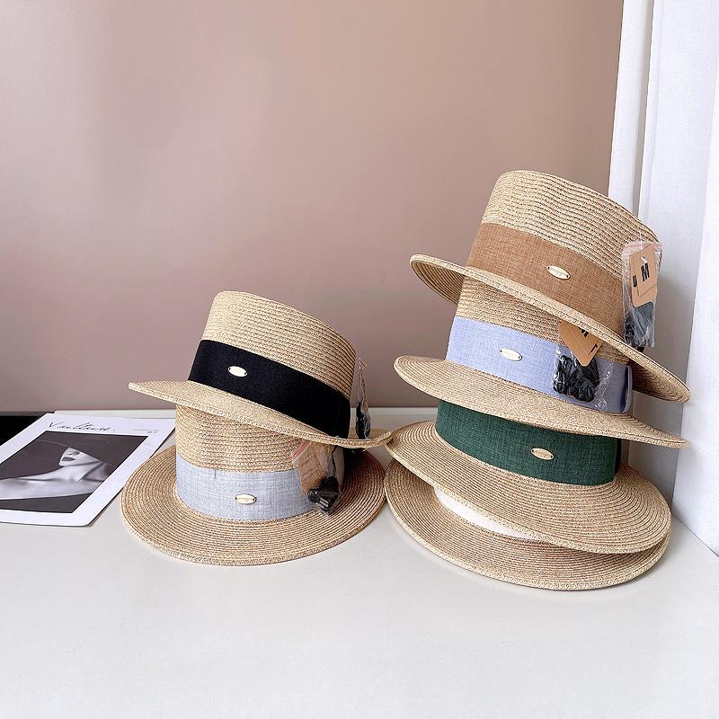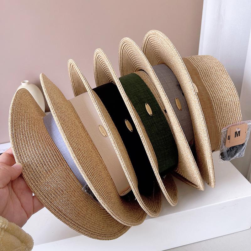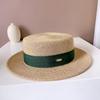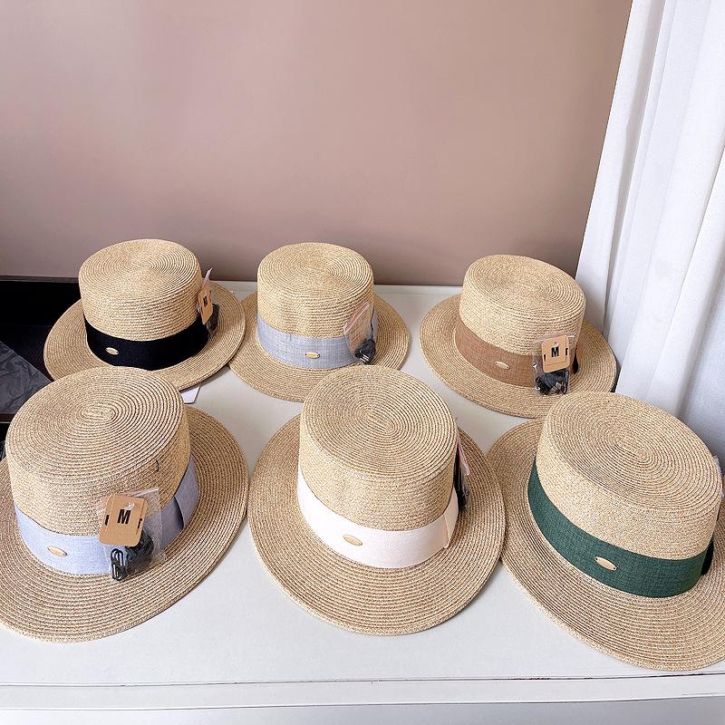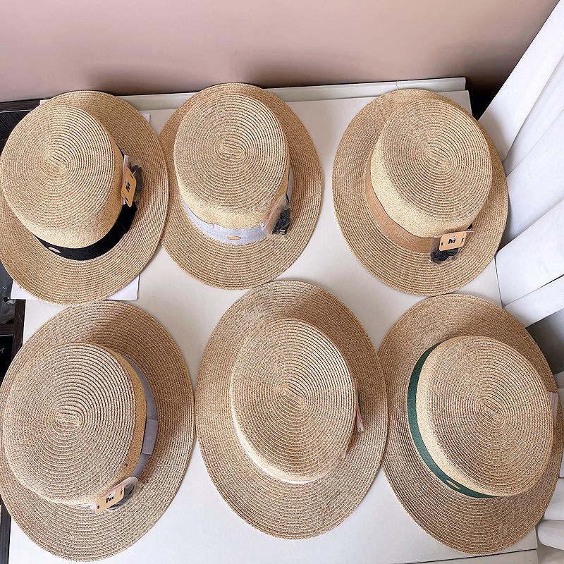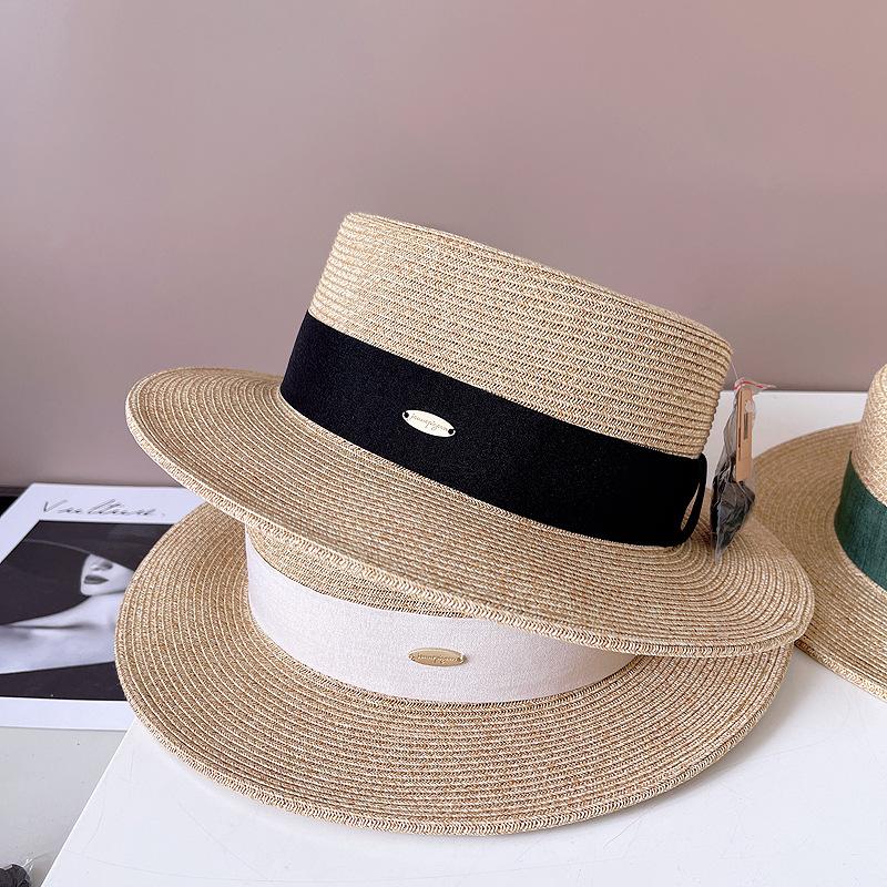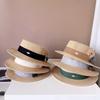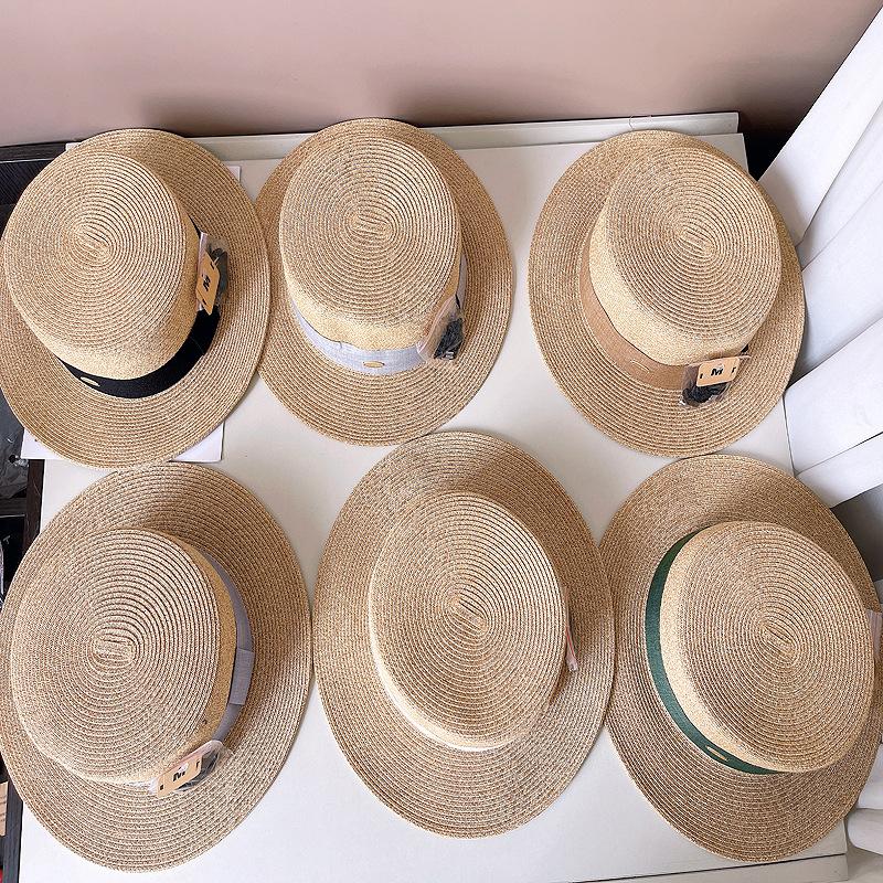 2024 Sombrero de Copa Elegante de Paja de Estilo Francés para Mujer, Sombrero de Paja de Moda de Verano para Protección Solar, Sombrero de Playa para Vacaciones Marítimas