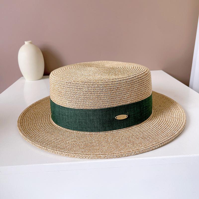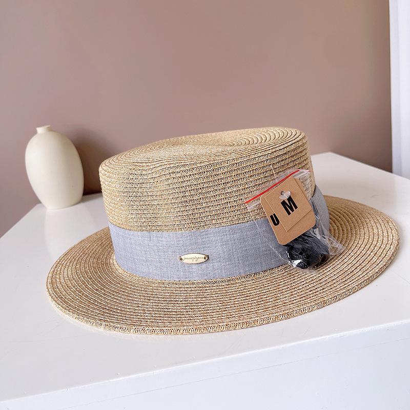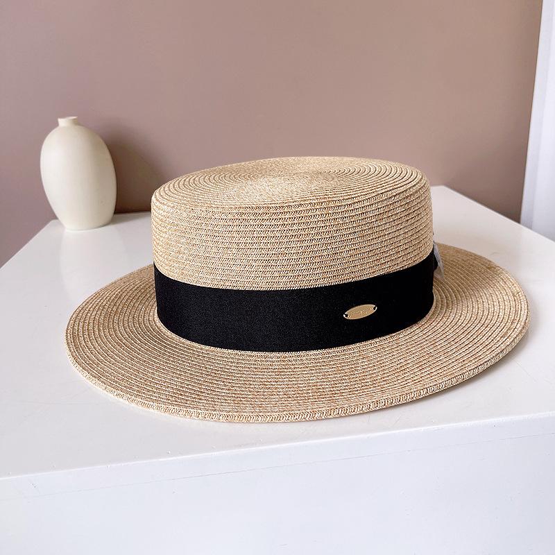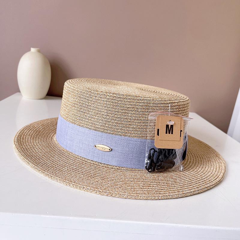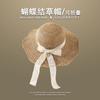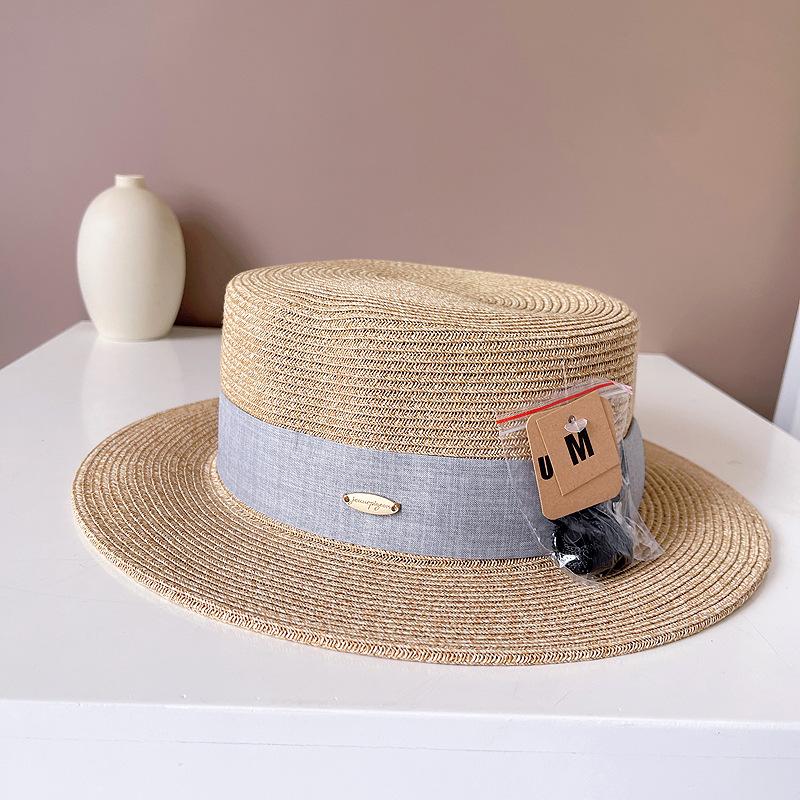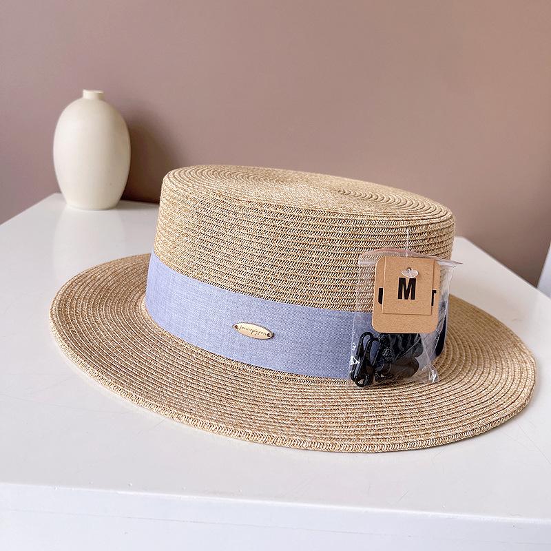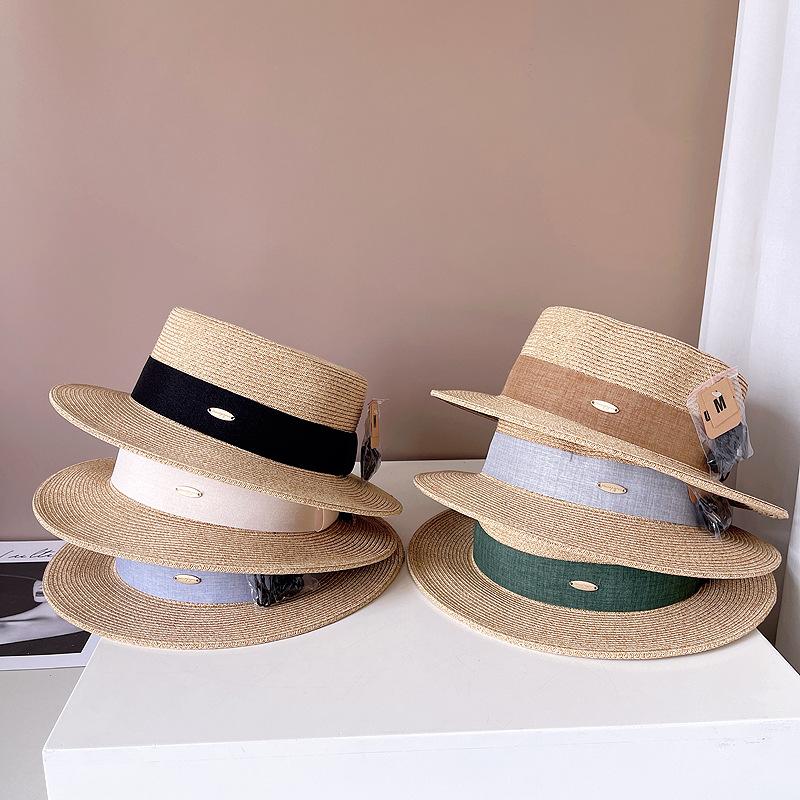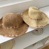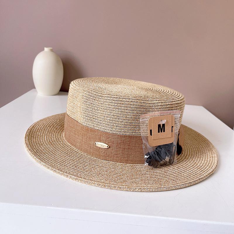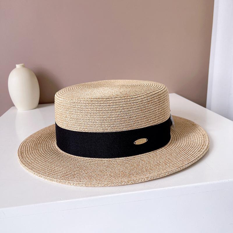 2024 Sombrero de Copa Elegante de Paja de Estilo Francés para Mujer, Sombrero de Paja de Moda de Verano para Protección Solar, Sombrero de Playa para Vacaciones Marítimas