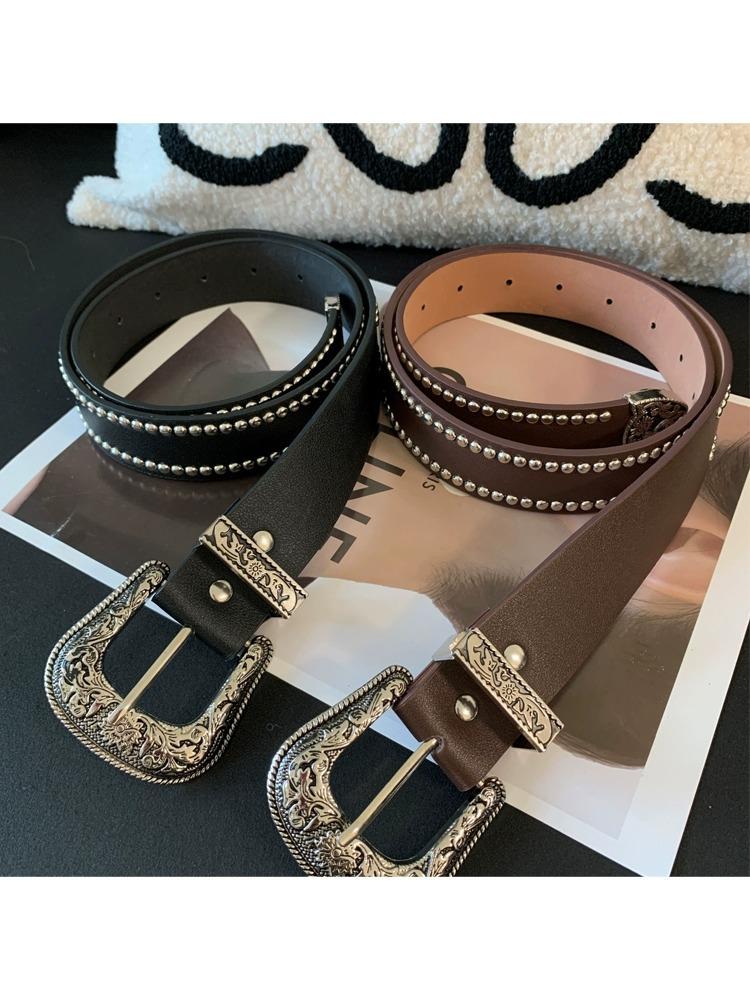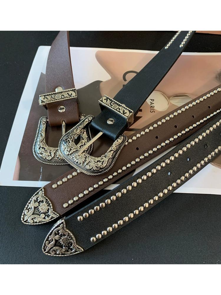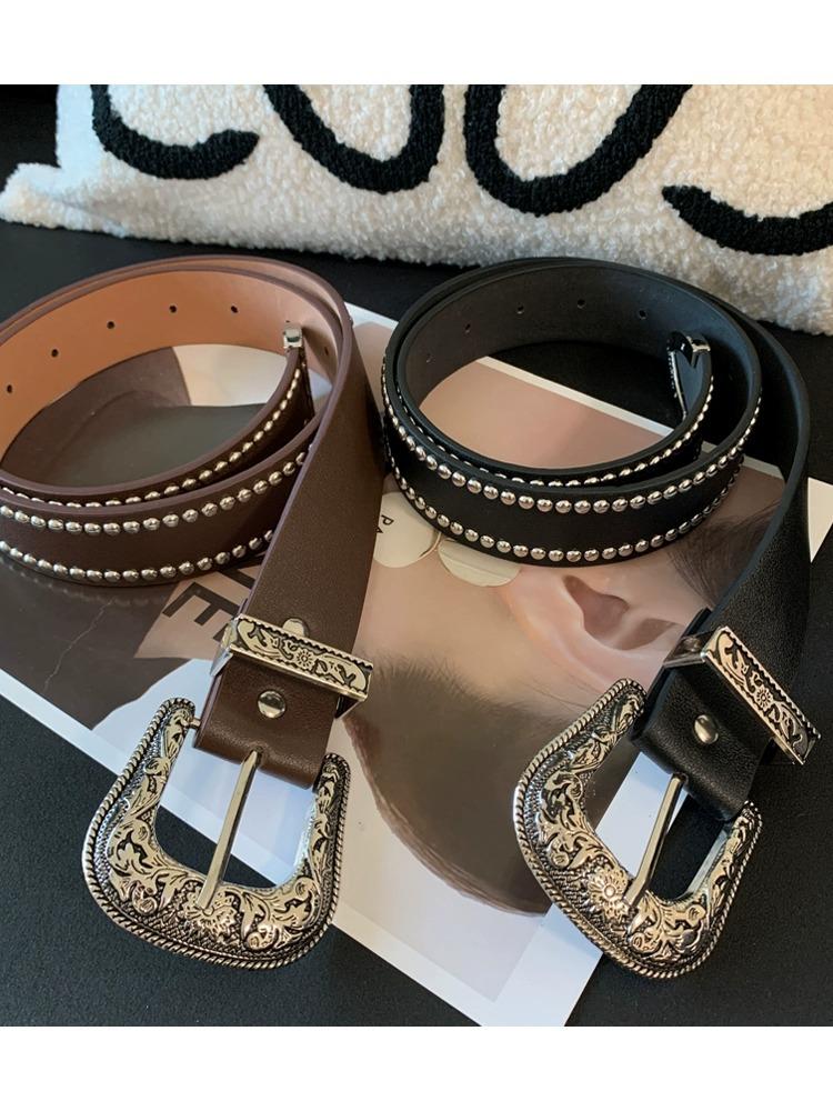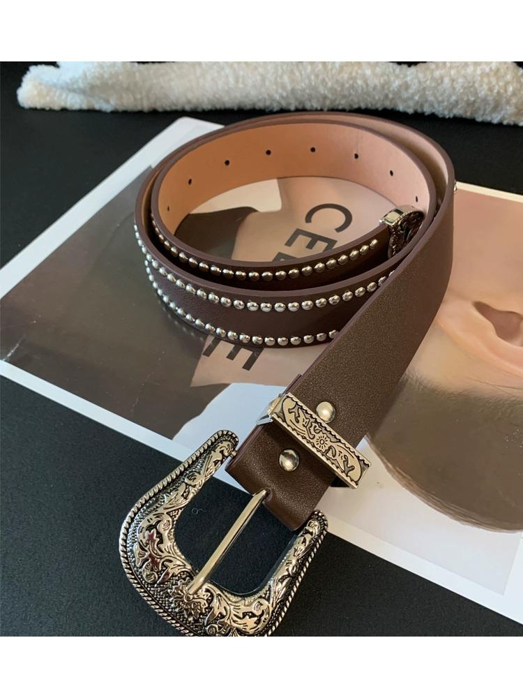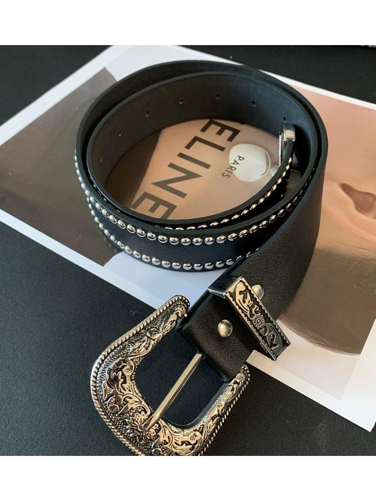 Nuevo Cinturón de Cuero con Remaches Estilo Punk Spice Girl Personalidad Cinturón Elegante Combinable para Mujer Cinturón Universal para Jeans Moda