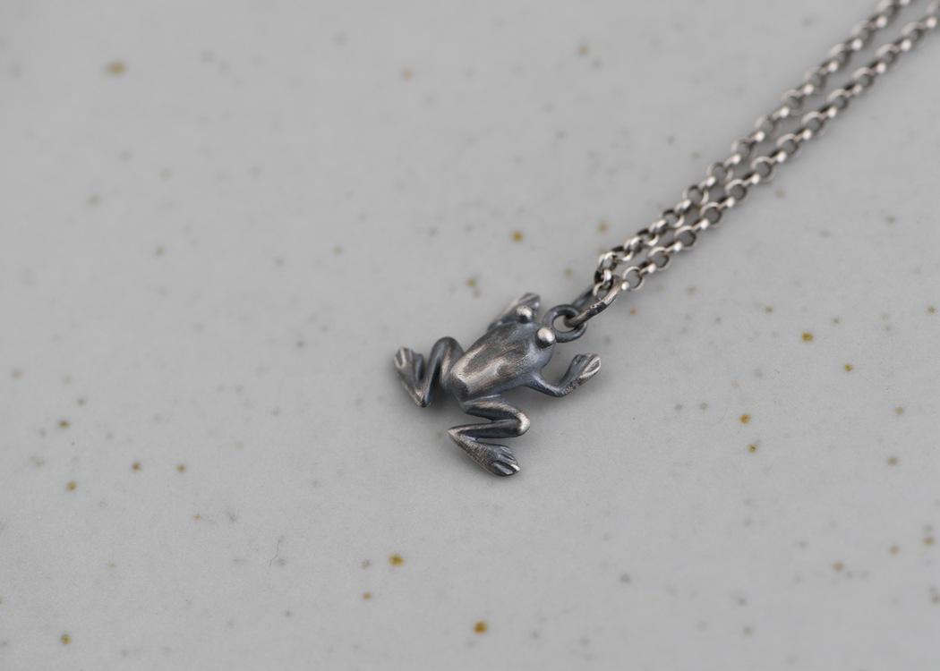 Collar con colgante de plata de ley S925 con diseño vintage de ciervo dorado, diseño creativo tridimensional y compacto, con cuerda ancha y diseño de rana, para mujer