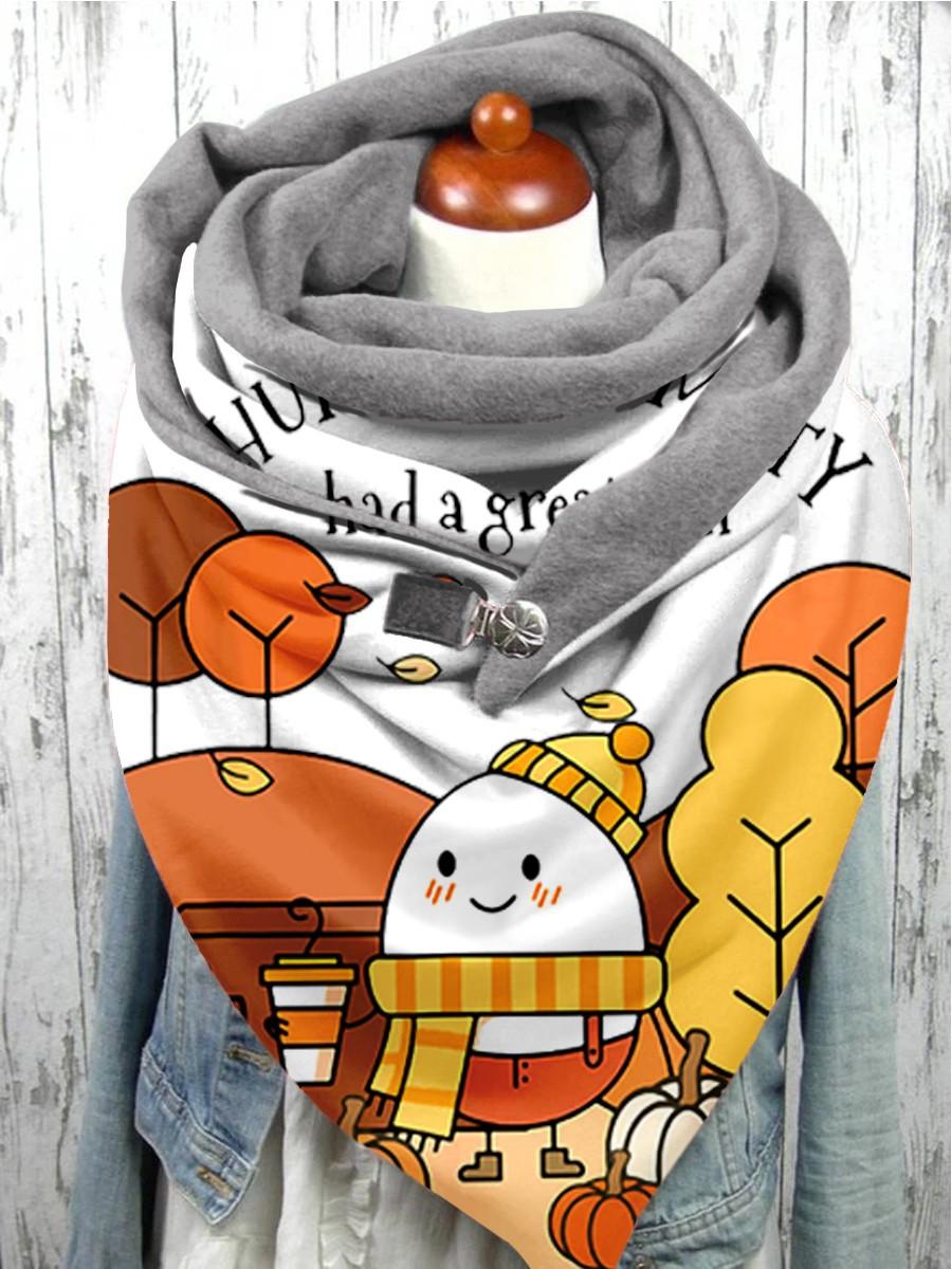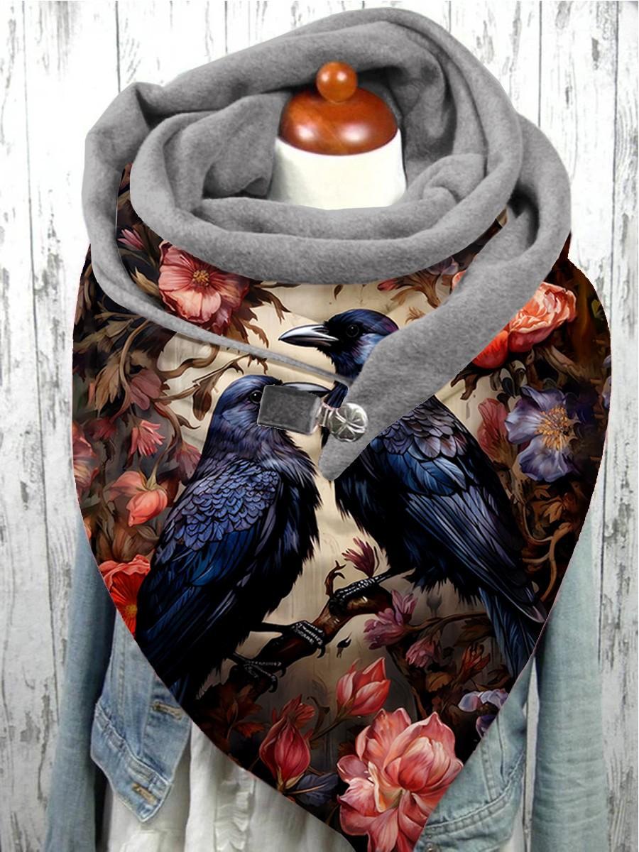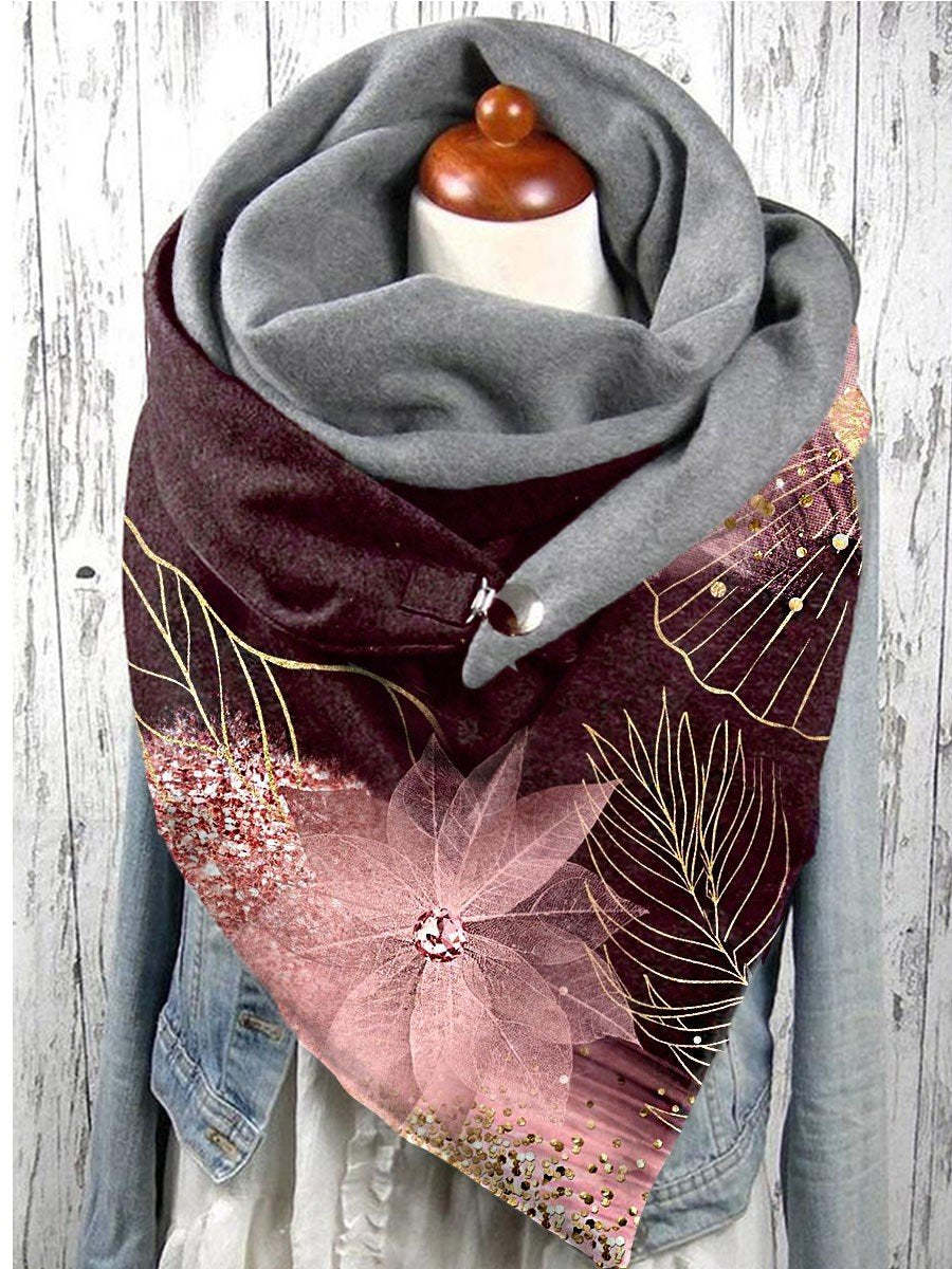 Bufanda triangular de dibujos animados de AliExpress, nueva bufanda a cuadros con botones de costura cálida, estampado de flores 3D, estilo europeo y americano, para otoño e invierno.
